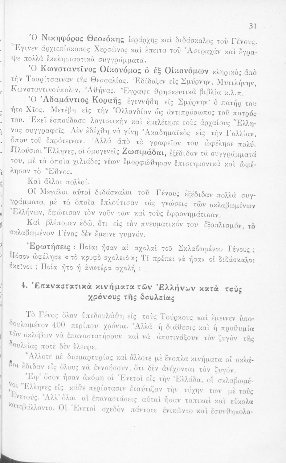 Σχολικό εγχειρίδιο για την ΣΤ΄ Τάξη Δημοτικού για το μάθημα της Ιστορίας. Περιλαμβάνει τα ιστορικά γεγονότα από την προεπαναστατική περίοδο και μετά αναλύει διεξοδικά τα χρόνια της Επανάστασης του 1821. Κλείνει με την συνοπτική αναφορά στη διοίκηση του ελληνικού κράτους κατά τα χρόνια του Όθωνα, του Γεωργίου Α΄, Κωνσταντίνου και Γεωργίου Β΄ . Αναφέρεται ακόμα πιο συνοπτικά στο Β΄ Παγκόσμιο Πόλεμο, την Κατοχή μέχρι και την αποχώρηση των Γερμανών.