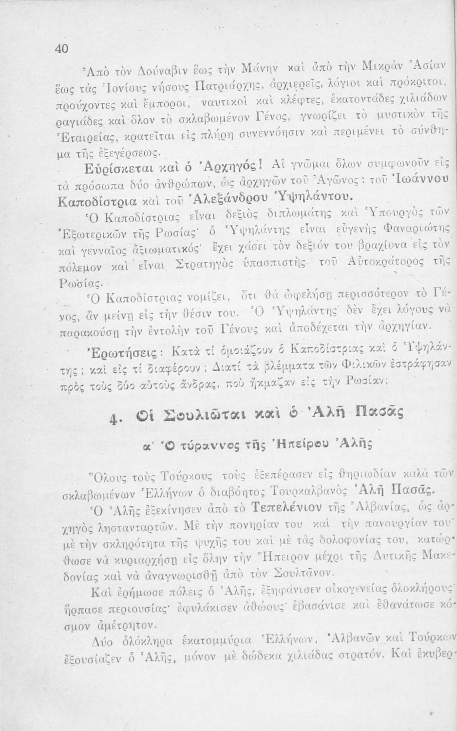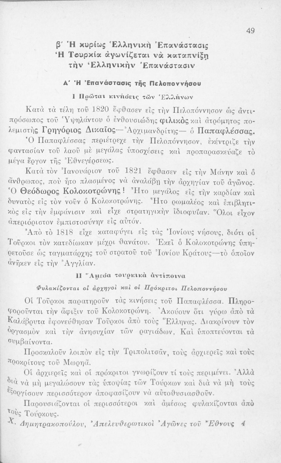 Βαθμίδα εκπαίδευσης: Πρωτοβάθμια Τάξη: ΣΤ' Δημοτικού Μάθημα: Ιστορία Γλώσσα: Απλή καθαρεύουσα Παρουσίαση περιεχομένου: Σχολικό εγχειρίδιο για την ΣΤ΄ Τάξη Δημοτικού για το μάθημα της Ιστορίας. Περιλαμβάνει τα ιστορικά γεγονότα από την προεπαναστατική περίοδο και μετά αναλύει διεξοδικά τα χρόνια της Επανάστασης του 1821. Κλείνει με την συνοπτική αναφορά στη διοίκηση του ελληνικού κράτους κατά τα χρόνια του Όθωνα, του Γεωργίου Α΄, Κωνσταντίνου και Γεωργίου Β΄ . Αναφέρεται ακόμα πιο συνοπτικά στο Β΄ Παγκόσμιο Πόλεμο, την Κατοχή μέχρι και την αποχώρηση των Γερμανών. |