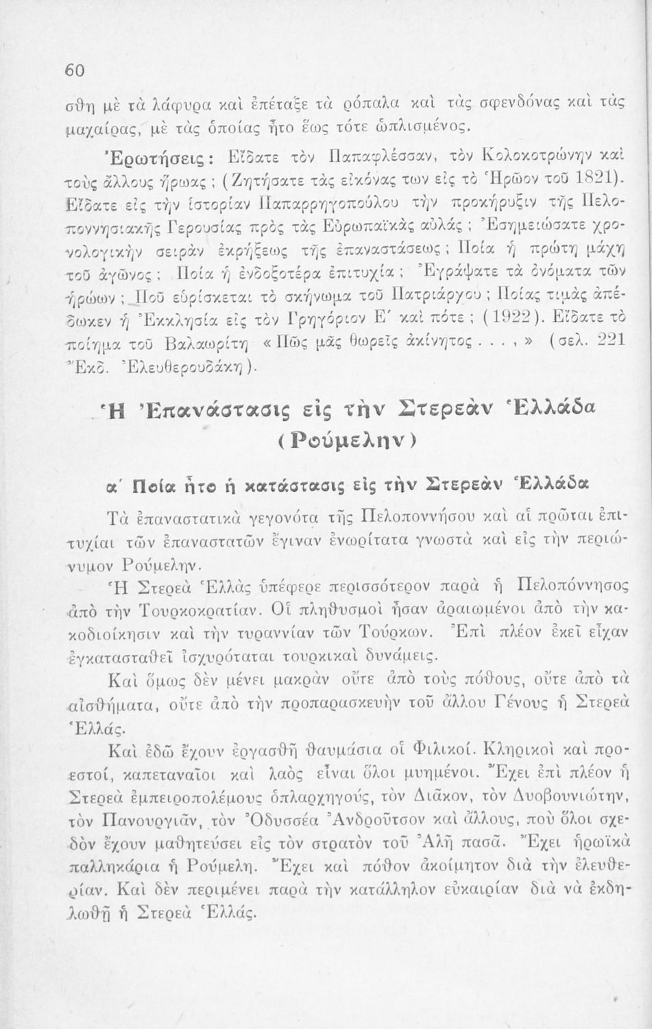 Σχολικό εγχειρίδιο για την ΣΤ΄ Τάξη Δημοτικού για το μάθημα της Ιστορίας. Περιλαμβάνει τα ιστορικά γεγονότα από την προεπαναστατική περίοδο και μετά αναλύει διεξοδικά τα χρόνια της Επανάστασης του 1821. Κλείνει με την συνοπτική αναφορά στη διοίκηση του ελληνικού κράτους κατά τα χρόνια του Όθωνα, του Γεωργίου Α΄, Κωνσταντίνου και Γεωργίου Β΄ . Αναφέρεται ακόμα πιο συνοπτικά στο Β΄ Παγκόσμιο Πόλεμο, την Κατοχή μέχρι και την αποχώρηση των Γερμανών.