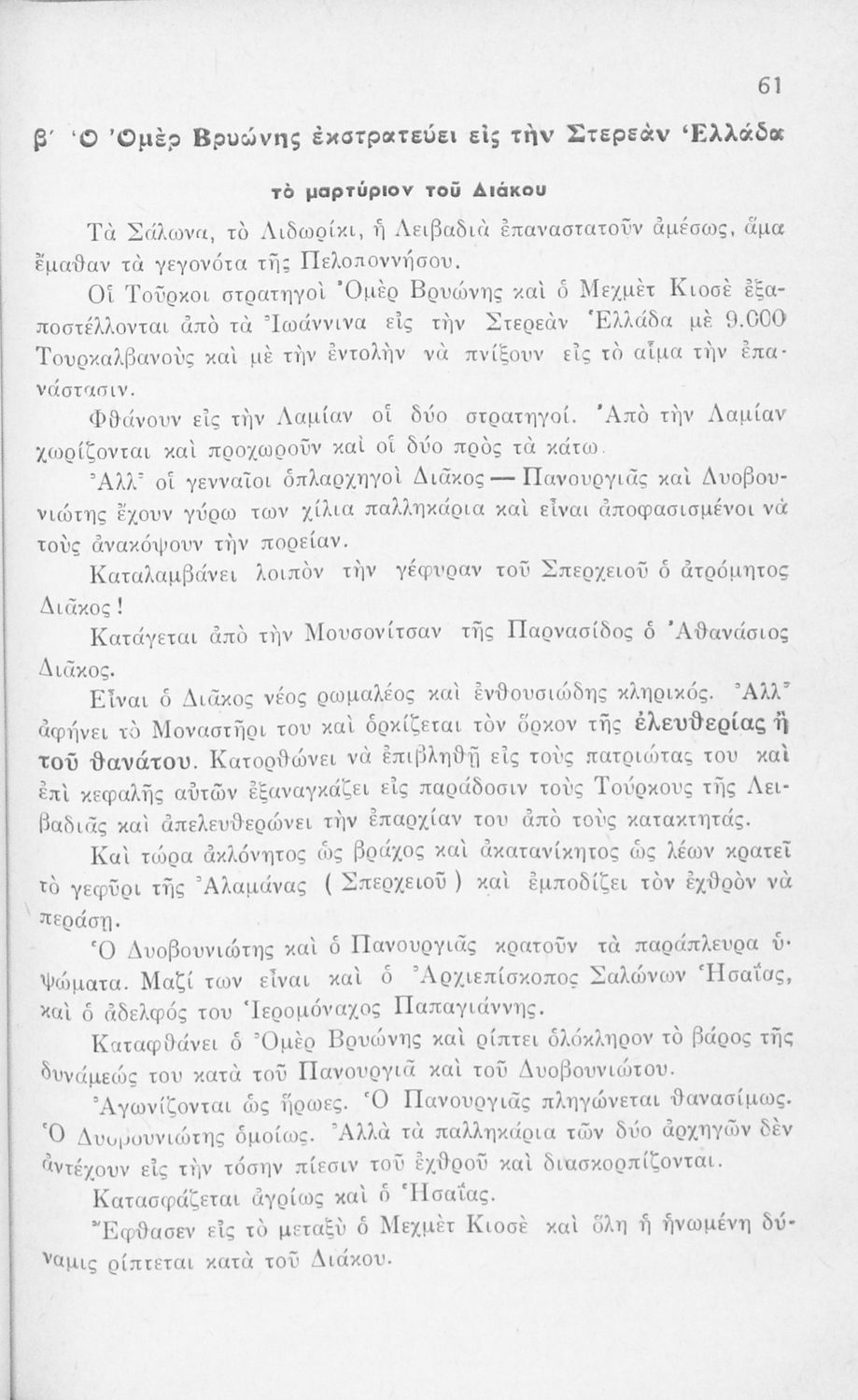 LDR 01713 2200205 4500 035 ## _a03-20561210 040 ## _aΒιβλιοθήκη της Βουλής των Ελλήνων 041 ## _ael 100 ## _aΧ. Δημητρακόπουλος 110 ## _a20561210 245 0# _aΟι απελευθερωτικοί αγώνες του έθνους. Ιστορία ΣΤ΄ Δημοτικού 260 ## _aΑθήνα _bΝ. Αλικιώτης _c1950 300 ## _a152 _bΣκίτσα, εικόνες, χάρτες (ασπρόμαυρα) 520 ## _aΣχολικό εγχειρίδιο για την ΣΤ΄ Τάξη Δημοτικού για το μάθημα της Ιστορίας. Περιλαμβάνει τα ιστορικά γεγονότα από την προεπαναστατική περίοδο και μετά αναλύει διεξοδικά τα χρόνια της Επανάστασης του 1821. Κλείνει με την συνοπτική αναφορά στη διοίκηση του ελληνικού κράτους κατά τα χρόνια του Όθωνα, του Γεωργίου Α΄, Κωνσταντίνου και Γεωργίου Β΄ . Αναφέρεται ακόμα πιο συνοπτικά στο Β΄ Παγκόσμιο Πόλεμο, την Κατοχή μέχρι και την αποχώρηση των Γερμανών. 521 ## _aΣΤ' Δημοτικού 522 ## _aΕλλάδα 546 ## _aΑπλή καθαρεύουσα 563 ## _aΜαλακό Εξώφυλλο 583 ## _a51702/15-6-1950 _c1950 650 #4 _aΒ΄ Παγκόσμιος _aΕλλάδα _aΕπανάσταση 1821 _aΙστορία _aΚαποδίστριας _aΚατοχή _aΜεγάλη Ιδέα _aΌθωνας