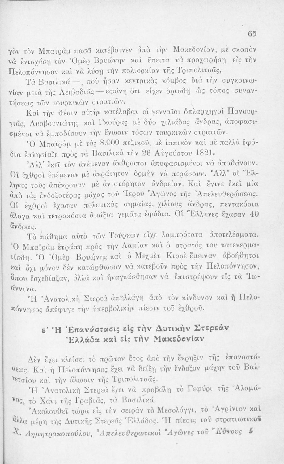 Σχολικό εγχειρίδιο για την ΣΤ΄ Τάξη Δημοτικού για το μάθημα της Ιστορίας. Περιλαμβάνει τα ιστορικά γεγονότα από την προεπαναστατική περίοδο και μετά αναλύει διεξοδικά τα χρόνια της Επανάστασης του 1821. Κλείνει με την συνοπτική αναφορά στη διοίκηση του ελληνικού κράτους κατά τα χρόνια του Όθωνα, του Γεωργίου Α΄, Κωνσταντίνου και Γεωργίου Β΄ . Αναφέρεται ακόμα πιο συνοπτικά στο Β΄ Παγκόσμιο Πόλεμο, την Κατοχή μέχρι και την αποχώρηση των Γερμανών.