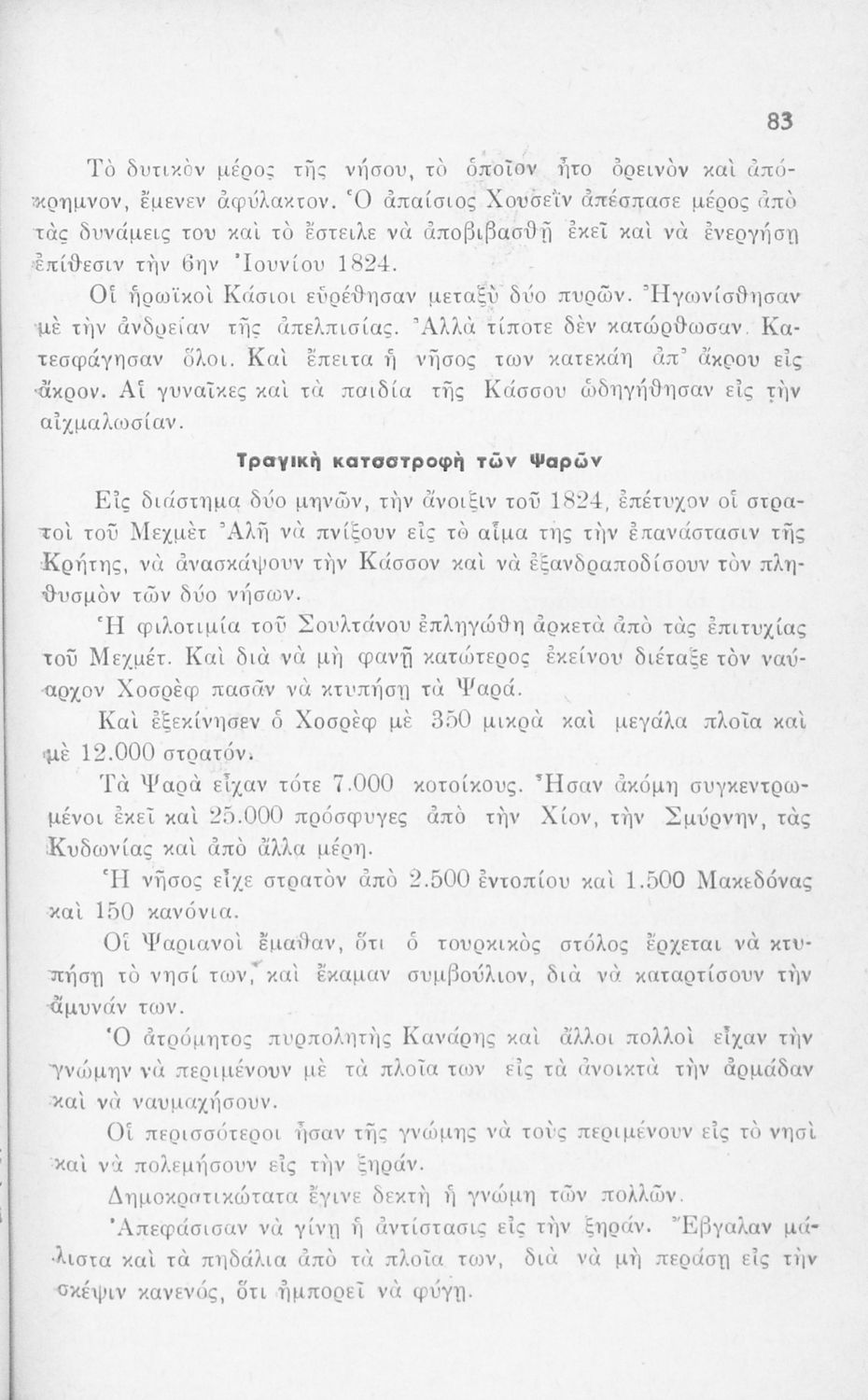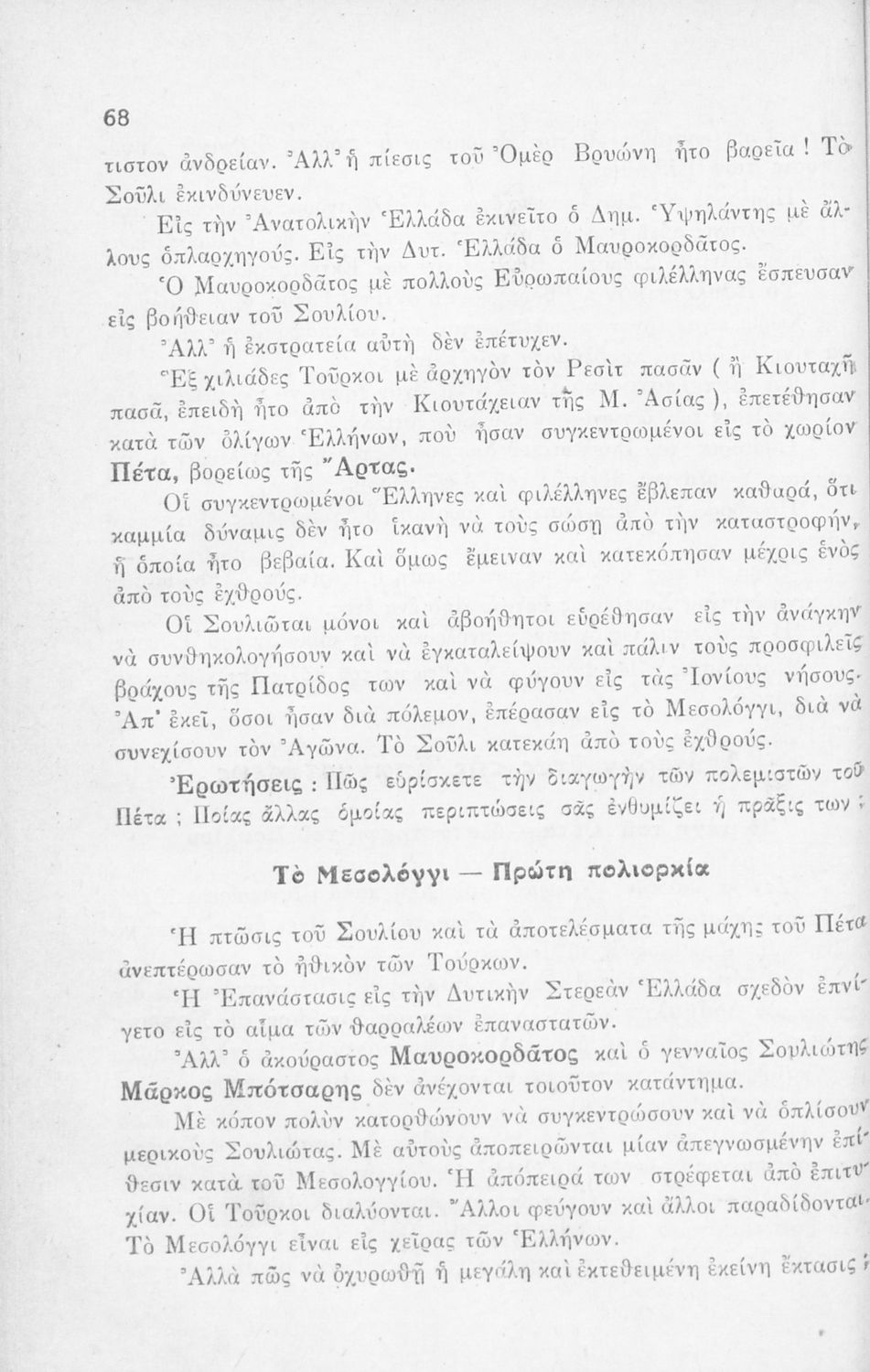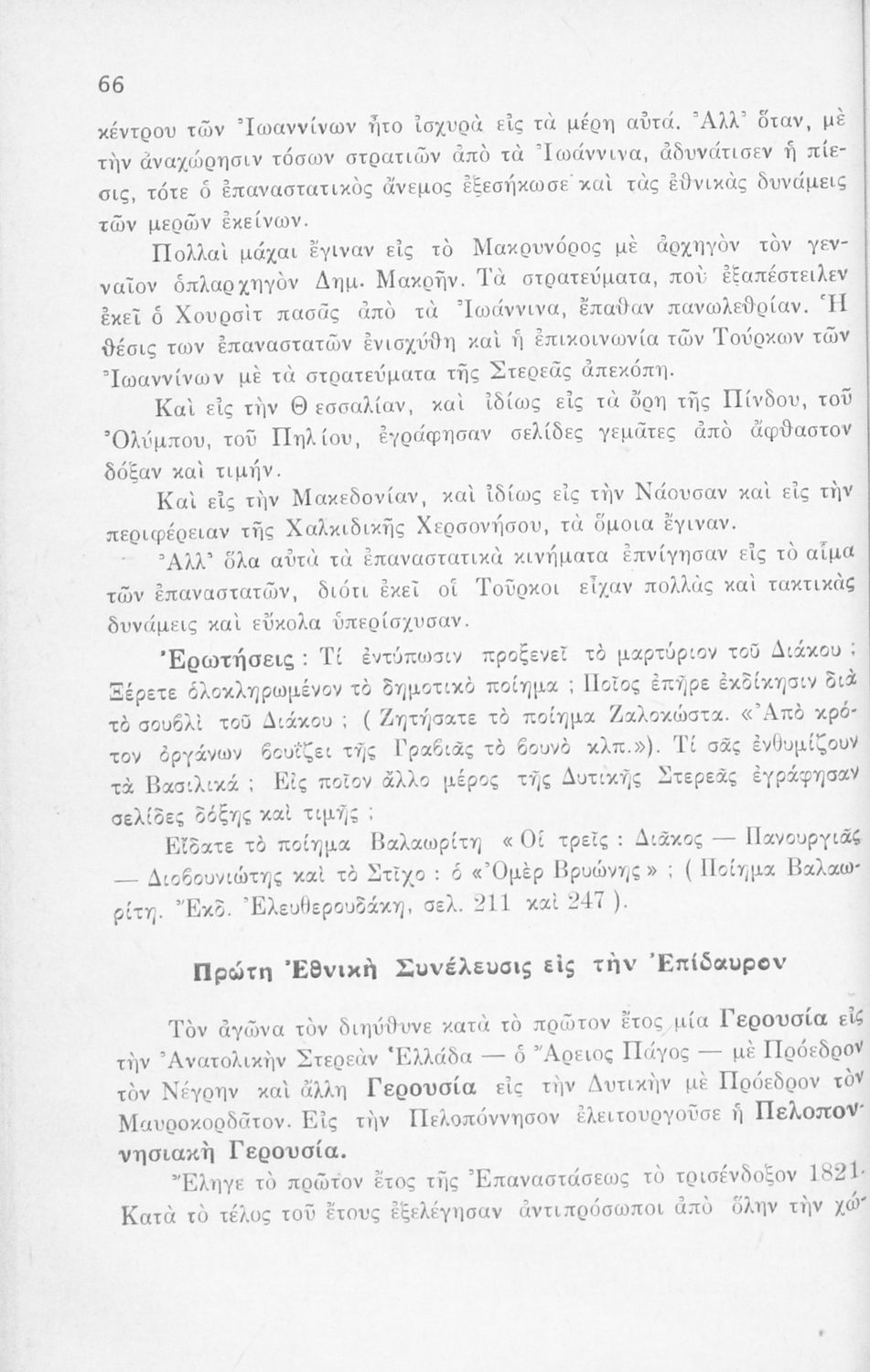 Βαθμίδα εκπαίδευσης: Πρωτοβάθμια Τάξη: ΣΤ' Δημοτικού Μάθημα: Ιστορία Γλώσσα: Απλή καθαρεύουσα Παρουσίαση περιεχομένου: Σχολικό εγχειρίδιο για την ΣΤ΄ Τάξη Δημοτικού για το μάθημα της Ιστορίας. Περιλαμβάνει τα ιστορικά γεγονότα από την προεπαναστατική περίοδο και μετά αναλύει διεξοδικά τα χρόνια της Επανάστασης του 1821. Κλείνει με την συνοπτική αναφορά στη διοίκηση του ελληνικού κράτους κατά τα χρόνια του Όθωνα, του Γεωργίου Α΄, Κωνσταντίνου και Γεωργίου Β΄ . Αναφέρεται ακόμα πιο συνοπτικά στο Β΄ Παγκόσμιο Πόλεμο, την Κατοχή μέχρι και την αποχώρηση των Γερμανών. |