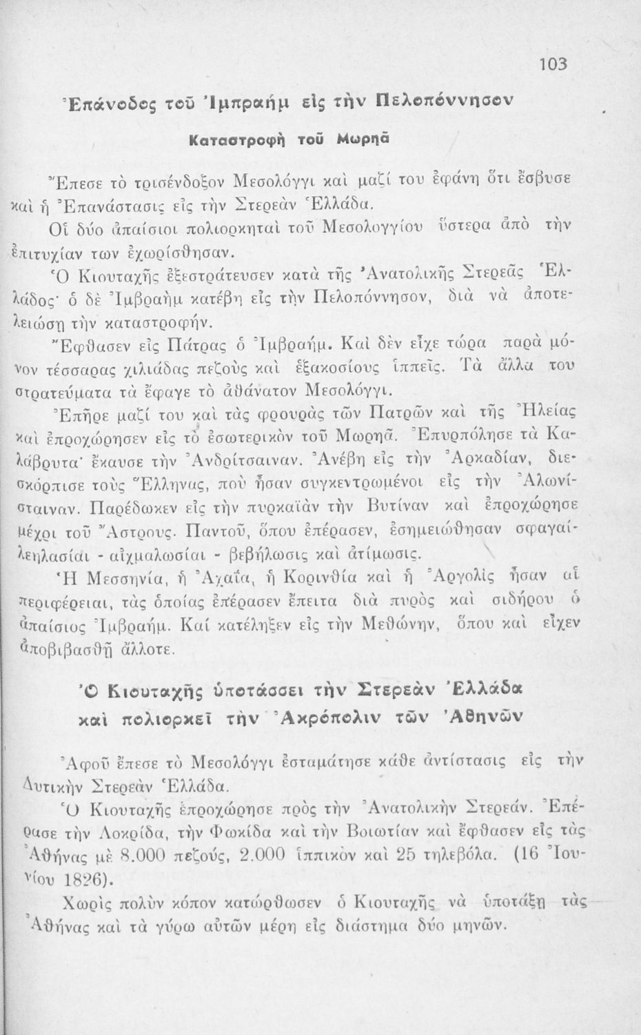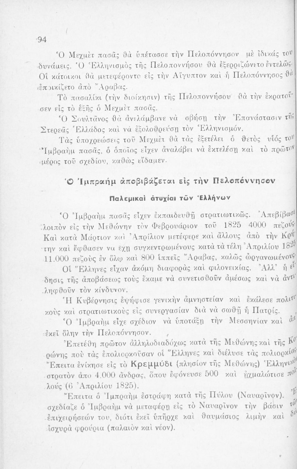 Βαθμίδα εκπαίδευσης: Πρωτοβάθμια Τάξη: ΣΤ' Δημοτικού Μάθημα: Ιστορία Γλώσσα: Απλή καθαρεύουσα Παρουσίαση περιεχομένου: Σχολικό εγχειρίδιο για την ΣΤ΄ Τάξη Δημοτικού για το μάθημα της Ιστορίας. Περιλαμβάνει τα ιστορικά γεγονότα από την προεπαναστατική περίοδο και μετά αναλύει διεξοδικά τα χρόνια της Επανάστασης του 1821. Κλείνει με την συνοπτική αναφορά στη διοίκηση του ελληνικού κράτους κατά τα χρόνια του Όθωνα, του Γεωργίου Α΄, Κωνσταντίνου και Γεωργίου Β΄ . Αναφέρεται ακόμα πιο συνοπτικά στο Β΄ Παγκόσμιο Πόλεμο, την Κατοχή μέχρι και την αποχώρηση των Γερμανών. |
