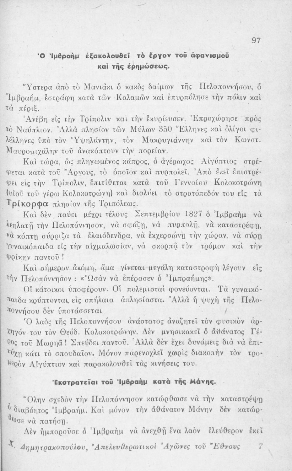 Σχολικό εγχειρίδιο για την ΣΤ΄ Τάξη Δημοτικού για το μάθημα της Ιστορίας. Περιλαμβάνει τα ιστορικά γεγονότα από την προεπαναστατική περίοδο και μετά αναλύει διεξοδικά τα χρόνια της Επανάστασης του 1821. Κλείνει με την συνοπτική αναφορά στη διοίκηση του ελληνικού κράτους κατά τα χρόνια του Όθωνα, του Γεωργίου Α΄, Κωνσταντίνου και Γεωργίου Β΄ . Αναφέρεται ακόμα πιο συνοπτικά στο Β΄ Παγκόσμιο Πόλεμο, την Κατοχή μέχρι και την αποχώρηση των Γερμανών.
