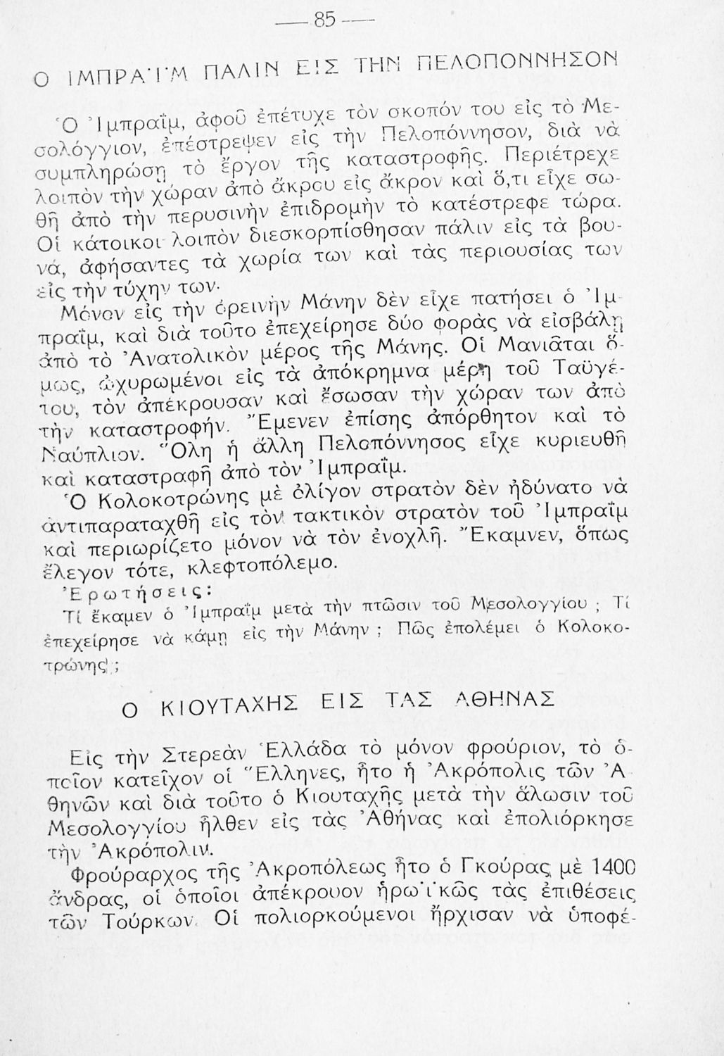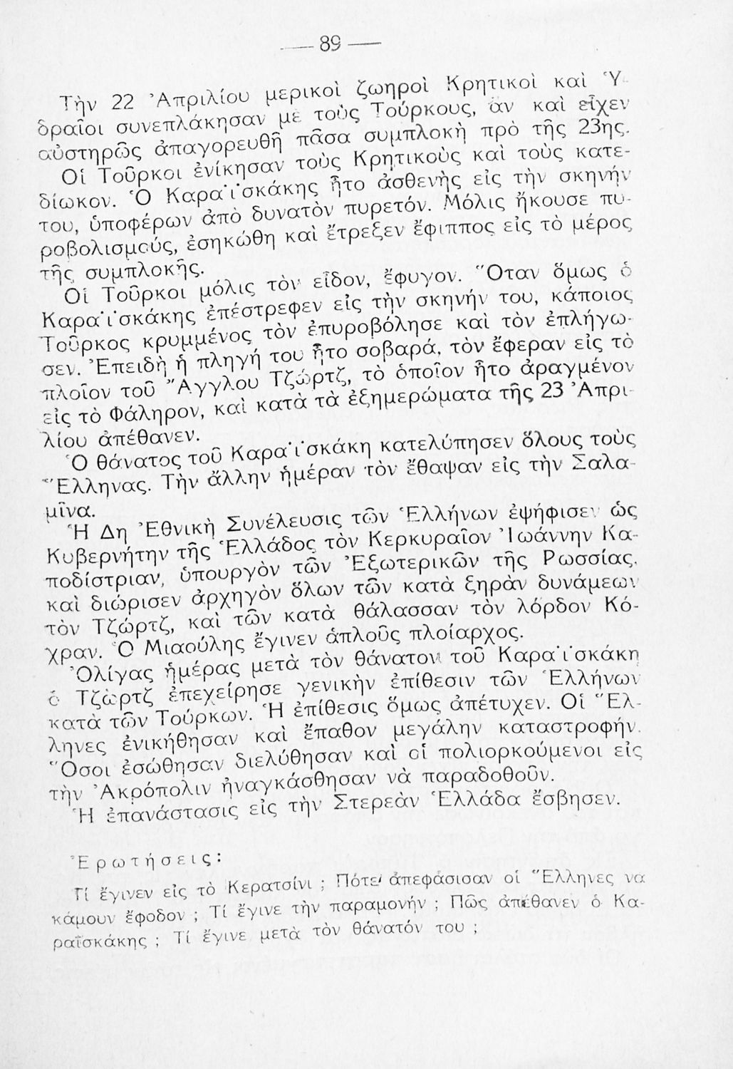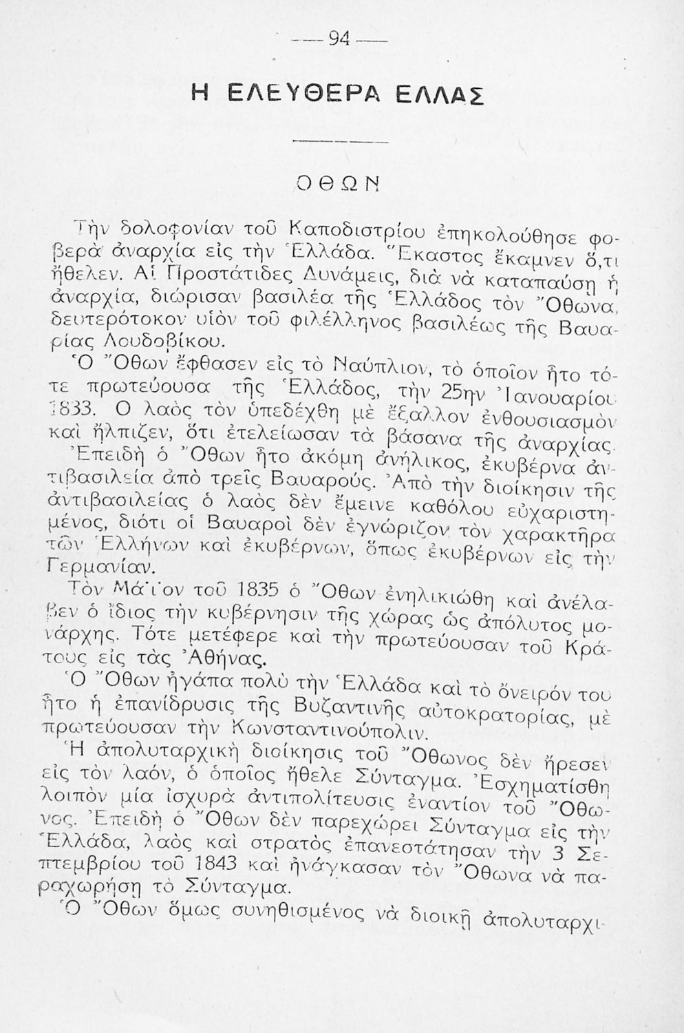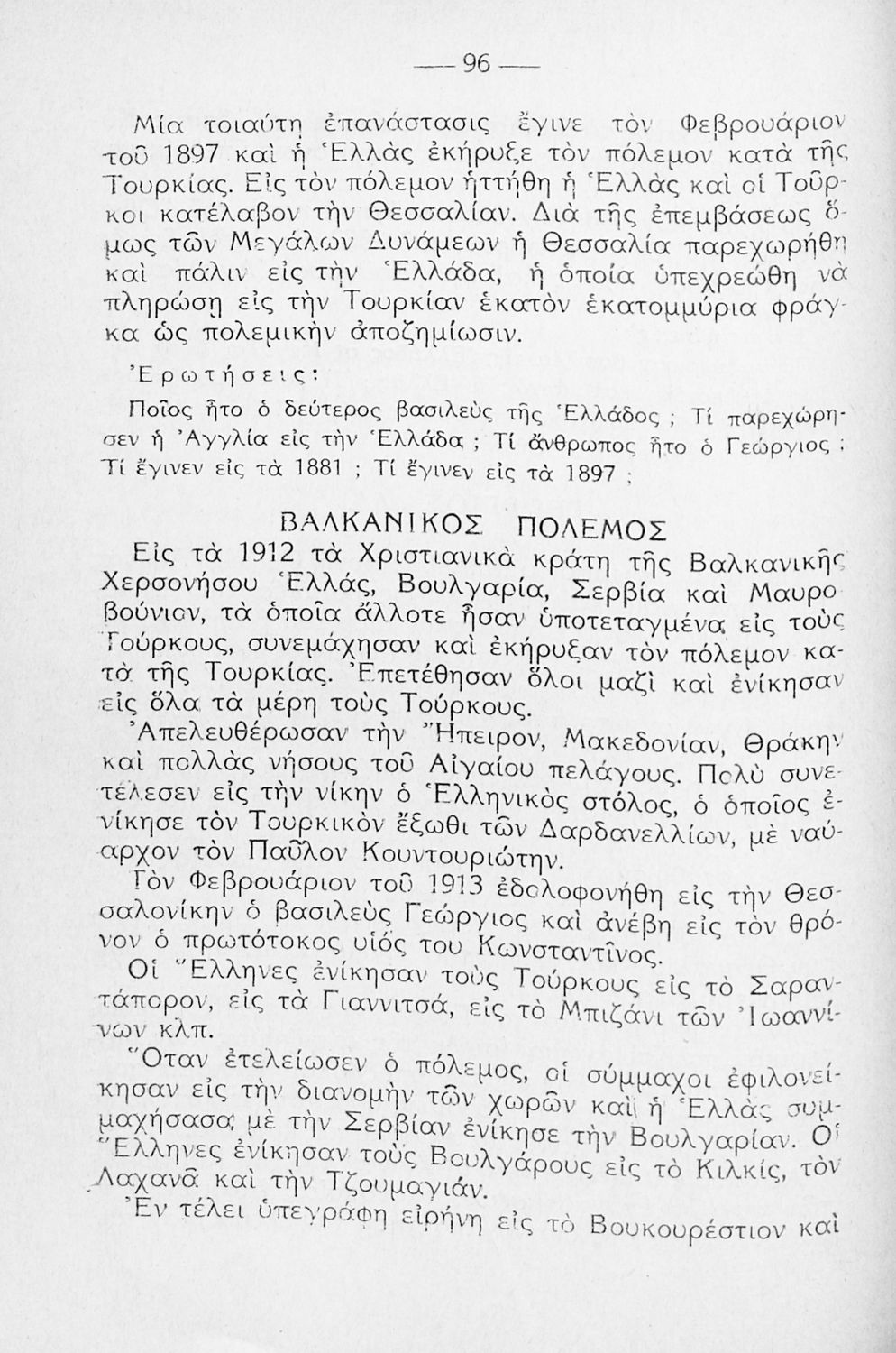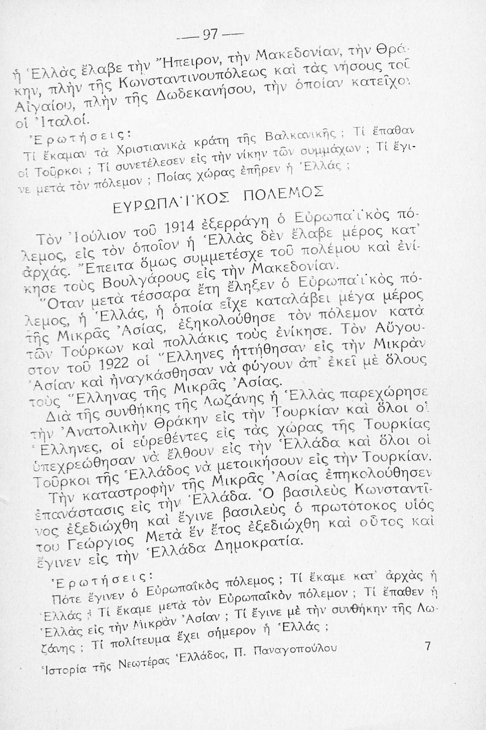 Βαθμίδα εκπαίδευσης: Πρωτοβάθμια Τάξη: ΣΤ' Δημοτικού Μάθημα: Ιστορία Γλώσσα: Καθαρεύουσα Παρουσίαση περιεχομένου: Μαθητικό βοήθημα Ιστορίας ΣΤ΄ Δημοτικού που περιλαμβάνει την ιστορία της νεώτερης Ελλάδας από την περίοδο των Φαναριωτών μέχρι τον Α΄ Παγκόσμιο Πόλεμο |