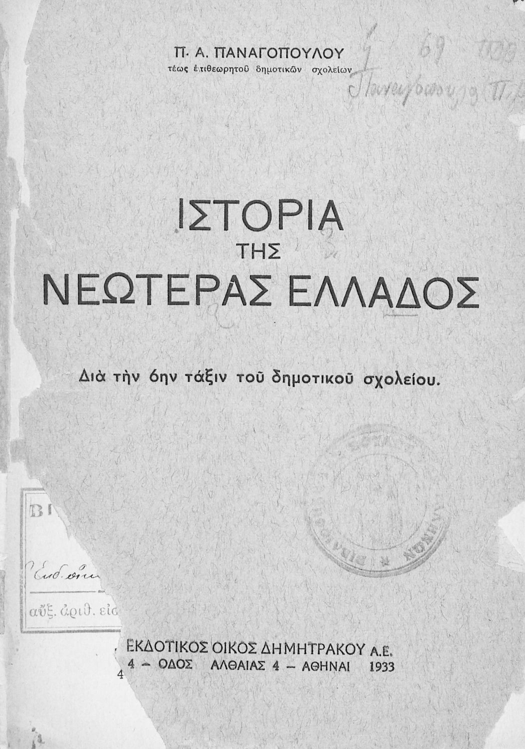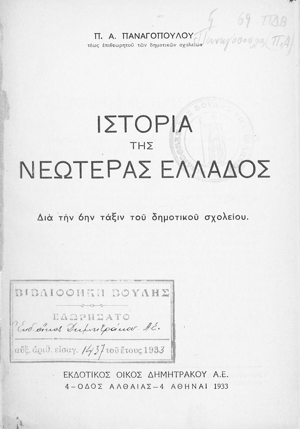 Τίτλος: Ιστορία της Νεωτέρας Ελλάδος δια την 6ην τάξιν του Δημοτικού Σχολείου