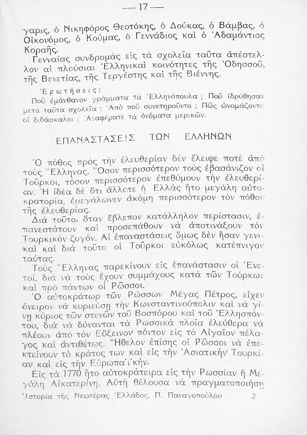 Ιστορία της Νεωτέρας Ελλάδος δια την 6ην τάξιν του Δημοτικού Σχολείου