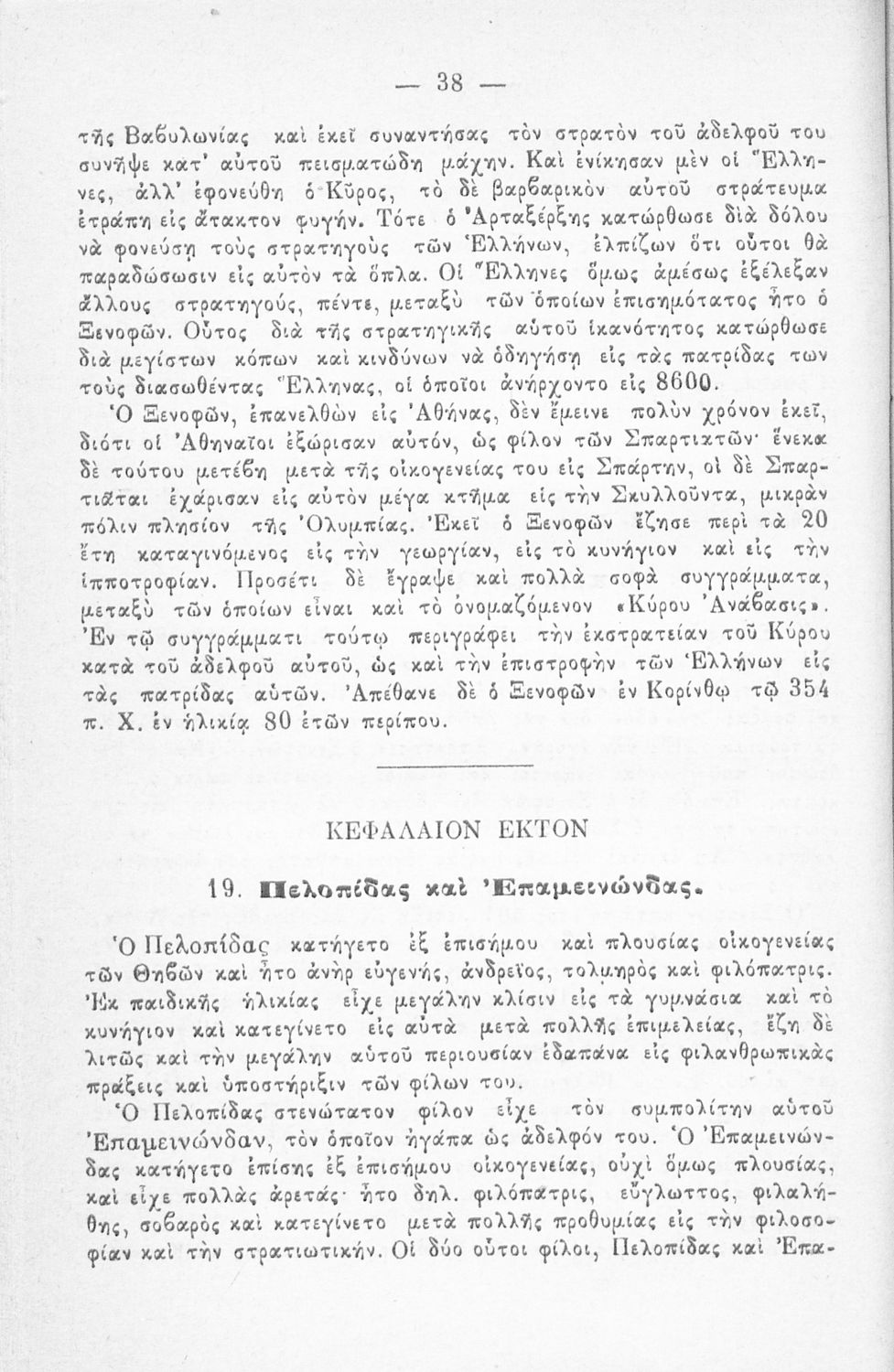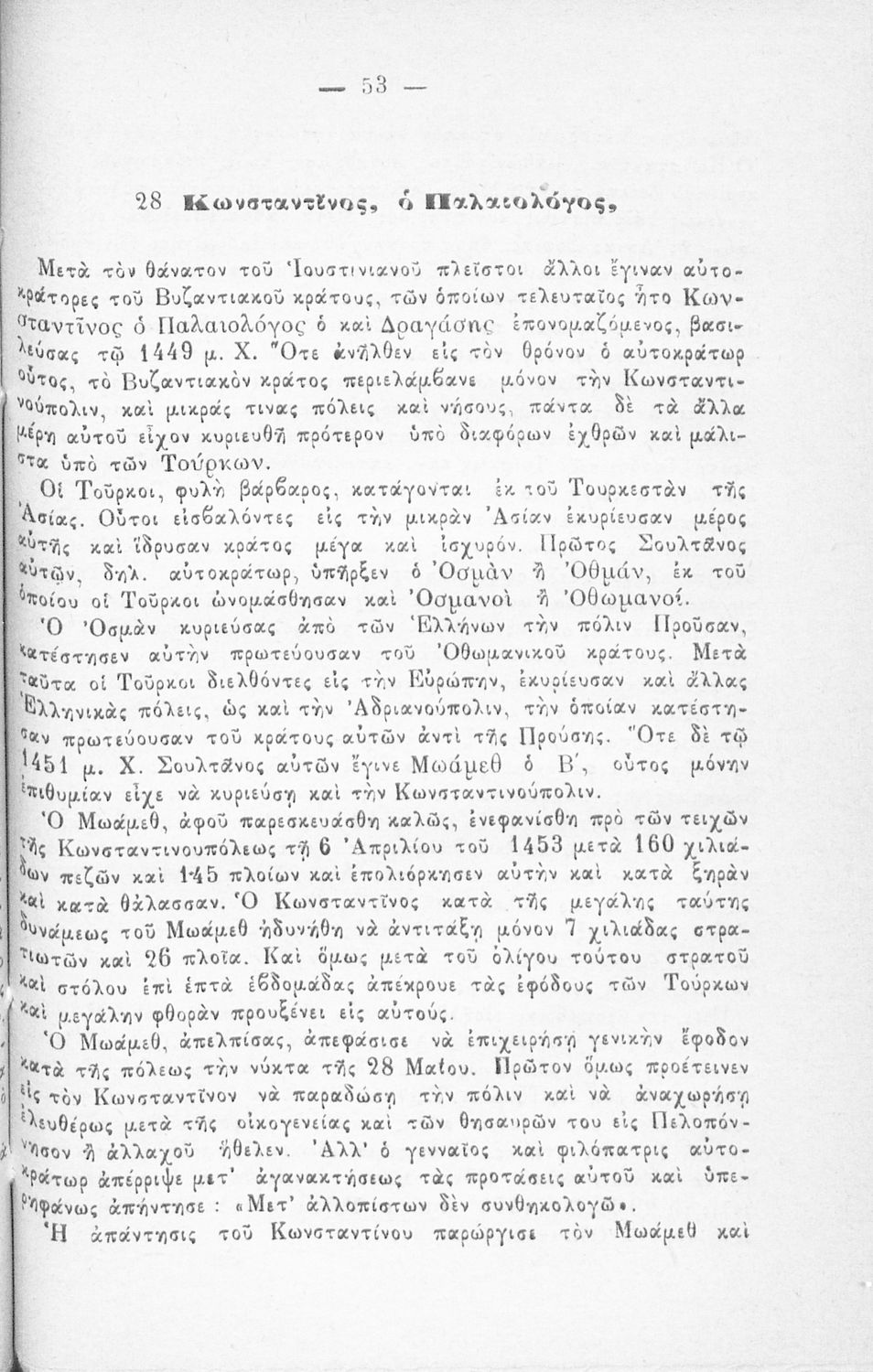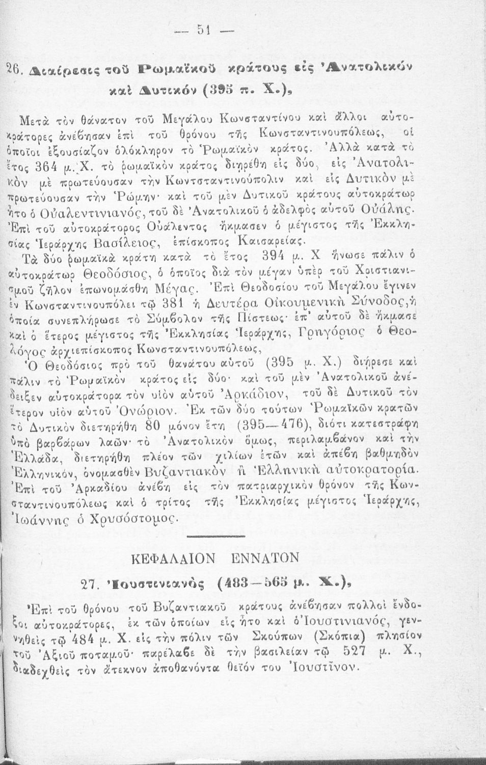 Βαθμίδα εκπαίδευσης: Πρωτοβάθμια Τάξη: Γ' Δημοτικού / Δ' Δημοτικού Μάθημα: Ιστορία Γλώσσα: Καθαρεύουσα Παρουσίαση περιεχομένου: Σχολικό Εγχειρίδιο Ιστορίας Γ' και Δ΄ Δημοτικού Σχολείου που περιλαμβάνει την περίοδο από τους ηρωικούς και μυθικούς χρόνους μέχρι τη βασιλεία του Όθωνα και του Γεωργίου Α΄. Περιλαμβάνει ρητή αναφορά στο σχήμα του Παπαρρηγόπουλου και προσβλέπει στην ένωση Ελλάδας και Κύπρου. |