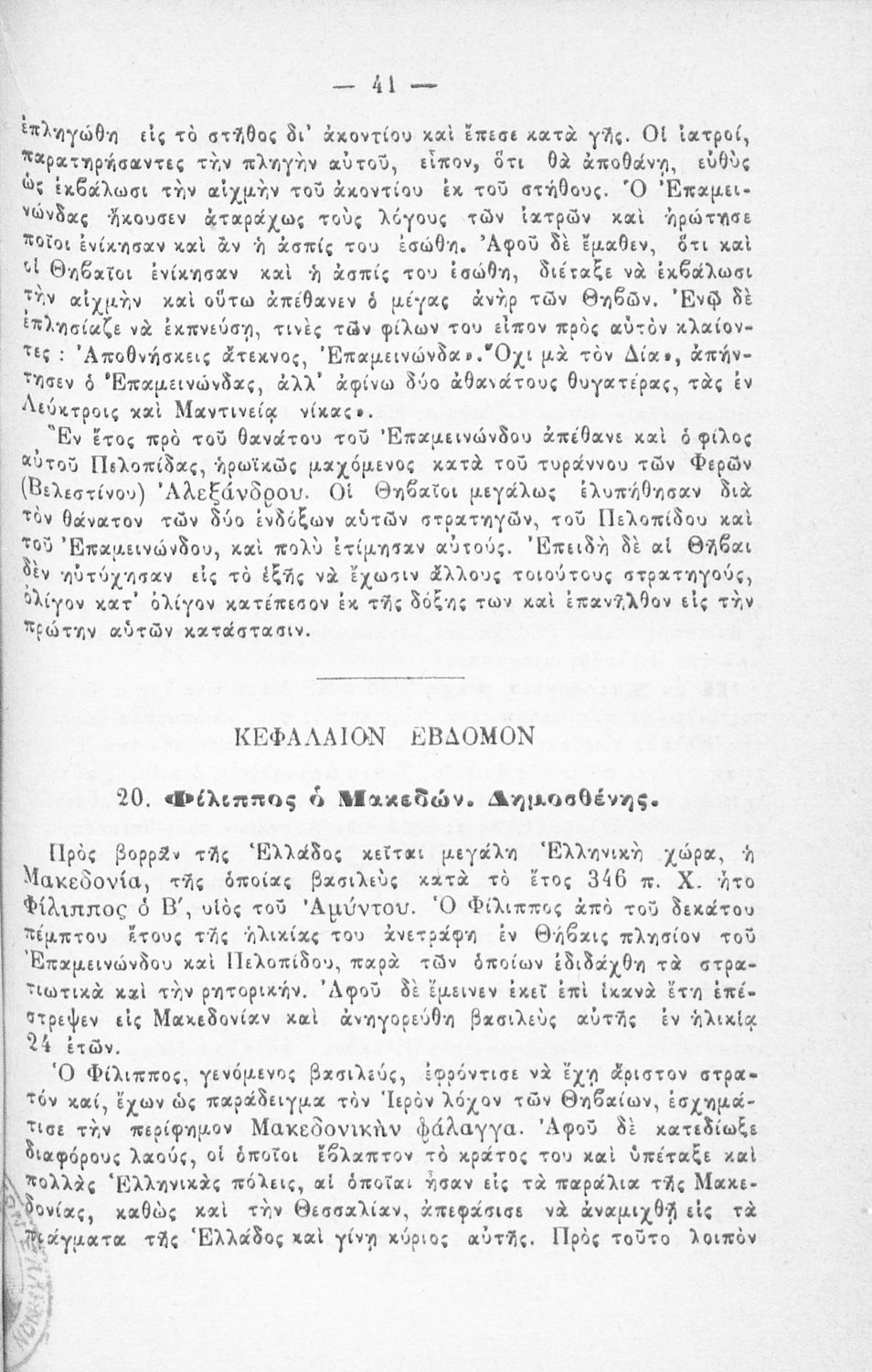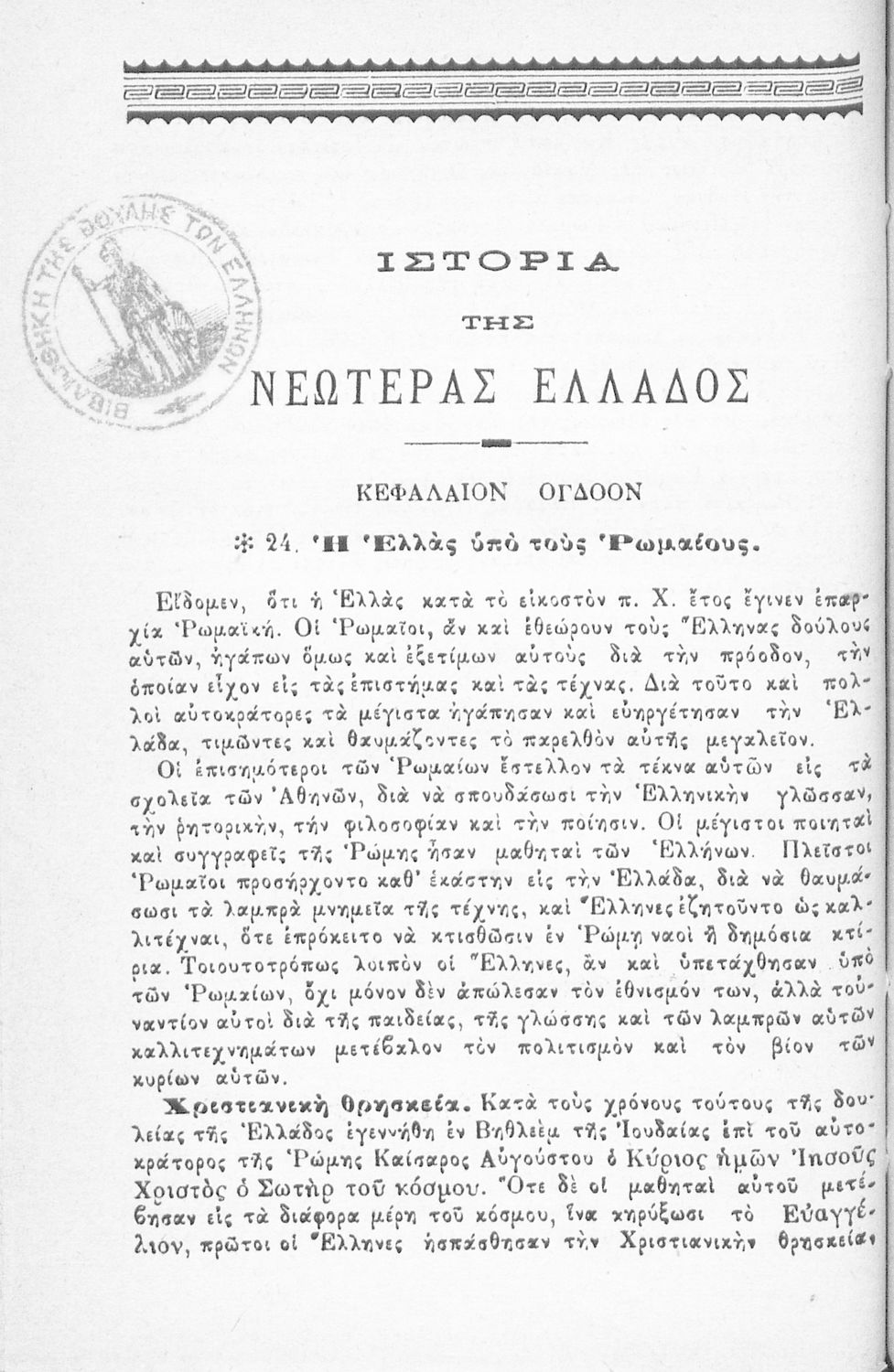 Σχολικό Εγχειρίδιο Ιστορίας Γ' και Δ΄ Δημοτικού Σχολείου που περιλαμβάνει την περίοδο από τους ηρωικούς και μυθικούς χρόνους μέχρι τη βασιλεία του Όθωνα και του Γεωργίου Α΄. Περιλαμβάνει ρητή αναφορά στο σχήμα του Παπαρρηγόπουλου και προσβλέπει στην ένωση Ελλάδας και Κύπρου.