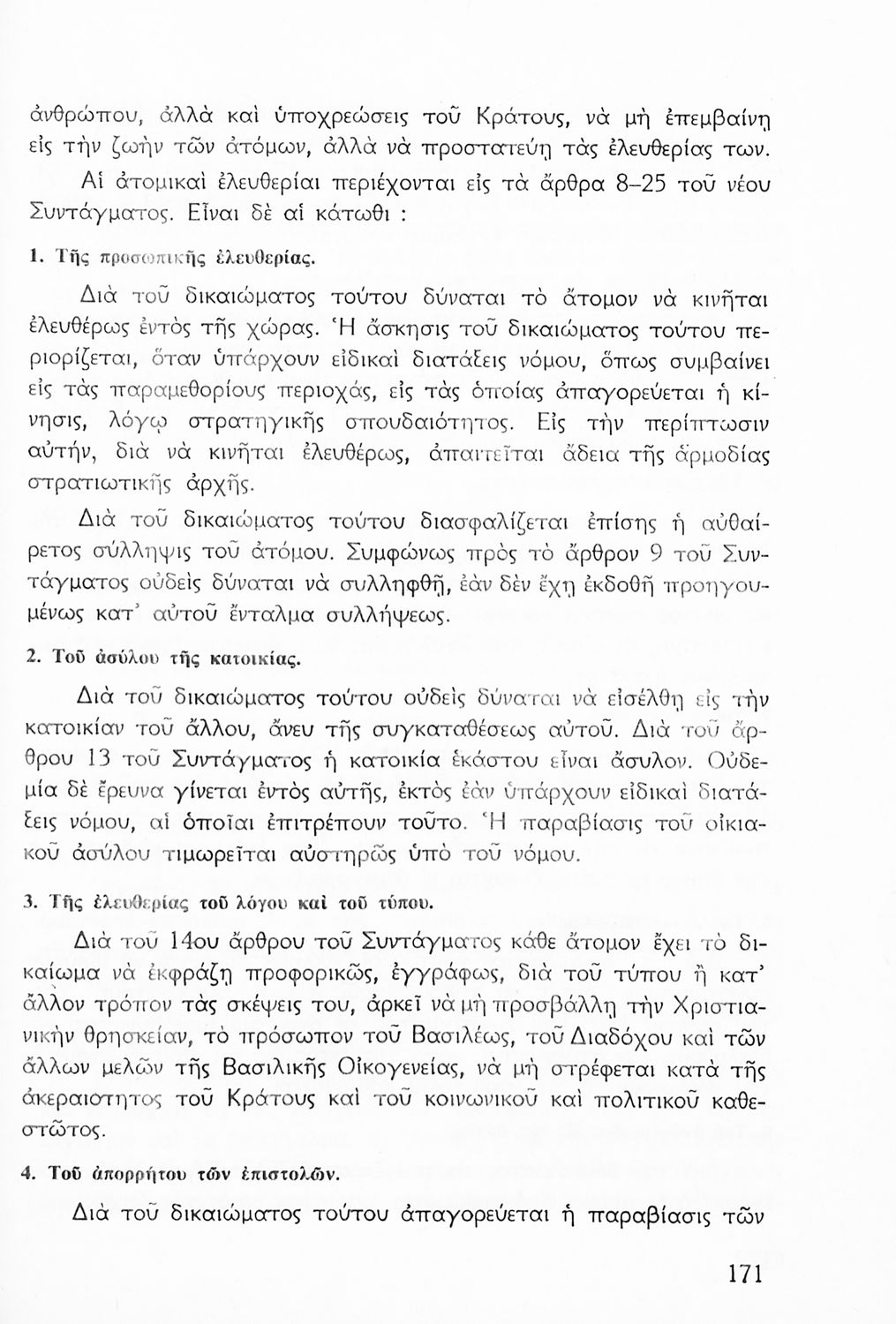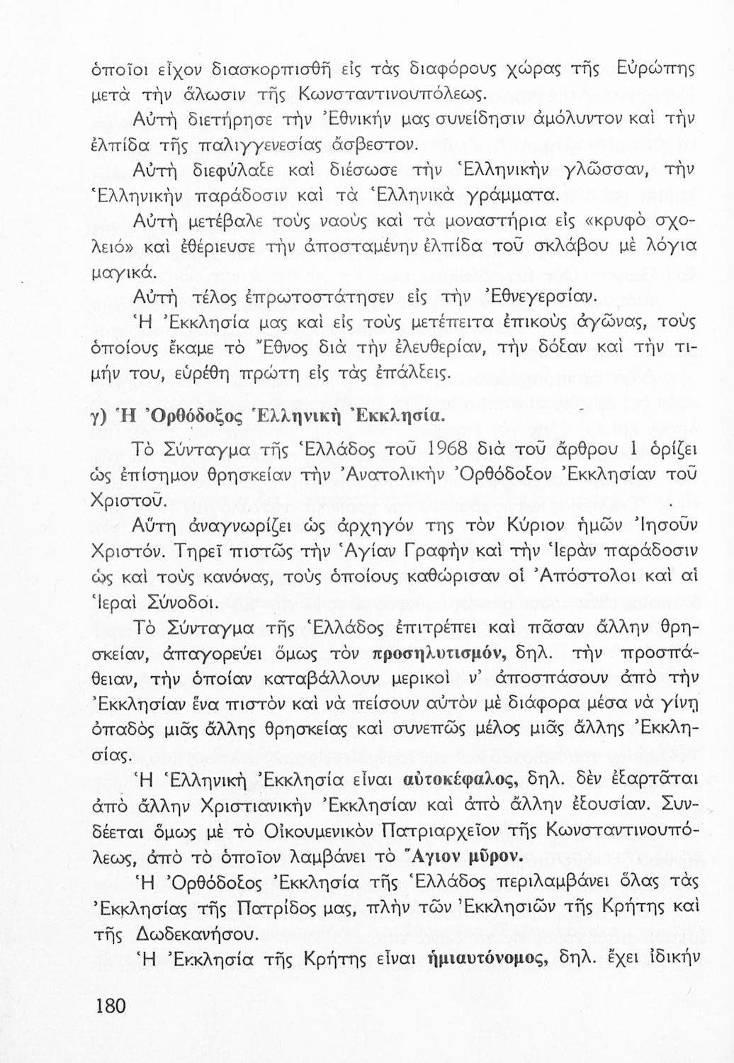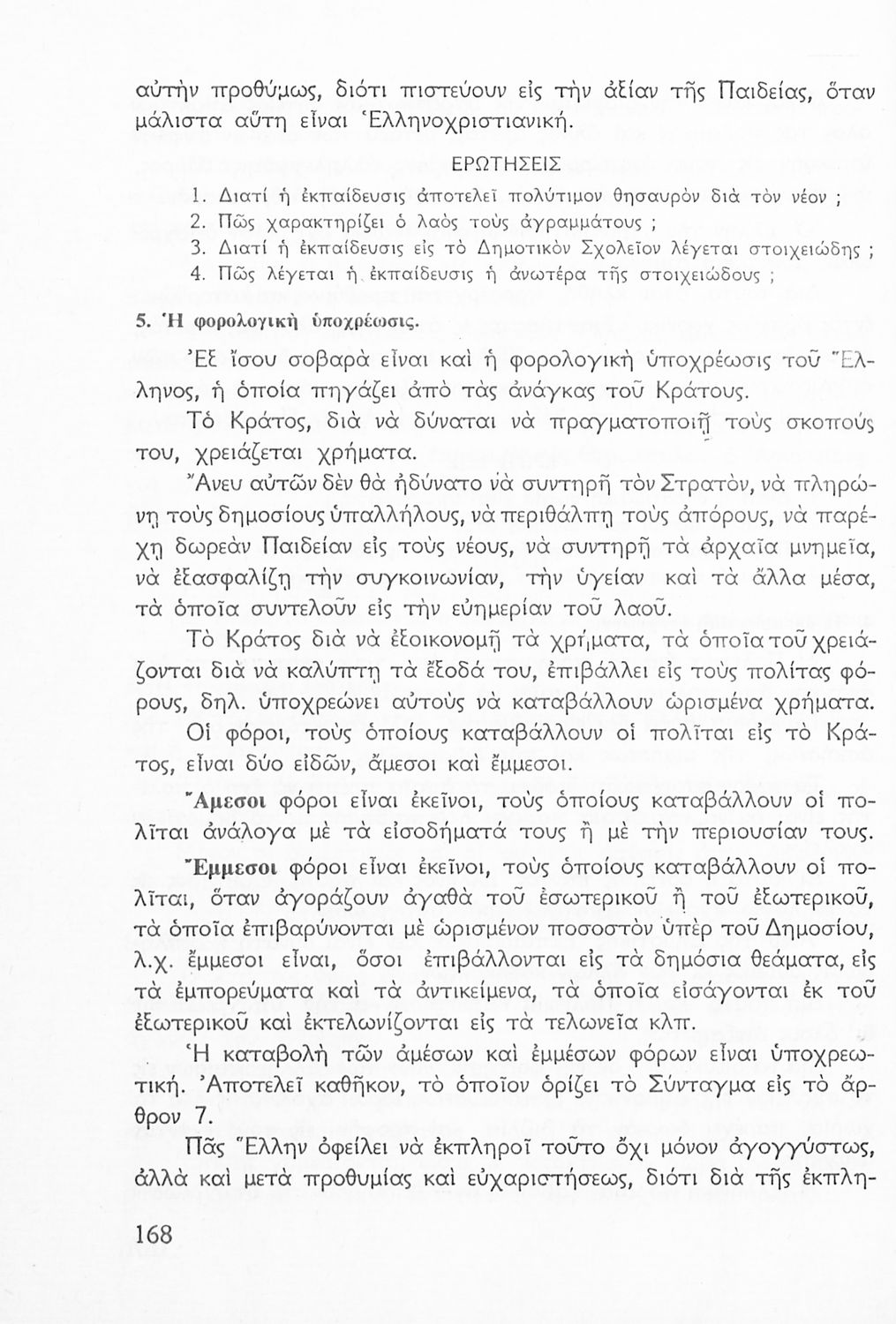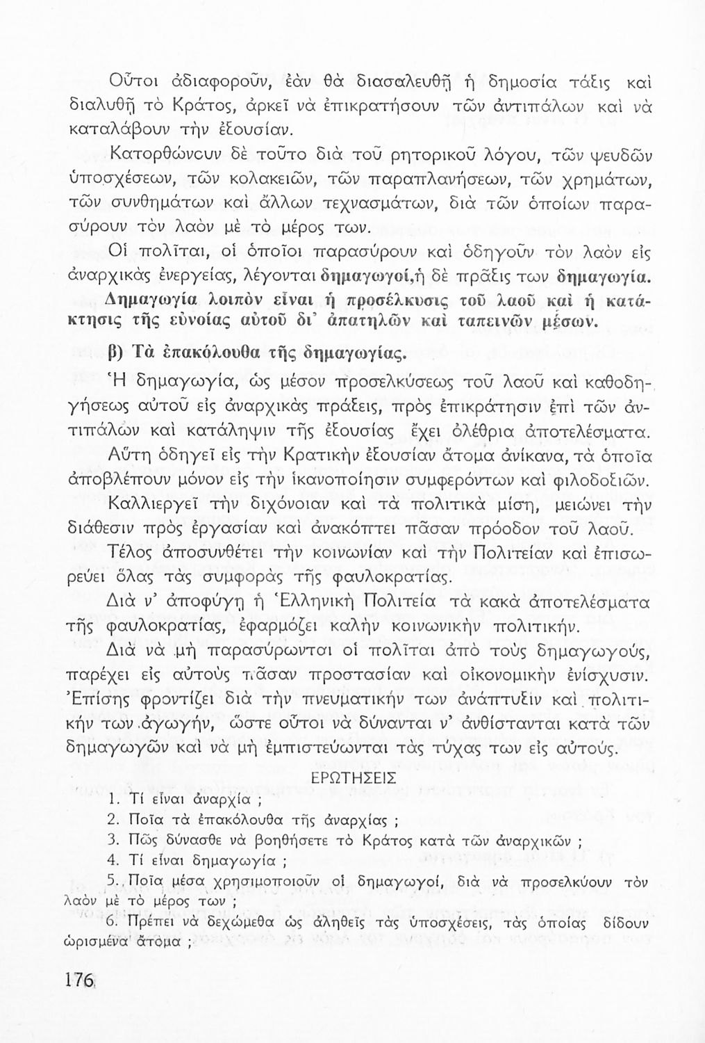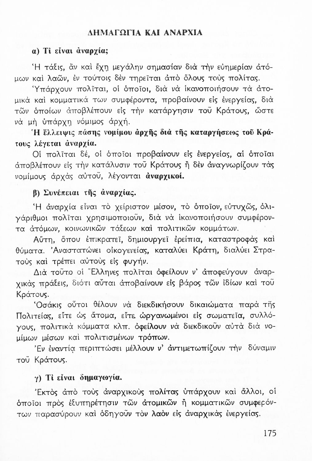 Σχολικό εγχειρίδιο Αγωγής του Πολίτη για τη ΣΤ΄ Δημοτικού που αναλύει τους εθνικούς και διεθνείς οικονομικούς, πολιτικούς και πολιτειακούς θεσμούς. Το βιβλίο εξαίρει τη δικτατορία των συνταγματαρχών και υιοθετεί τον εθνικιστικό και αντικομμουνιστικό της λόγο.