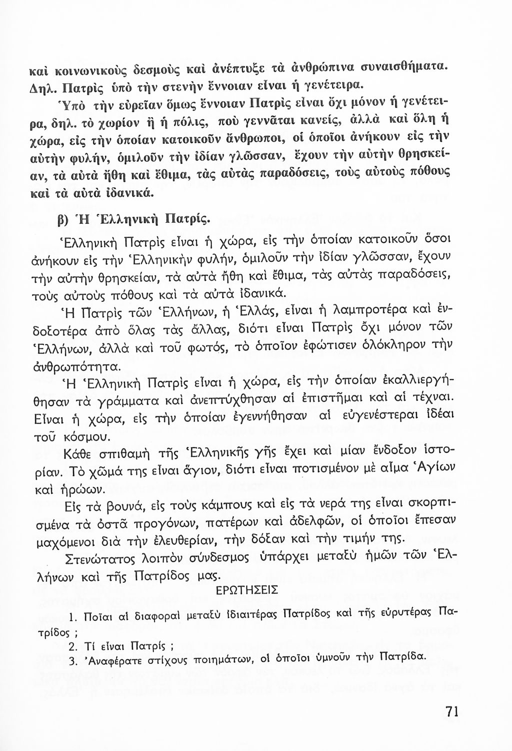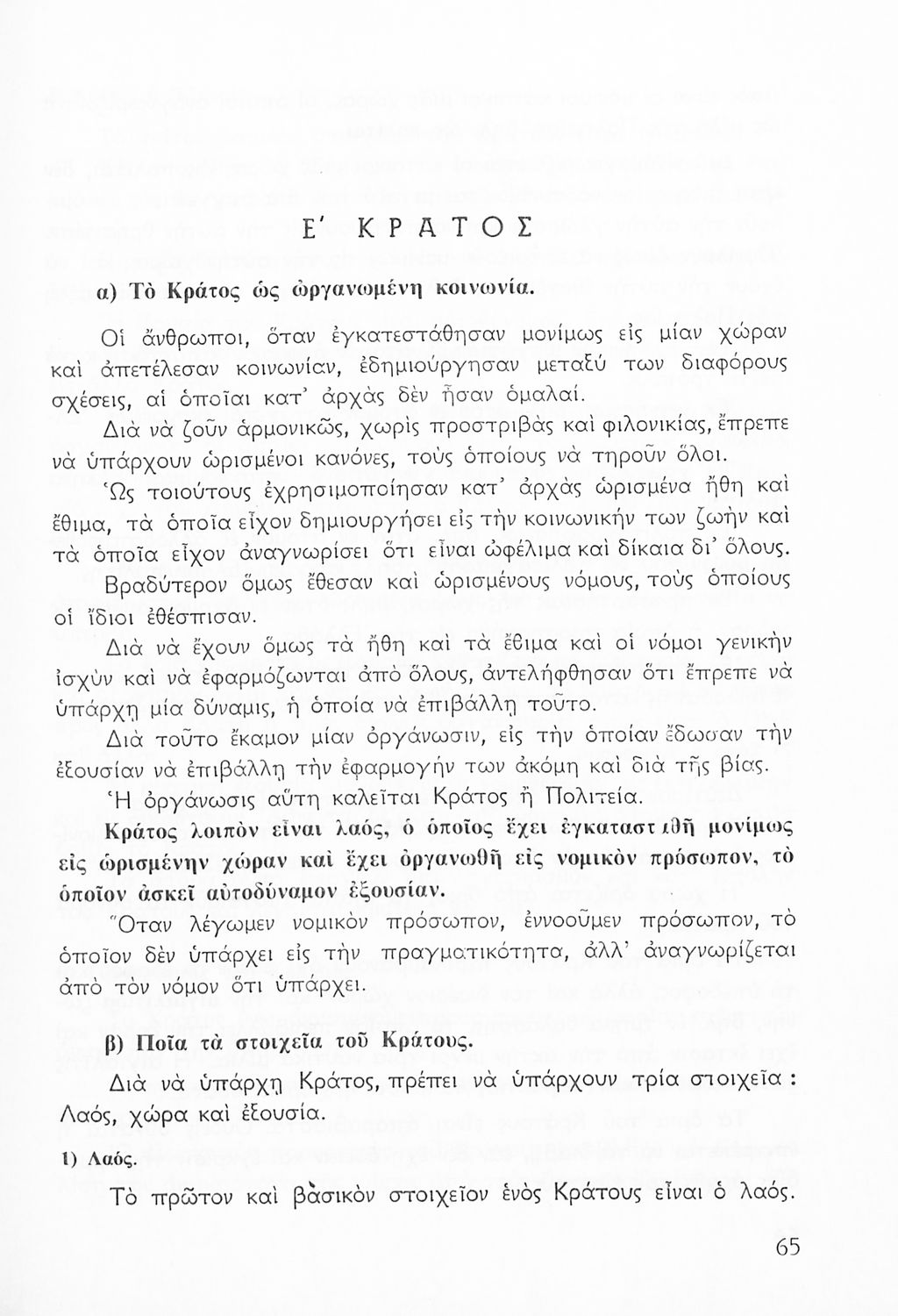 Σχολικό εγχειρίδιο Αγωγής του Πολίτη για τη ΣΤ΄ Δημοτικού που αναλύει τους εθνικούς και διεθνείς οικονομικούς, πολιτικούς και πολιτειακούς θεσμούς. Το βιβλίο εξαίρει τη δικτατορία των συνταγματαρχών και υιοθετεί τον εθνικιστικό και αντικομμουνιστικό της λόγο.