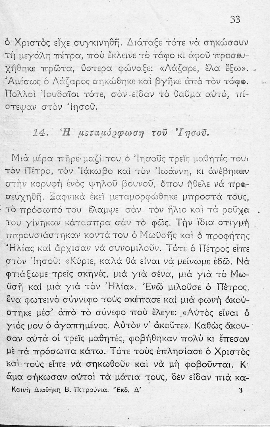Σχολικό εγχειρίδιο Θρησκευτικών για τα Ελληνικά Σχολεία και τα Παρθεναγωγεία που περιλαμβάνει την ιστορία της Καινής Διαθήκης από τον Ευαγγελισμό της Θεοτόκου μέχρι την ανάληψη του Ιησού Χριστού