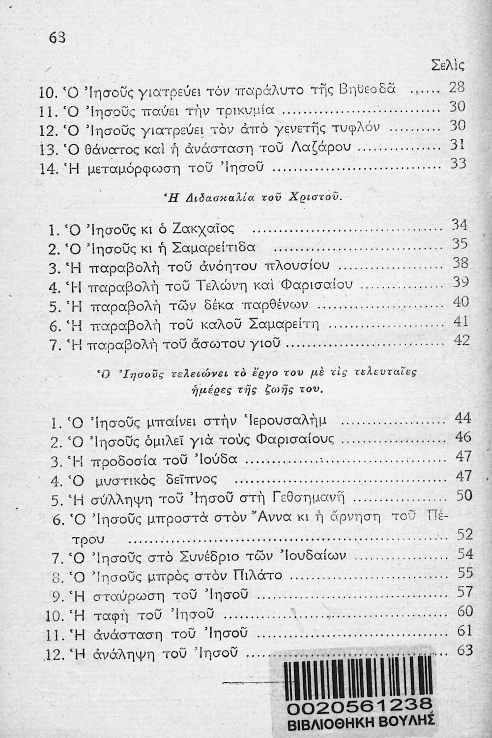 LDR 00948 2200181 4500 035 ## _a03-20561238 040 ## _aΒιβλιοθήκη της Βουλής των Ελλήνων 041 ## _ael 100 ## _aΒασίλειος Ε. Πετρούνιας 110 ## _a0020561238 245 0# _aΙερά Ιστορία της Καινής Διαθήκης 250 ## _a7η Έκδοση 260 ## _aΑθήνα _bΔημήτριος Δημητράκος Α.Ε _c1945 300 ## _a65 _bΣκίτσα και εικόνες (ασπρόμαυρα) 520 ## _aΣχολικό εγχειρίδιο Θρησκευτικών που συνιστά μία εξιστόρηση της Καινής Διαθήκης από τη γέννηση της Θεοτόκου ως την ανάληψη του Χριστού. 522 ## _aΕλλάδα 546 ## _aΔημοτική 650 #4 _aΘαύματα _aΙωάννης ο Πρόδρομος _aΠαραβολές _aΣταύρωση