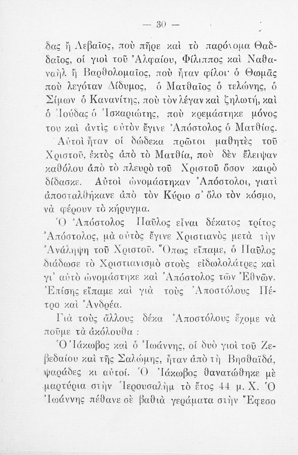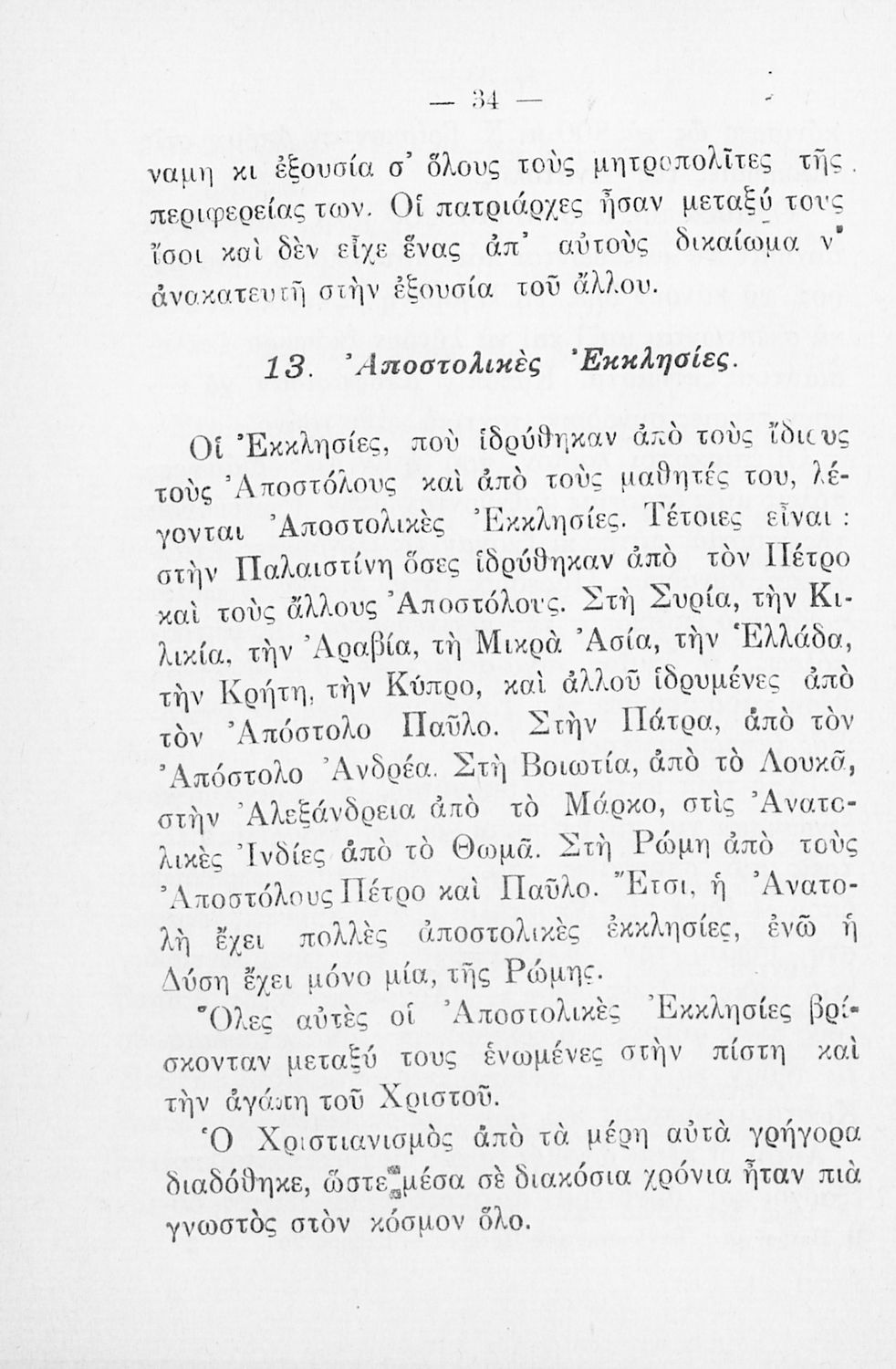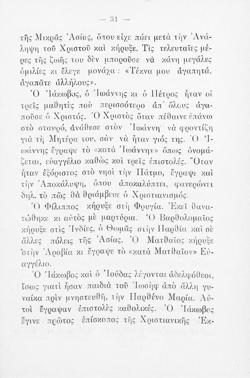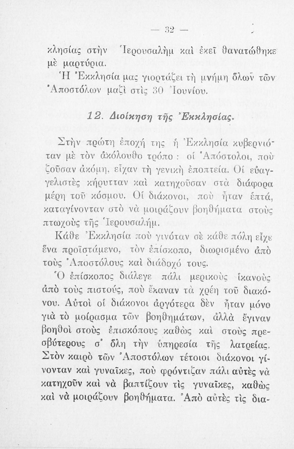 Το σύγγραμμα ήταν σχολικό εγχειρίδιο για το μαθήματα των Θρησκευτικών. Περιγράφει σημαντικά γεγονότα της θρησκευτικής ζωής ξεκινώντας από την Πεντηκοστή. Επίσης, αναφέρεται σε θέματα διοίκησης της εκκλησίας ...