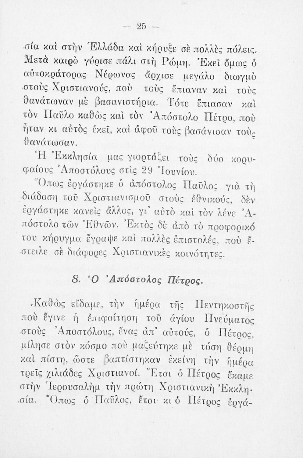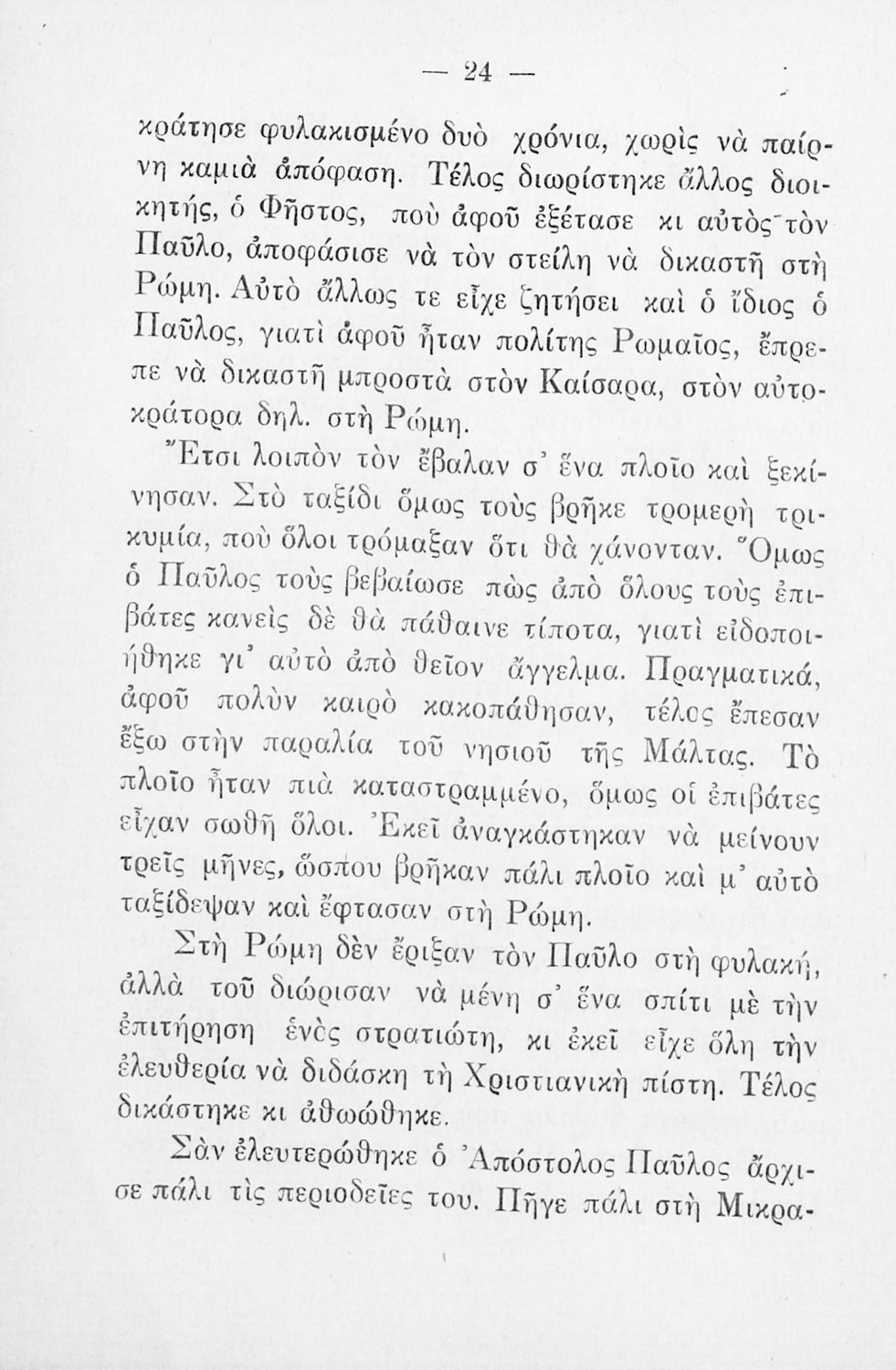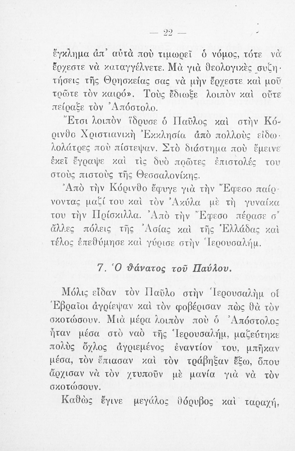 Το σύγγραμμα ήταν σχολικό εγχειρίδιο για το μαθήματα των Θρησκευτικών. Περιγράφει σημαντικά γεγονότα της θρησκευτικής ζωής ξεκινώντας από την Πεντηκοστή. Επίσης, αναφέρεται σε θέματα διοίκησης της εκκλησίας ...