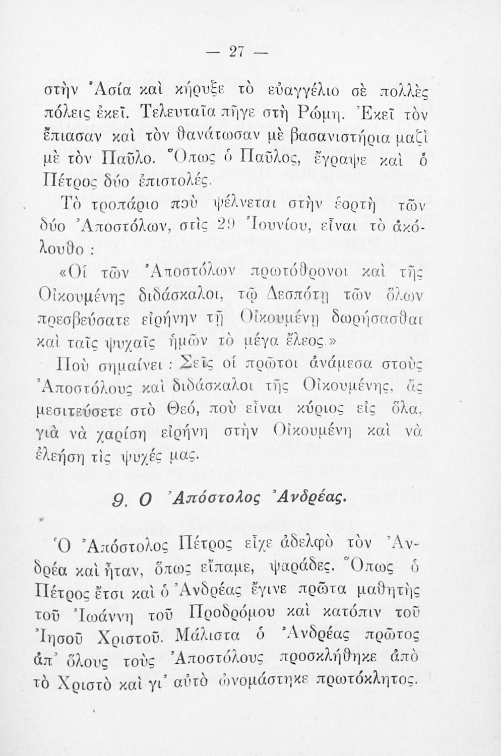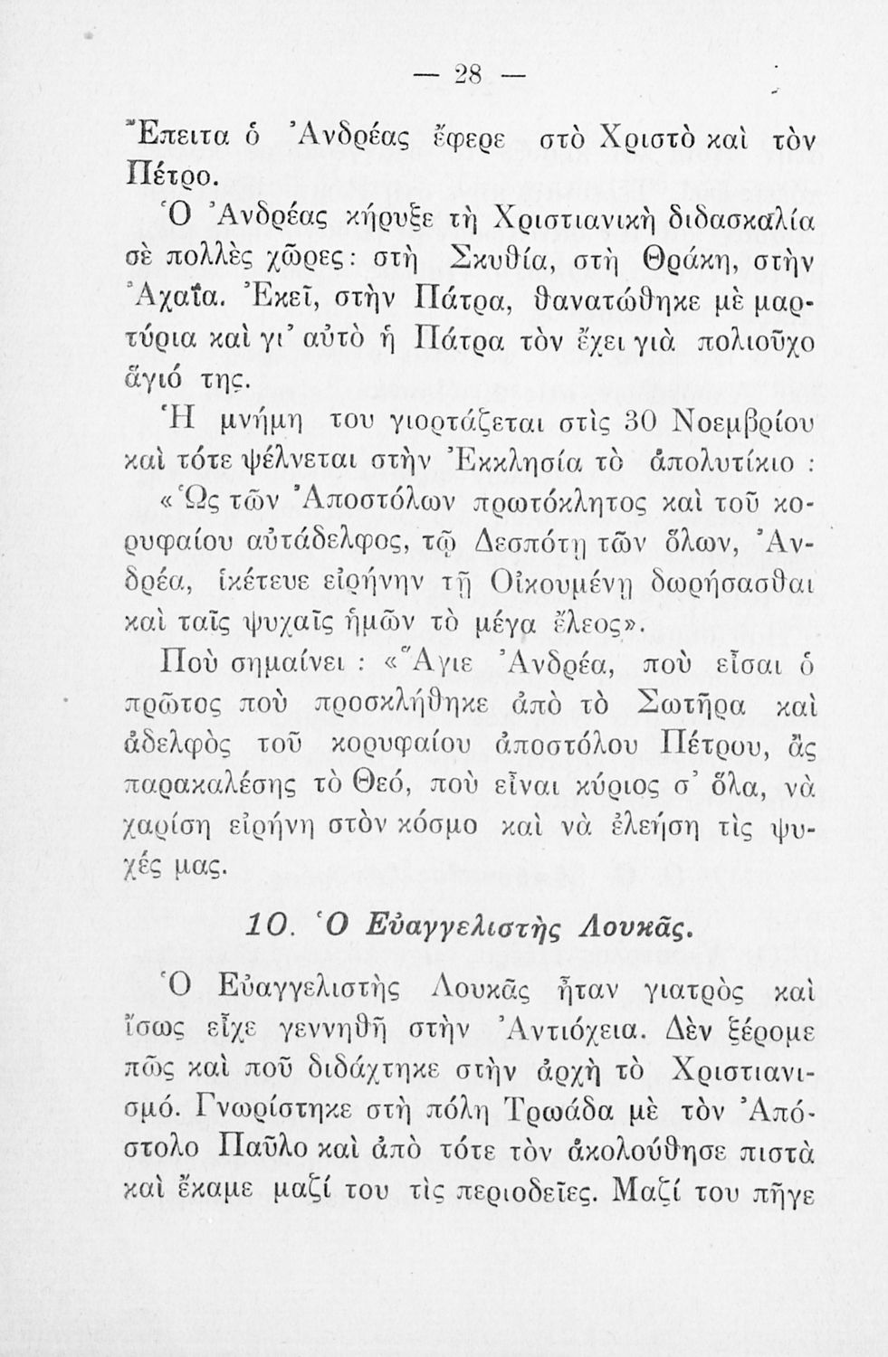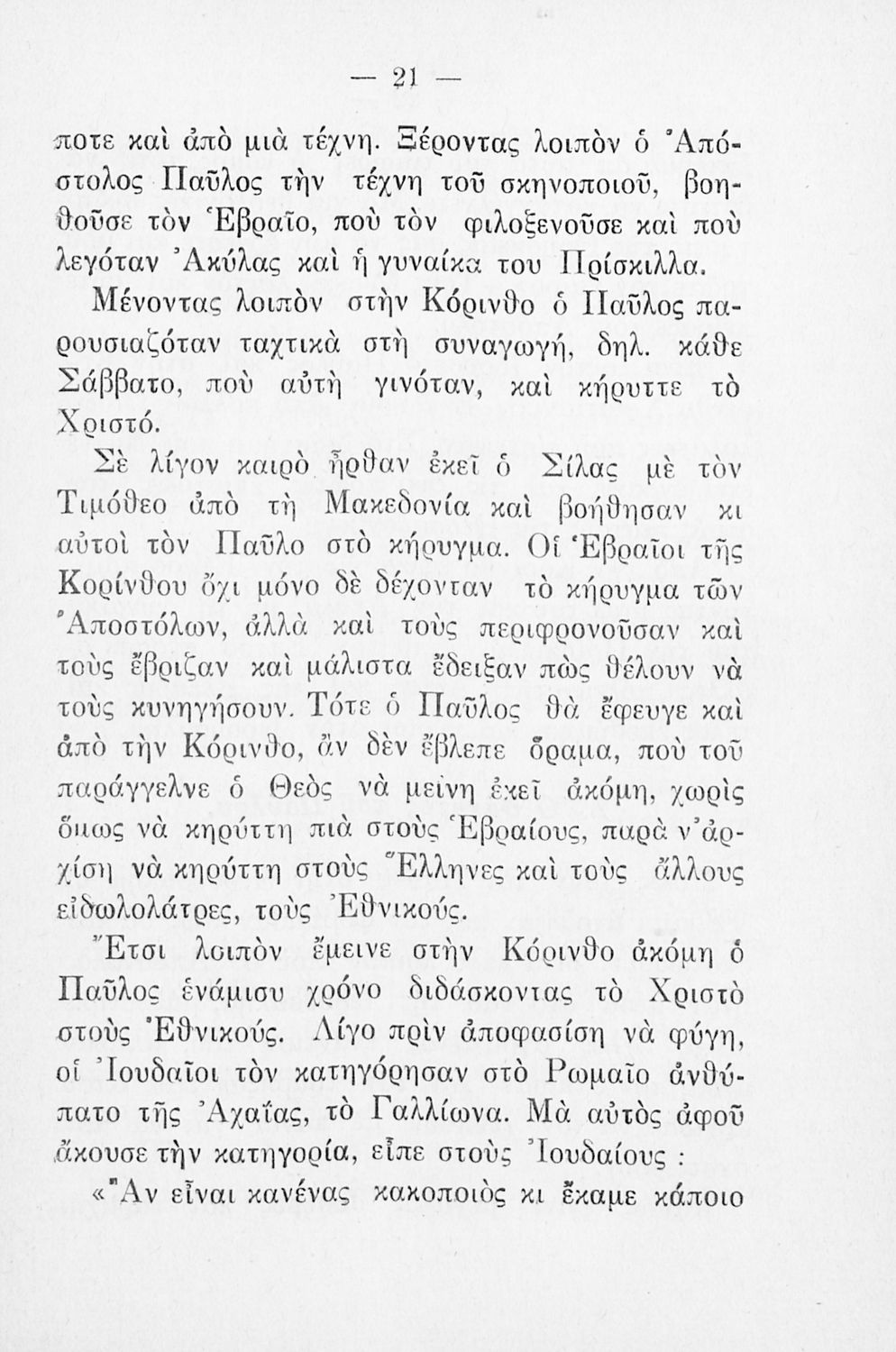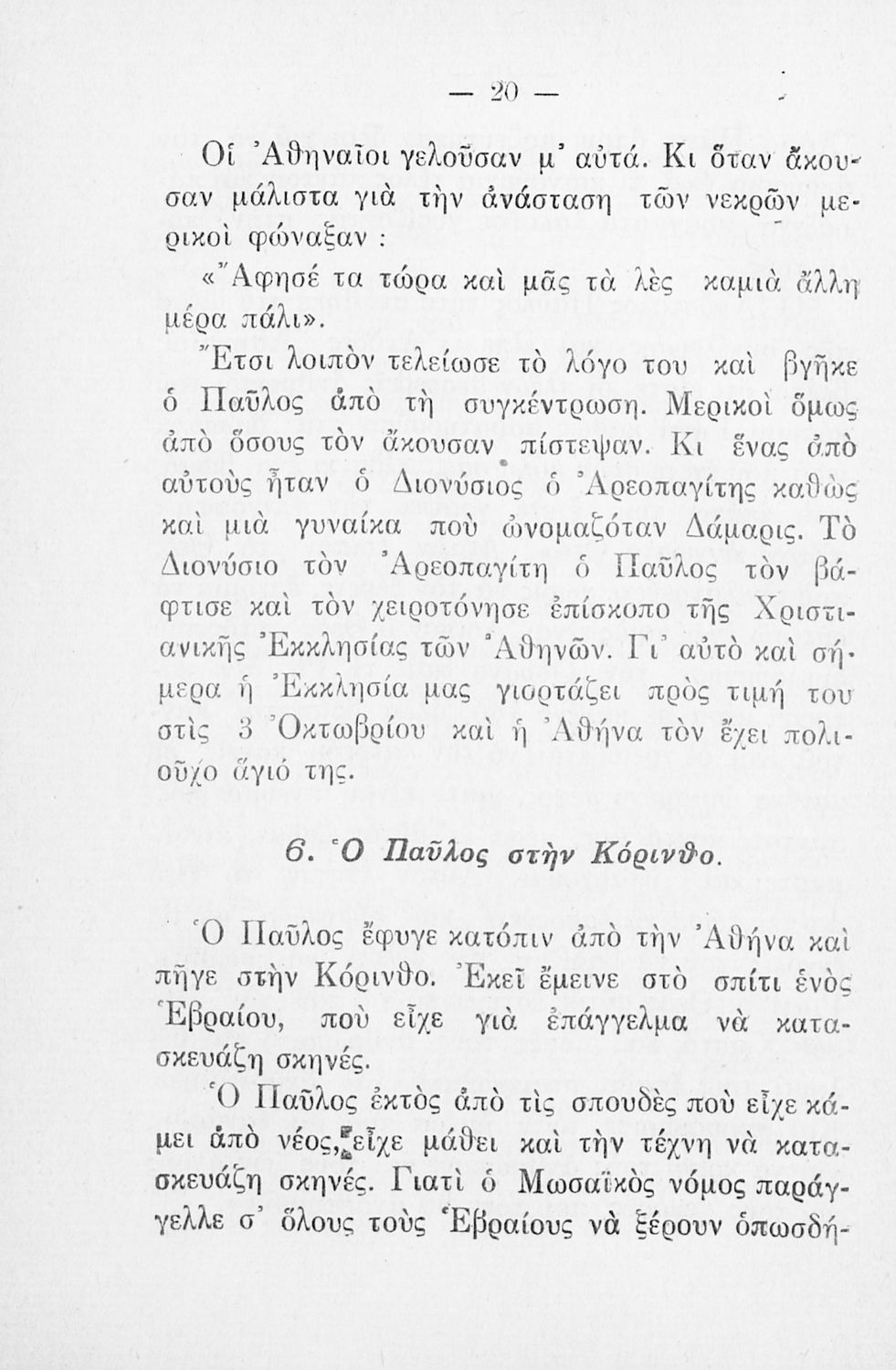 Το σύγγραμμα ήταν σχολικό εγχειρίδιο για το μαθήματα των Θρησκευτικών. Περιγράφει σημαντικά γεγονότα της θρησκευτικής ζωής ξεκινώντας από την Πεντηκοστή. Επίσης, αναφέρεται σε θέματα διοίκησης της εκκλησίας ...