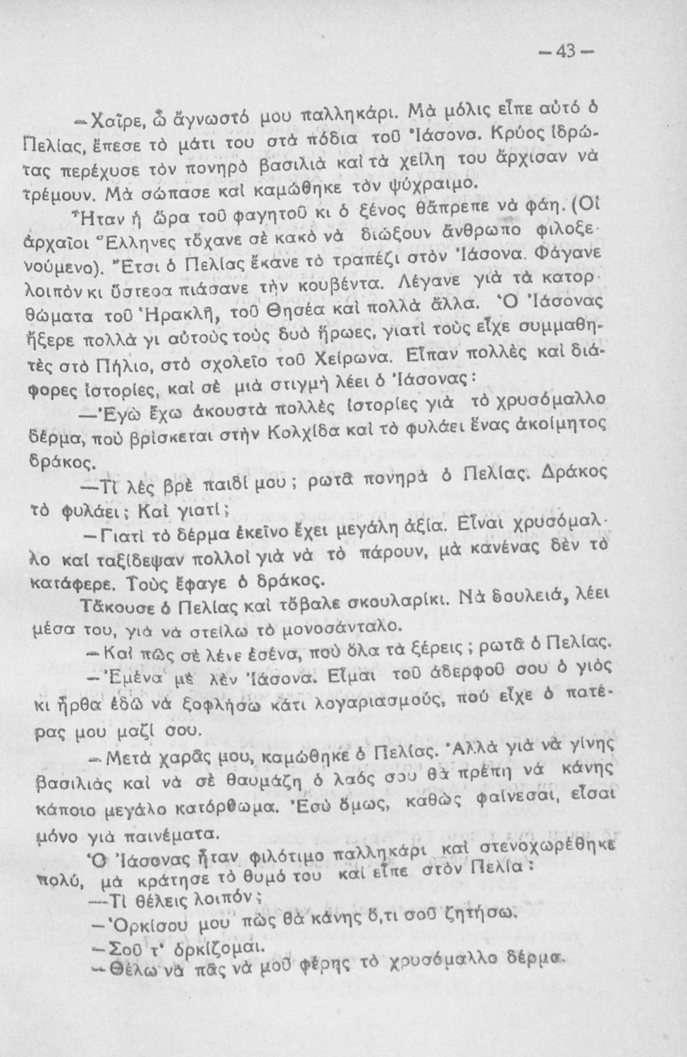 LDR 01140 2200193 4500 035 ## _a03-20561243 040 ## _aΒιβλιοθήκη της Βουλής των Ελλήνων 041 ## _ael 100 ## _aΔ. Χαρτουλάρης _aΚ. Βαβυλουσάκης _aΘ. Κ. Μπάλλας _aΓ. Χειλάς 110 ## _a20561243 245 0# _aΕλληνικά Μυθικά Χρόνια 260 ## _aΧίος _bΝ. Α. Κασσιώτης _c1951 300 ## _a96 _bΕικόνες, σκίτσα ασπρόμαυρα 520 ## _aΜαθητικό βοήθημα Ιστορίας της Γ' Δημοτικού που παρουσιάζει την ελληνική μυθολογία με έμφαση στους άθλους του Ηρακλή, τον Τρωικό πόλεμο και τις περιπέτειες του Οδυσσέα. 522 ## _aΕλλάδα 546 ## _aΔημοτική 563 ## _aΜαλακό Εξώφυλλο 583 ## _c1951 650 #4 _aΔωδεκάθεο _aΕλληνική μυθολογία _aΗρακλής _aΚέρβερος _aΟδυσσέας _aΣειρήνες _aΣκύλα και Χάρυβδη _aΤρωικός Πόλεμος