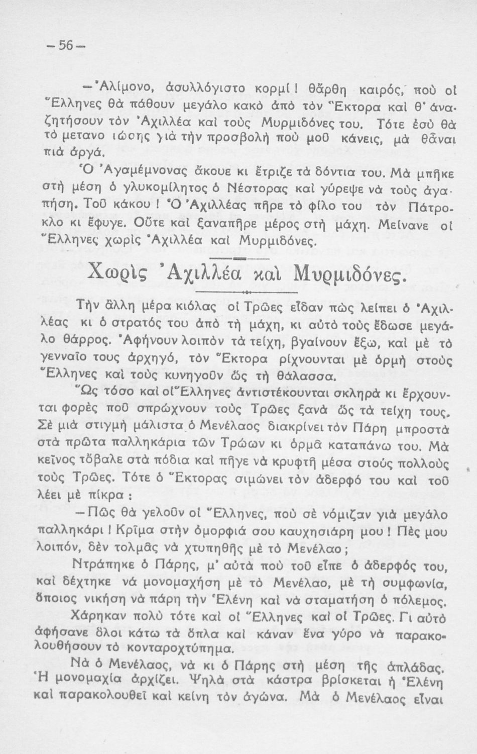 LDR 01140 2200193 4500 035 ## _a03-20561243 040 ## _aΒιβλιοθήκη της Βουλής των Ελλήνων 041 ## _ael 100 ## _aΔ. Χαρτουλάρης _aΚ. Βαβυλουσάκης _aΘ. Κ. Μπάλλας _aΓ. Χειλάς 110 ## _a20561243 245 0# _aΕλληνικά Μυθικά Χρόνια 260 ## _aΧίος _bΝ. Α. Κασσιώτης _c1951 300 ## _a96 _bΕικόνες, σκίτσα ασπρόμαυρα 520 ## _aΜαθητικό βοήθημα Ιστορίας της Γ' Δημοτικού που παρουσιάζει την ελληνική μυθολογία με έμφαση στους άθλους του Ηρακλή, τον Τρωικό πόλεμο και τις περιπέτειες του Οδυσσέα. 522 ## _aΕλλάδα 546 ## _aΔημοτική 563 ## _aΜαλακό Εξώφυλλο 583 ## _c1951 650 #4 _aΔωδεκάθεο _aΕλληνική μυθολογία _aΗρακλής _aΚέρβερος _aΟδυσσέας _aΣειρήνες _aΣκύλα και Χάρυβδη _aΤρωικός Πόλεμος