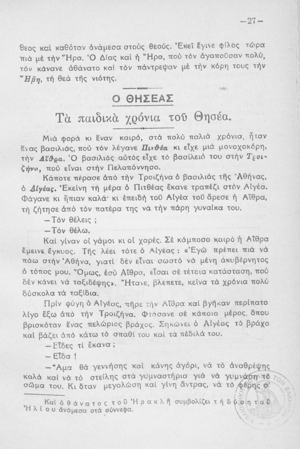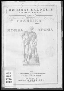 Βαθμίδα εκπαίδευσης: Πρωτοβάθμια Μάθημα: Ιστορία Γλώσσα: Δημοτική Παρουσίαση περιεχομένου: Μαθητικό βοήθημα Ιστορίας της Γ' Δημοτικού που παρουσιάζει την ελληνική μυθολογία με έμφαση στους άθλους του Ηρακλή, τον Τρωικό πόλεμο και τις περιπέτειες του Οδυσσέα. |