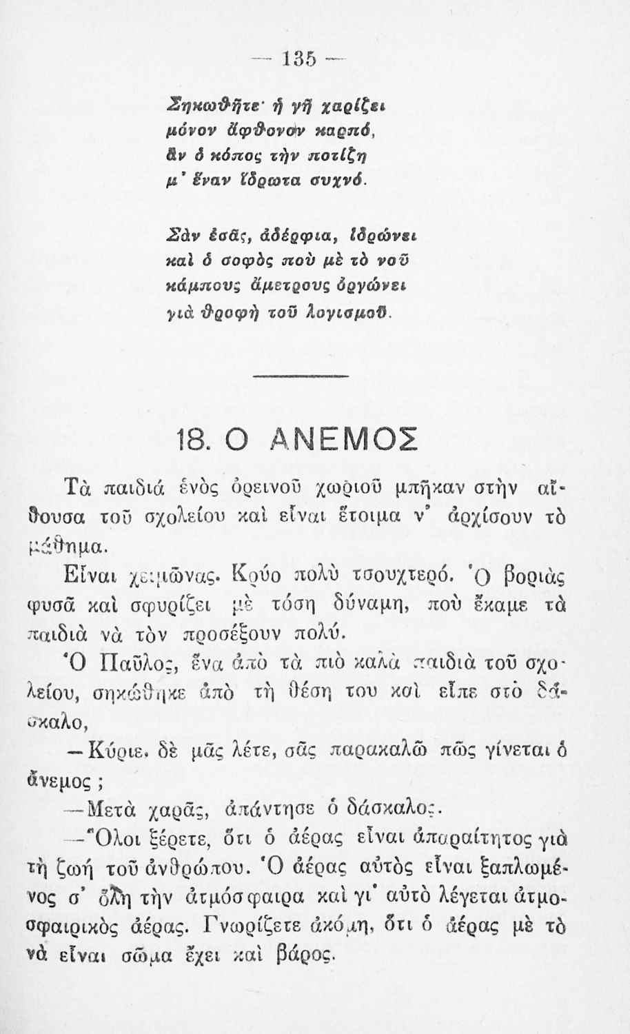 Αναγνωστικό ΣΤ΄ Δημοτικού για το μάθημα της Γλώσσας. Περιέχει πεζά και ποιήματα, με περιεχόμενο πατριωτικό και ηθικοπλαστικό. Η γλώσσα είναι δημοτική και το ύφος είναι απλό. Περιέχει εικόνες, οι οποίες οπτικοποιούν τα κείμενα.
