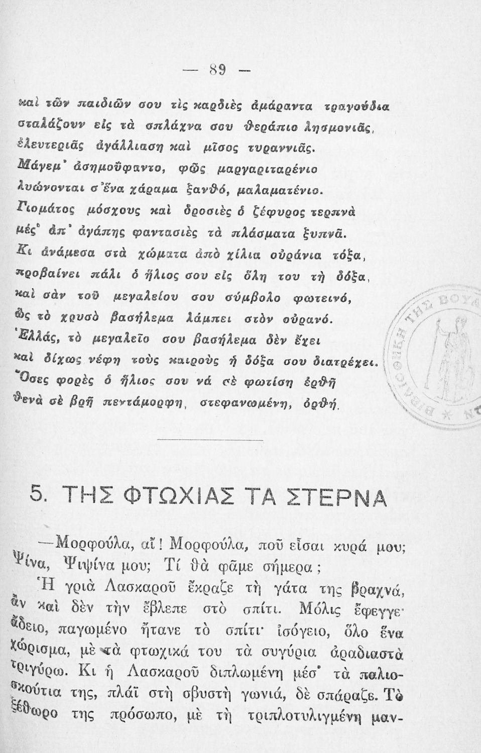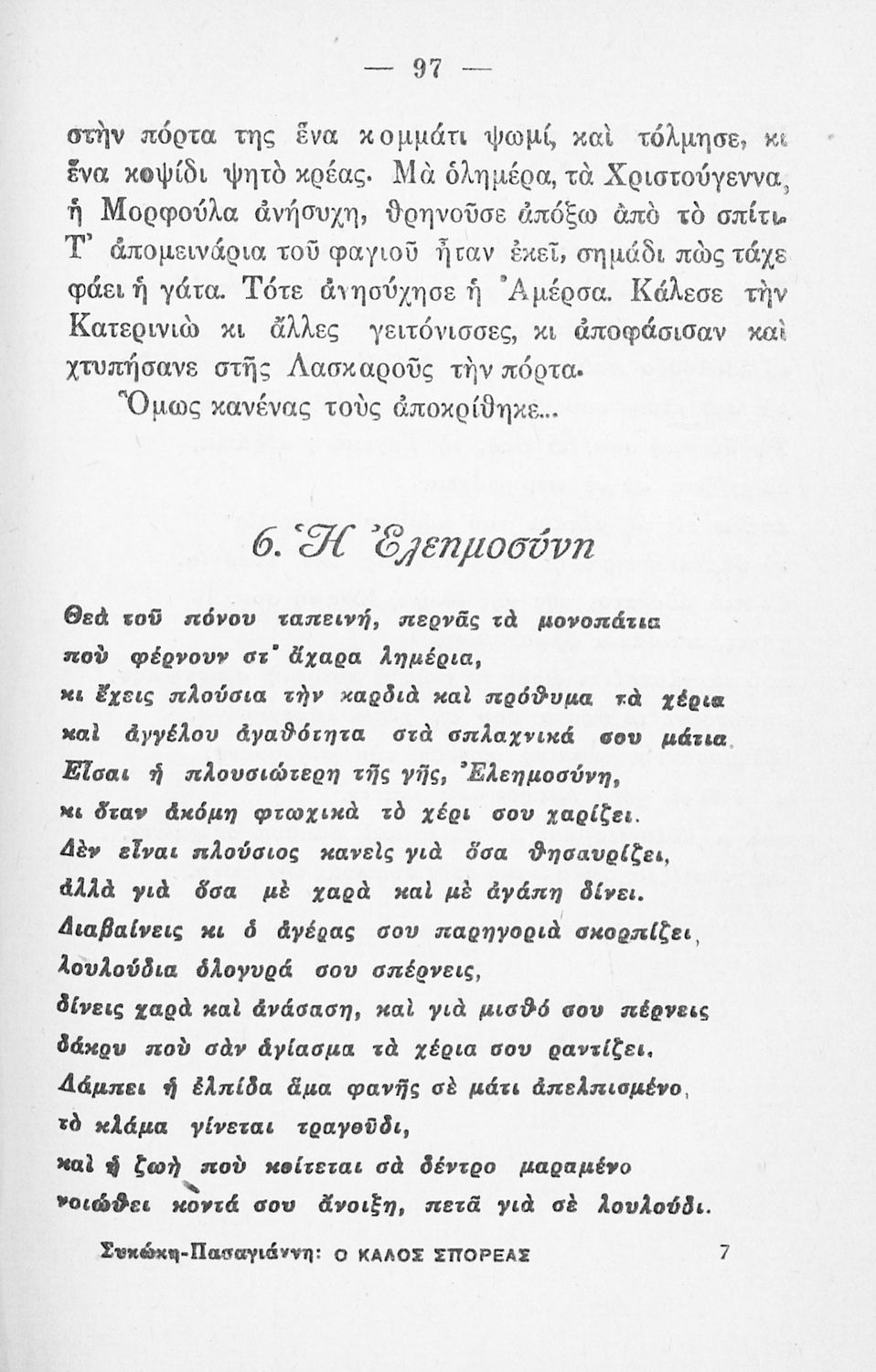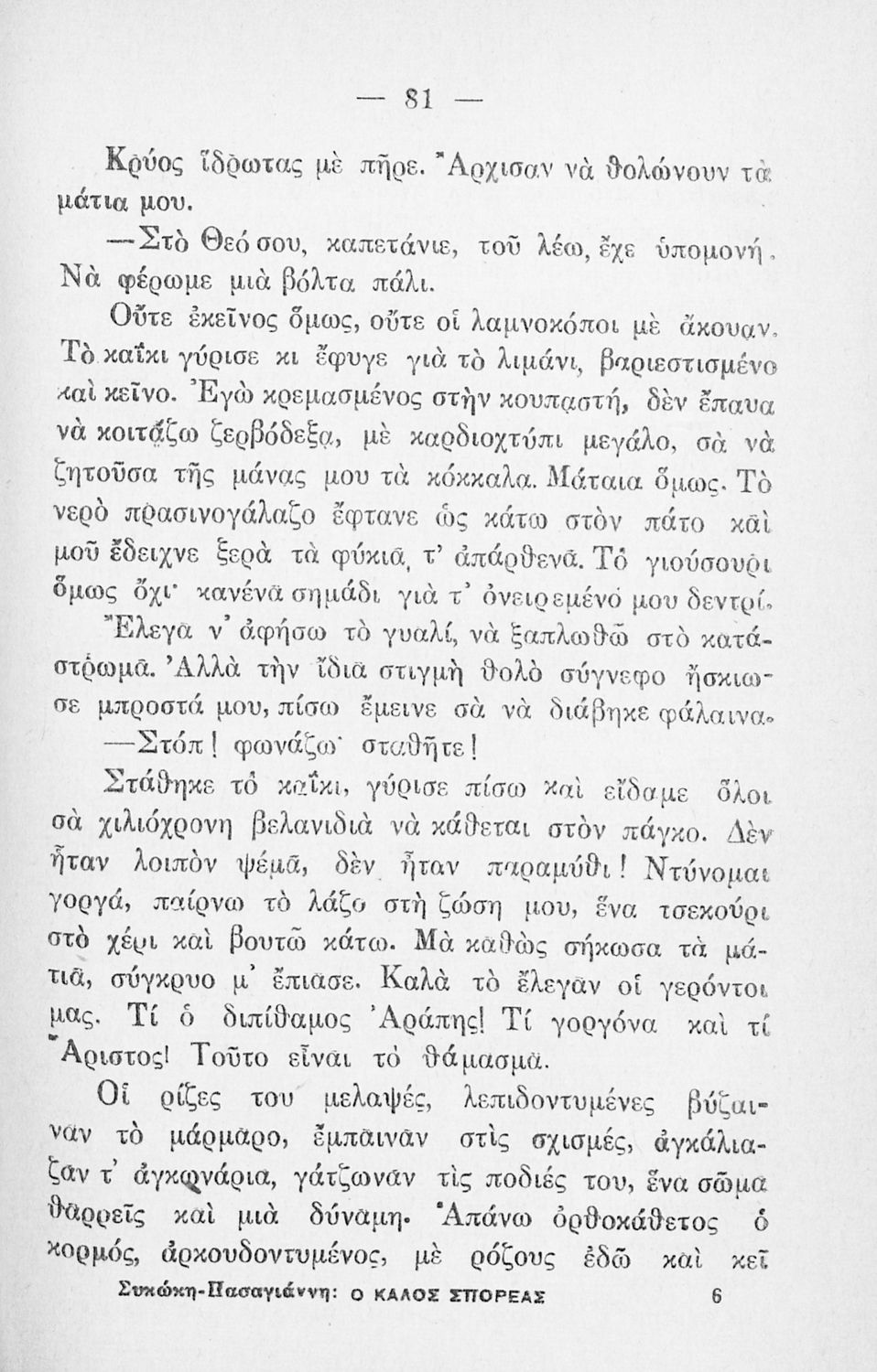 Αναγνωστικό ΣΤ΄ Δημοτικού για το μάθημα της Γλώσσας. Περιέχει πεζά και ποιήματα, με περιεχόμενο πατριωτικό και ηθικοπλαστικό. Η γλώσσα είναι δημοτική και το ύφος είναι απλό. Περιέχει εικόνες, οι οποίες οπτικοποιούν τα κείμενα.