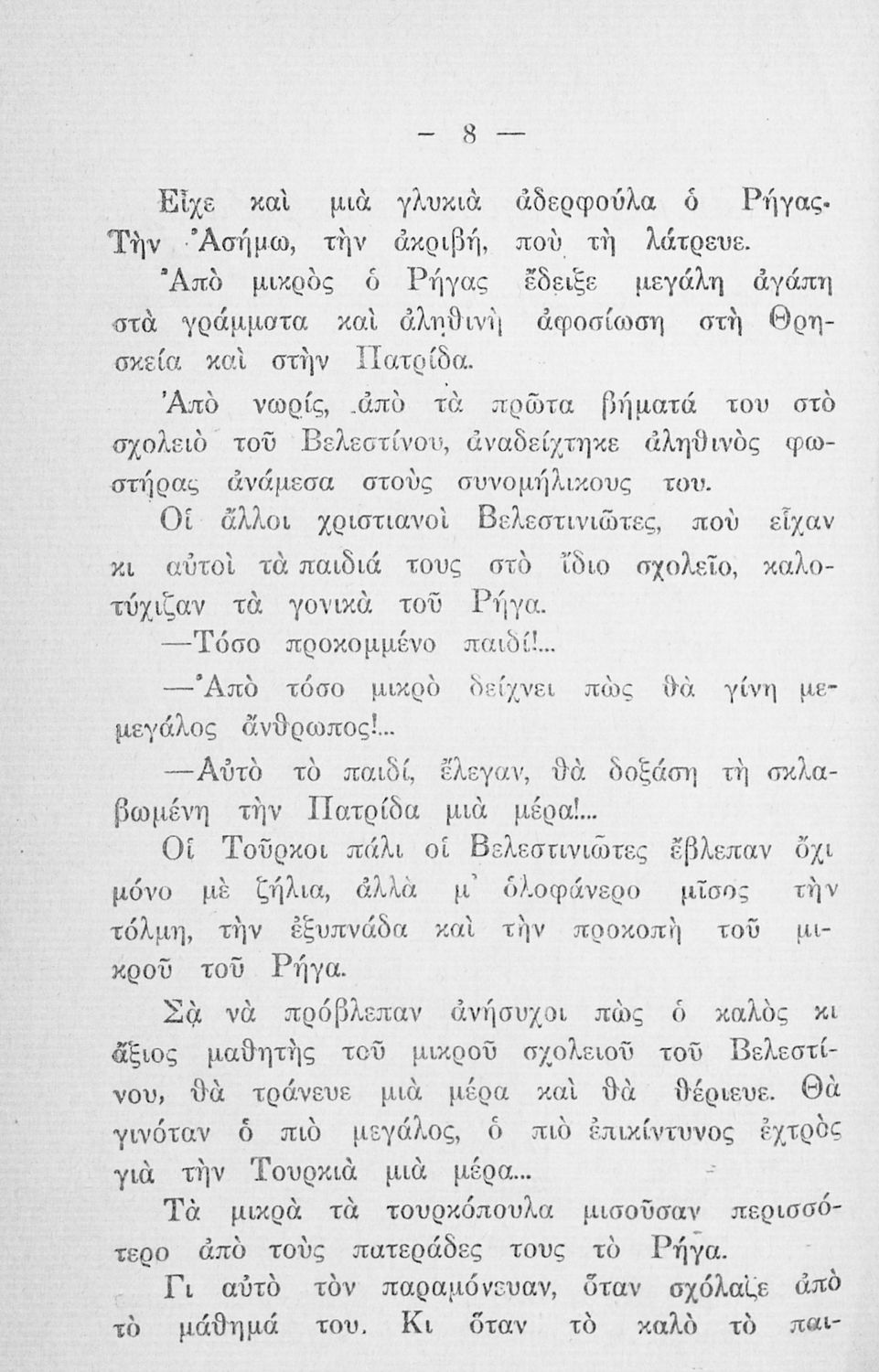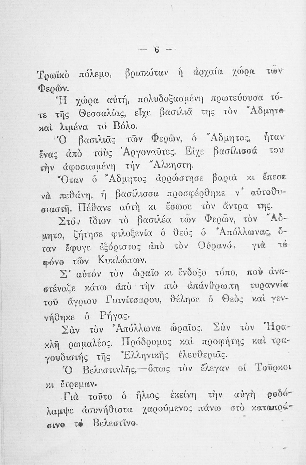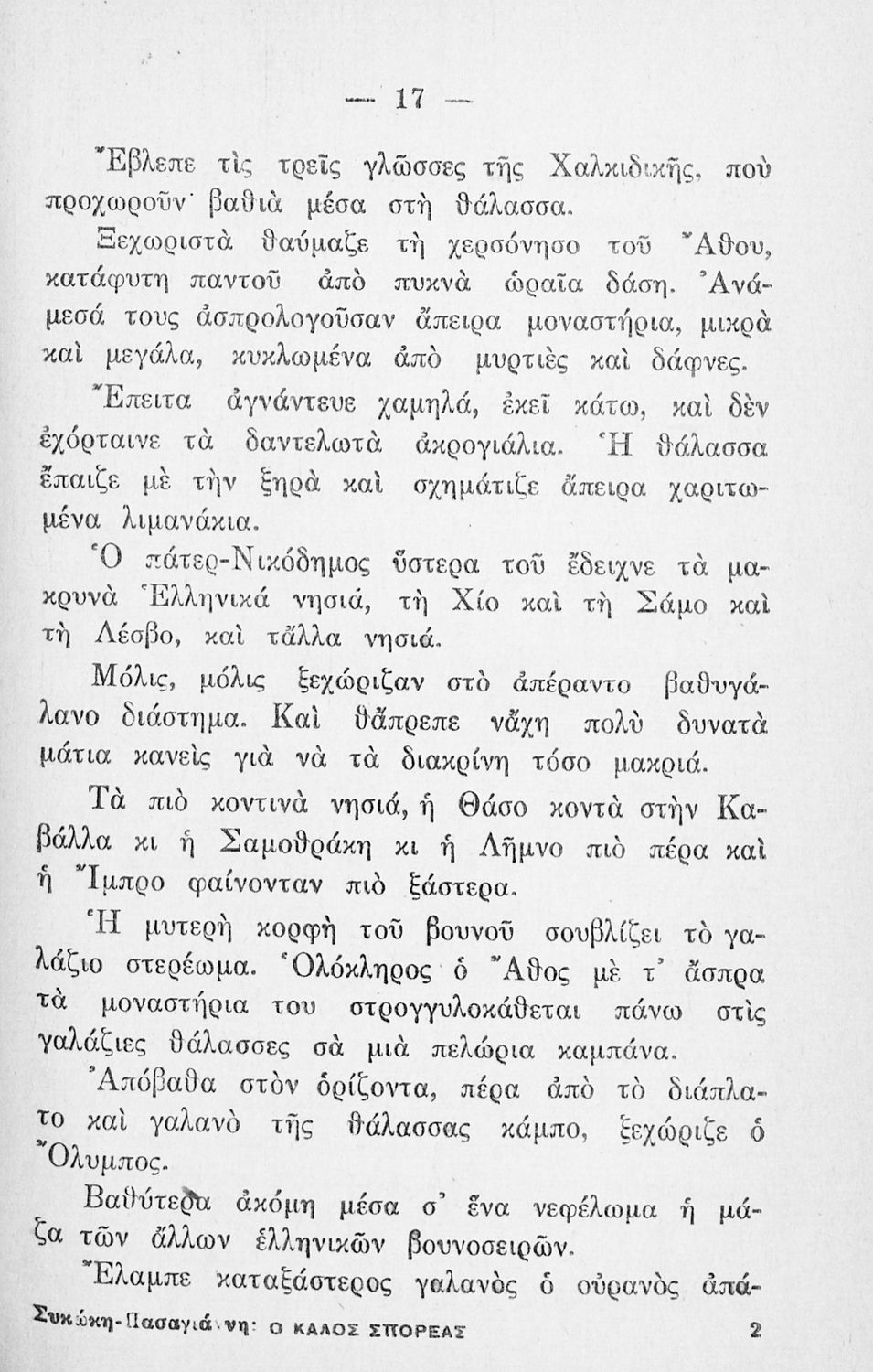 Αναγνωστικό ΣΤ΄ Δημοτικού για το μάθημα της Γλώσσας. Περιέχει πεζά και ποιήματα, με περιεχόμενο πατριωτικό και ηθικοπλαστικό. Η γλώσσα είναι δημοτική και το ύφος είναι απλό. Περιέχει εικόνες, οι οποίες οπτικοποιούν τα κείμενα.