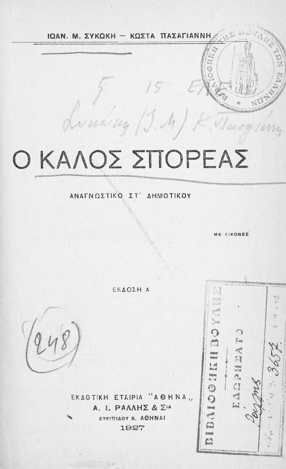 Εκδότης: Α.Ι. Ράλλης Έτος έκδοσης: 1927 Τόπος έκδοσης: Αθήνα Έκδοση: 1η |