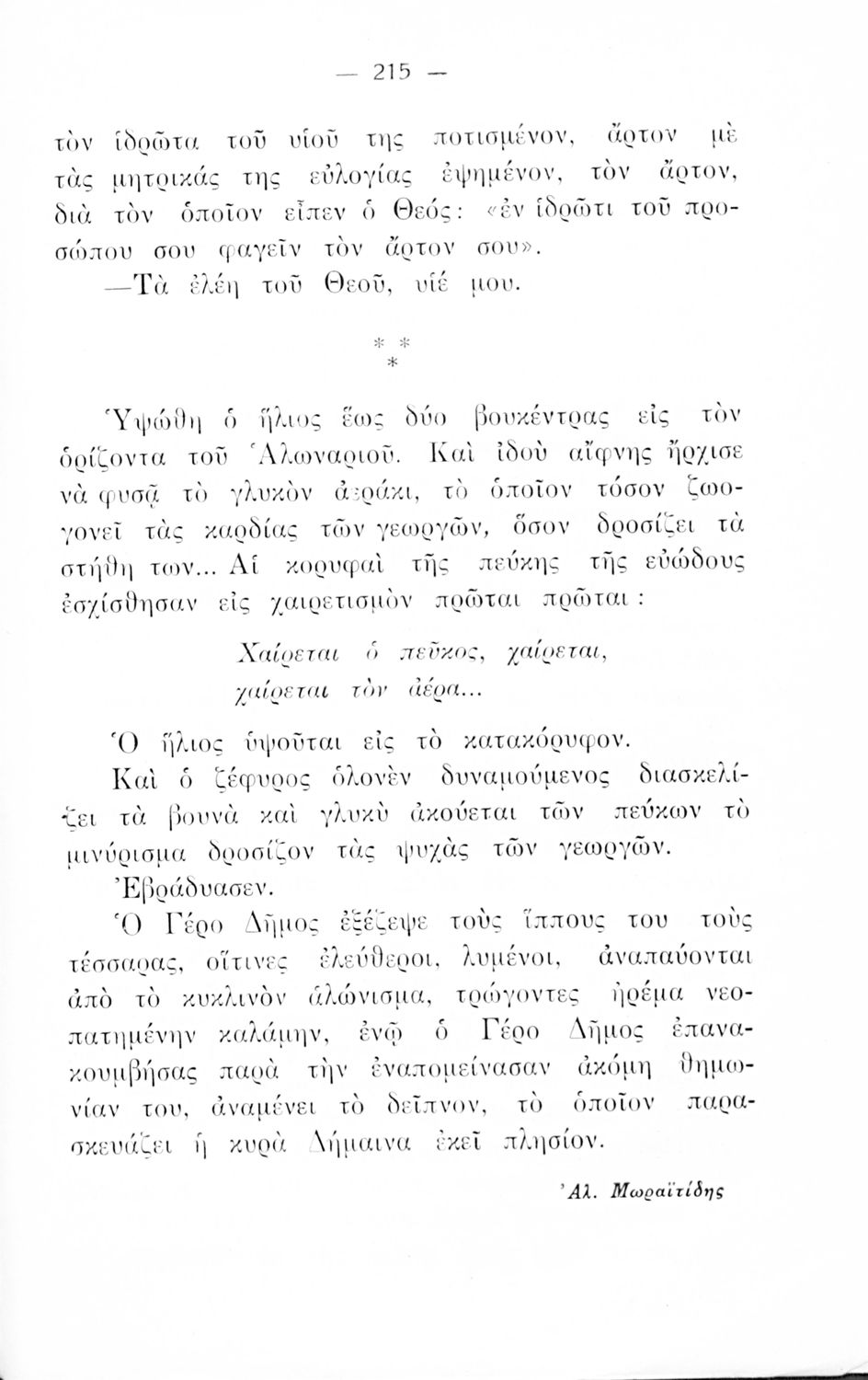 Αναγνωστικό Δ' Δημοτικού που περιέχει πεζά και κείμενα εμπνευσμένα από ιστορικά γεγονότα, τη θρησκευτική και κοινωνική ζωή και τη φύση. Ο συγγραφέας ήταν δάσκαλος.