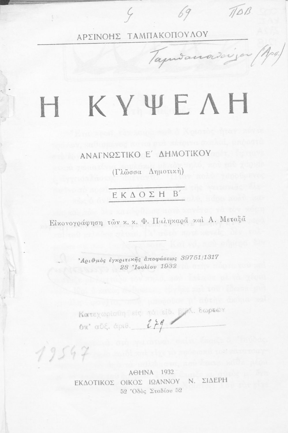 Εικονογράφος: Φ. Παληκαράς, Α. Μεταξάς