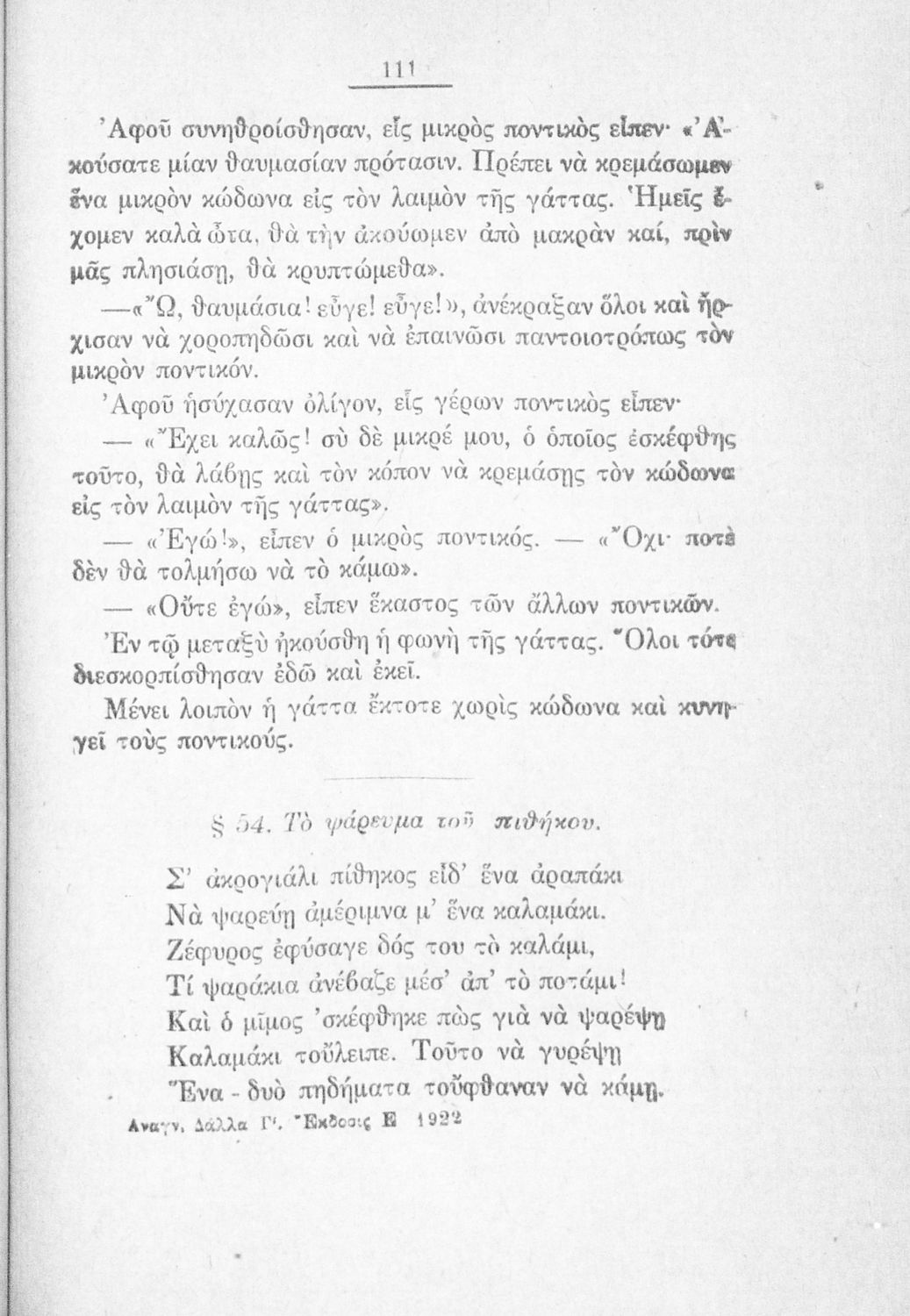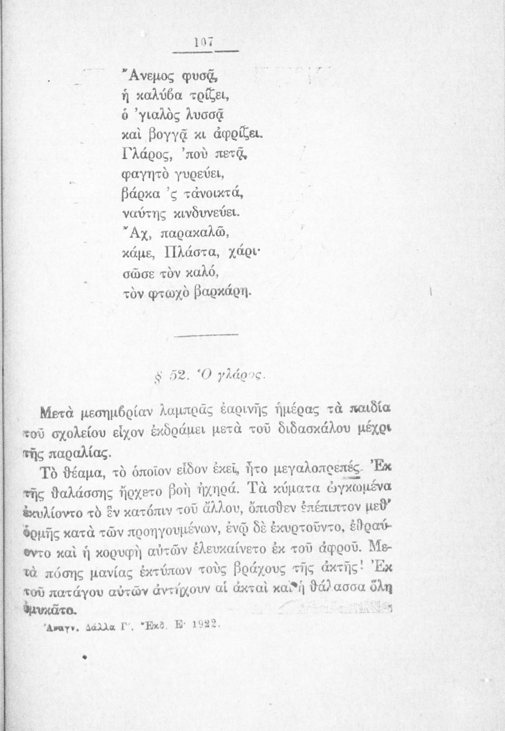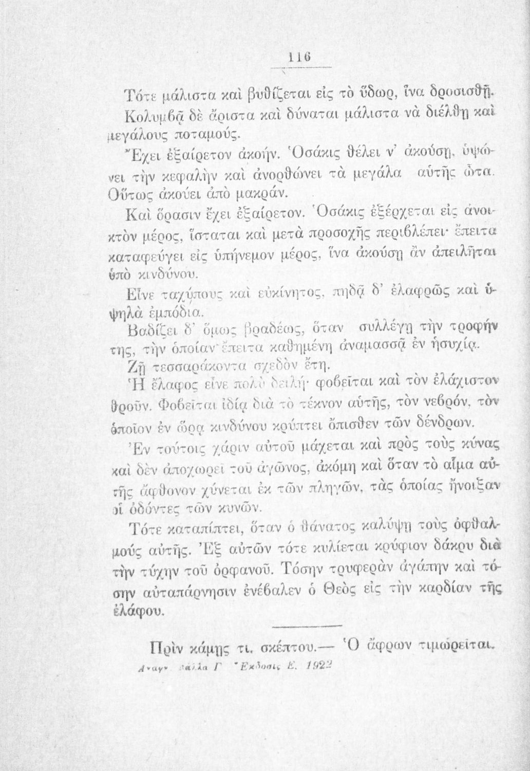 Αναγνωστικό του Δημοτικού. Περιέχει κείμενα της Γαλάτειας Καζαντζάκη. Στο τέλος του βιβλίου υπάρχουν καλλιγραφικά υποδείγματα από το Αναγνωσματάριο του Δημοσθένη Ανδρεάδη.