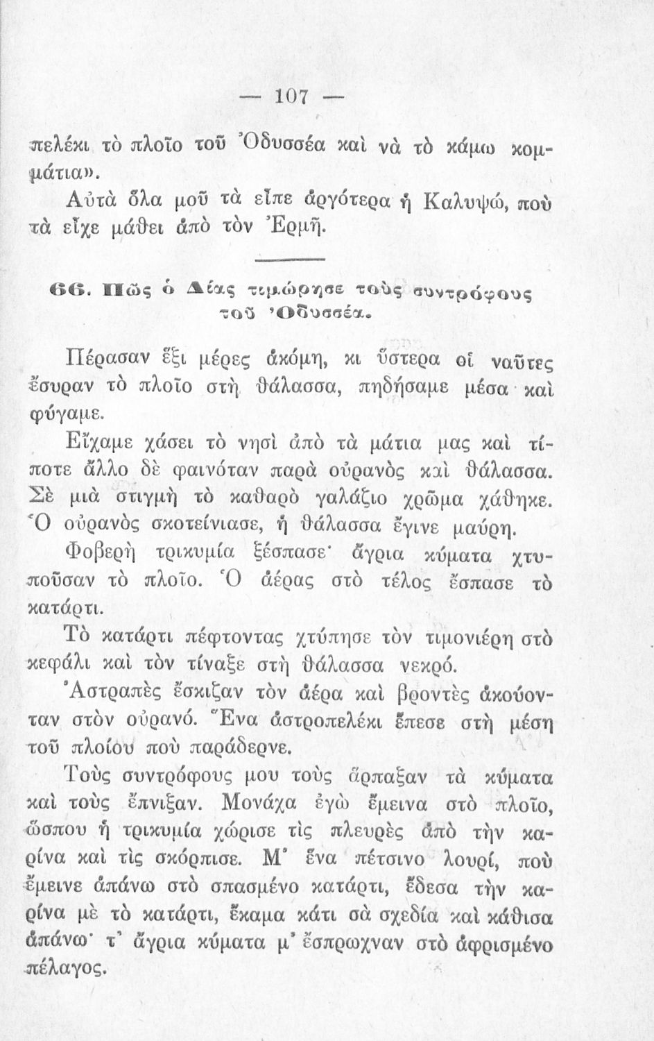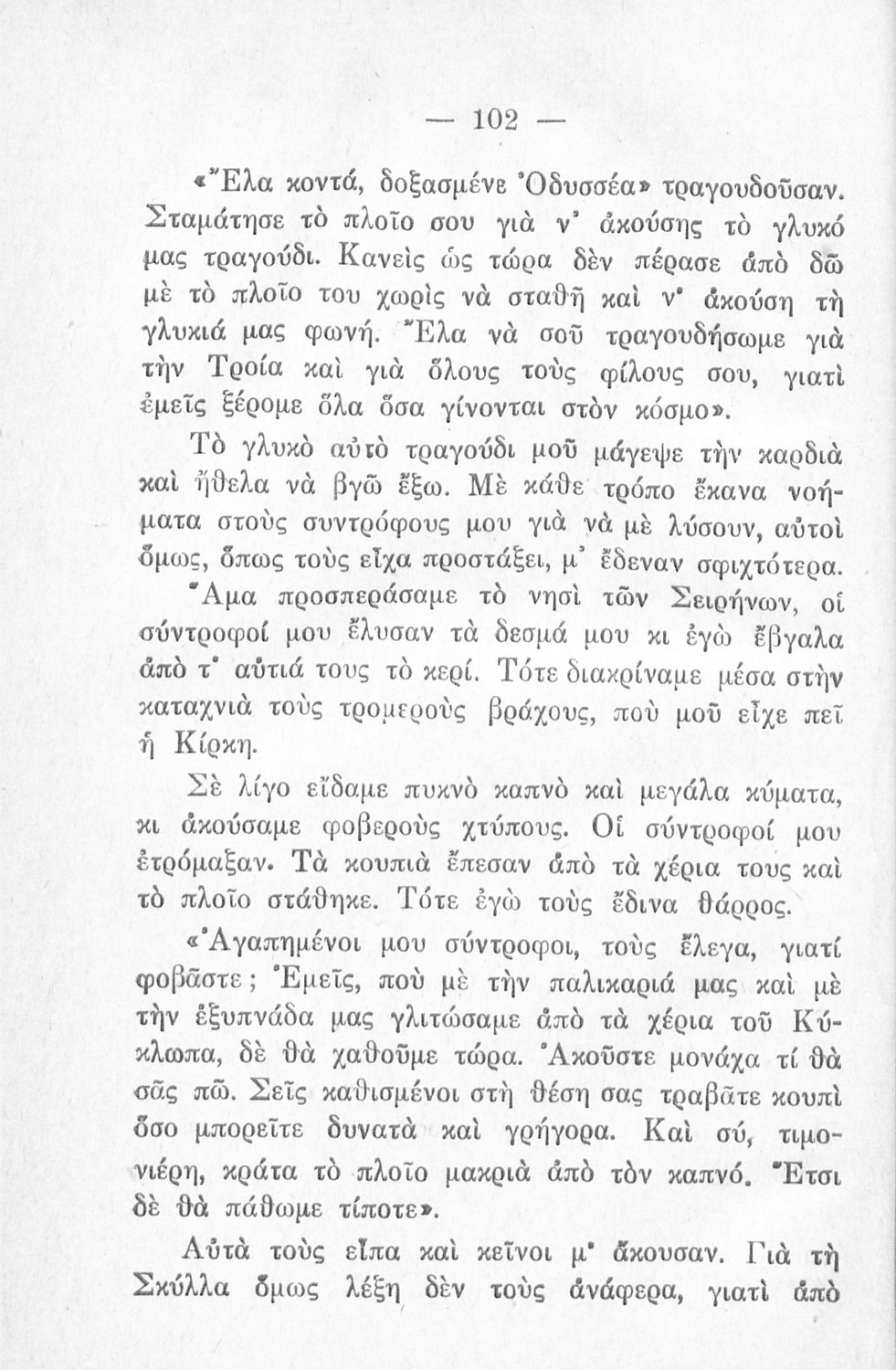 Αναγνωστικό Γ' Δημοτικού που εξιστορεί τις περιπέτειες του Οδυσσέα. Περιέχει παράρτημα με ποιήματα εμπνευσμένα από τον εθνικό, θρησκευτικό και κοινωνικό βίο, τα επαγγέλματα και τις καθημερινές ασχολίες, την αγάπη για την φύση και το περιβάλλον.