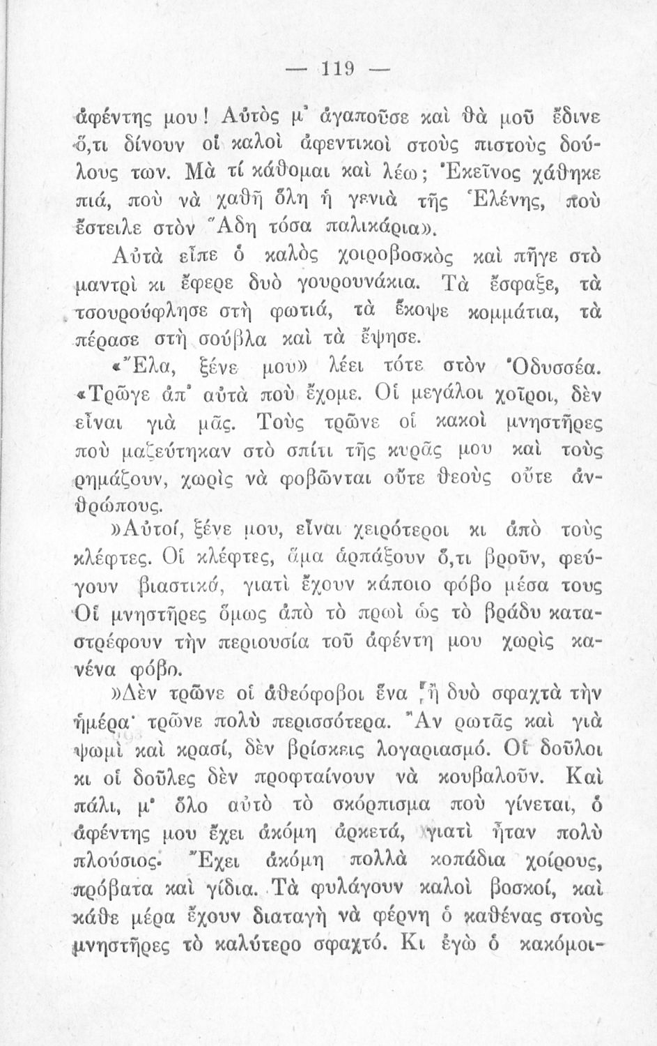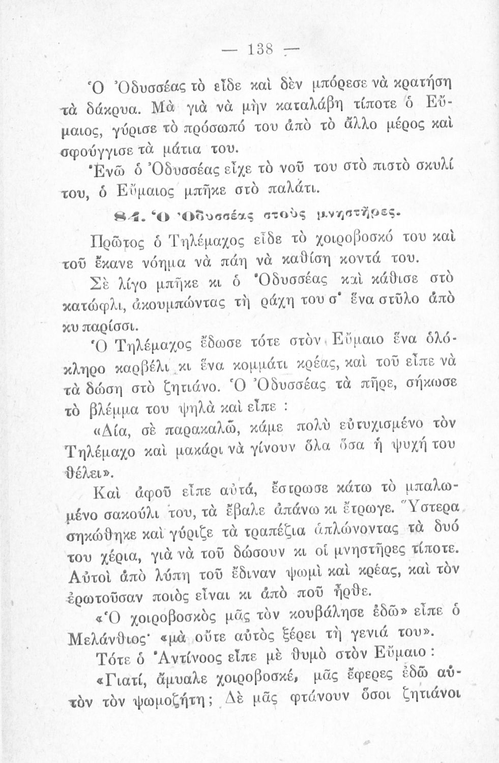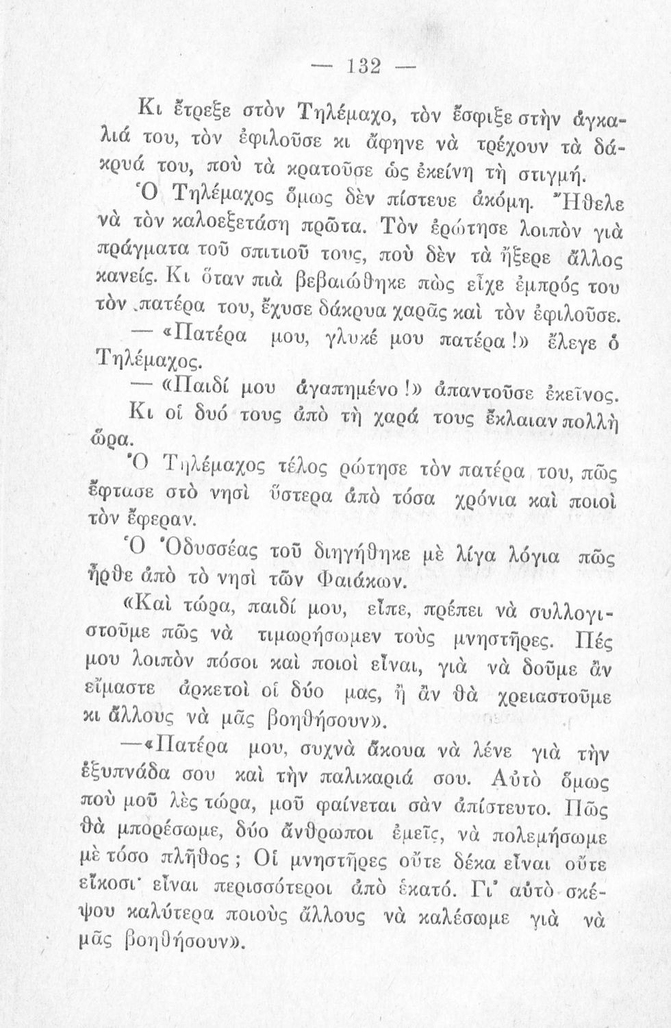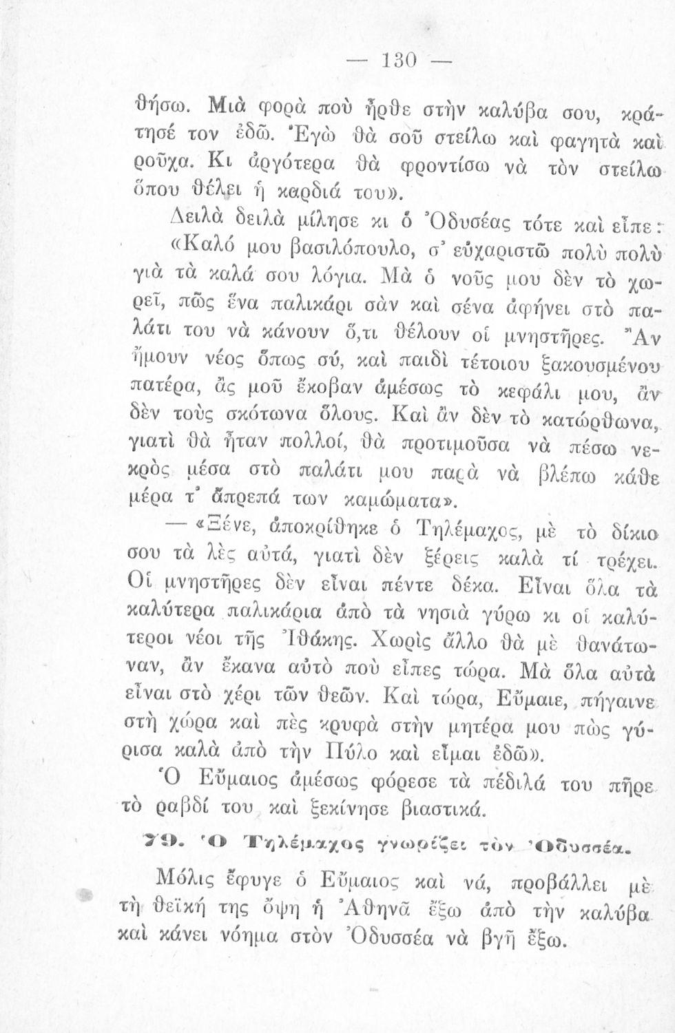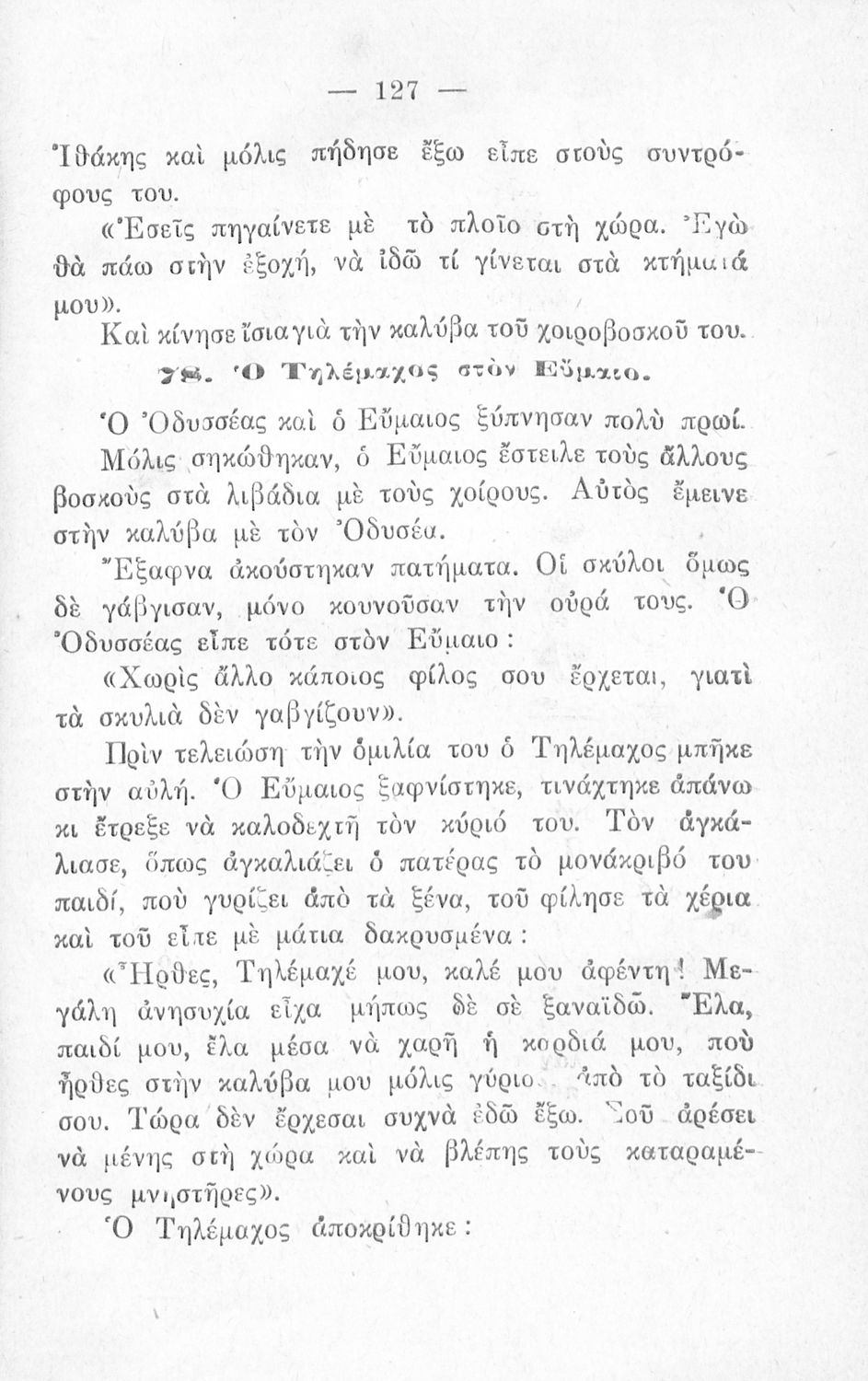 Βαθμίδα εκπαίδευσης: Πρωτοβάθμια Τάξη: Γ' Δημοτικού Μάθημα: Νέα Ελληνικά Γλώσσα: Απλή καθαρεύουσα Παρουσίαση περιεχομένου: Αναγνωστικό Γ' Δημοτικού που εξιστορεί τις περιπέτειες του Οδυσσέα. Περιέχει παράρτημα με ποιήματα εμπνευσμένα από τον εθνικό, θρησκευτικό και κοινωνικό βίο, τα επαγγέλματα και τις καθημερινές ασχολίες, την αγάπη για την φύση και το περιβάλλον. |