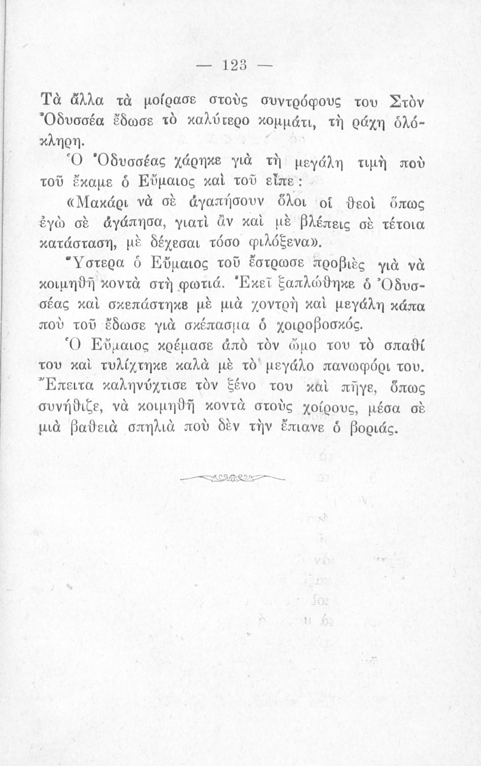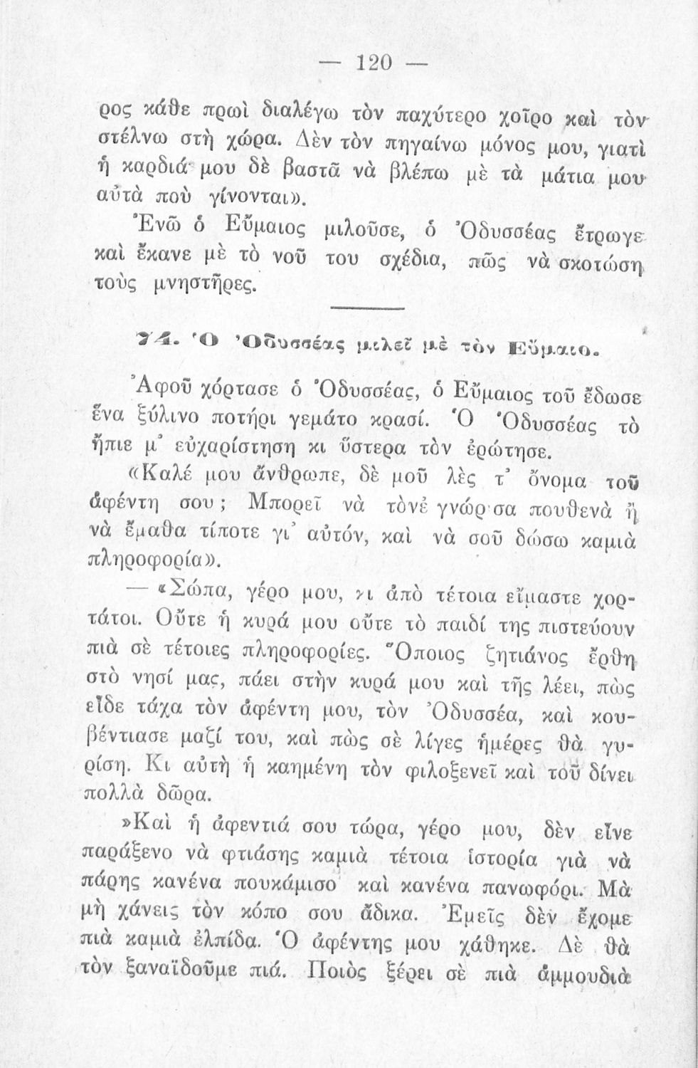 520 ## _aΑναγνωστικό Γ' Δημοτικού που εξιστορεί τις περιπέτειες του Οδυσσέα. Περιέχει παράρτημα με ποιήματα εμπνευσμένα από τον εθνικό, θρησκευτικό και κοινωνικό βίο, τα επαγγέλματα και τις καθημερινές ασχολίες, την αγάπη για την φύση και το περιβάλλον.
