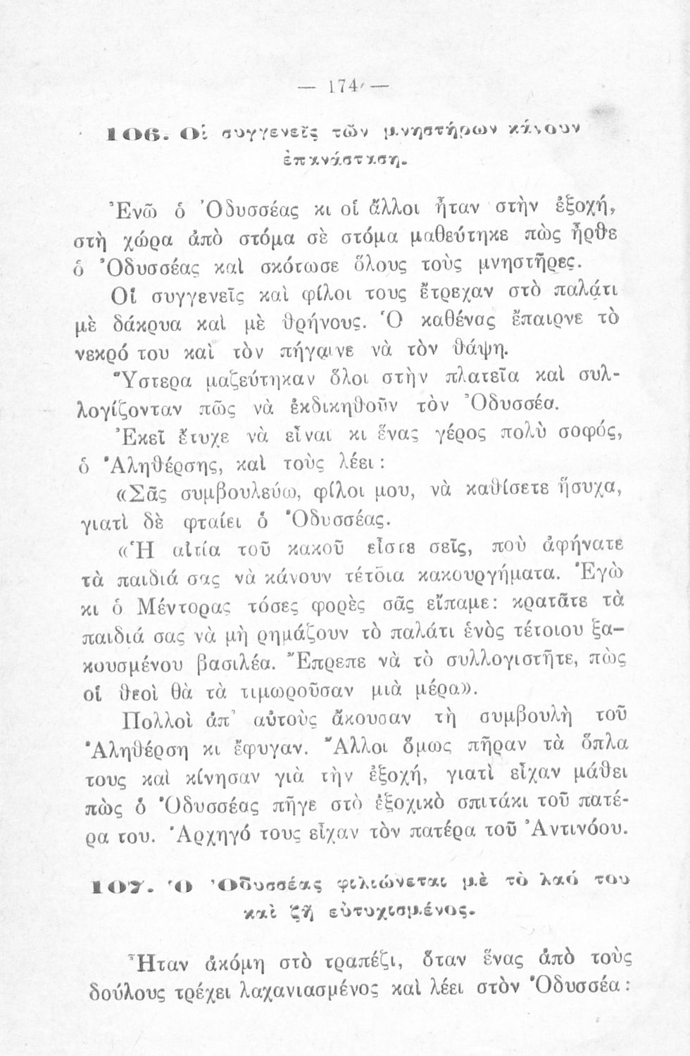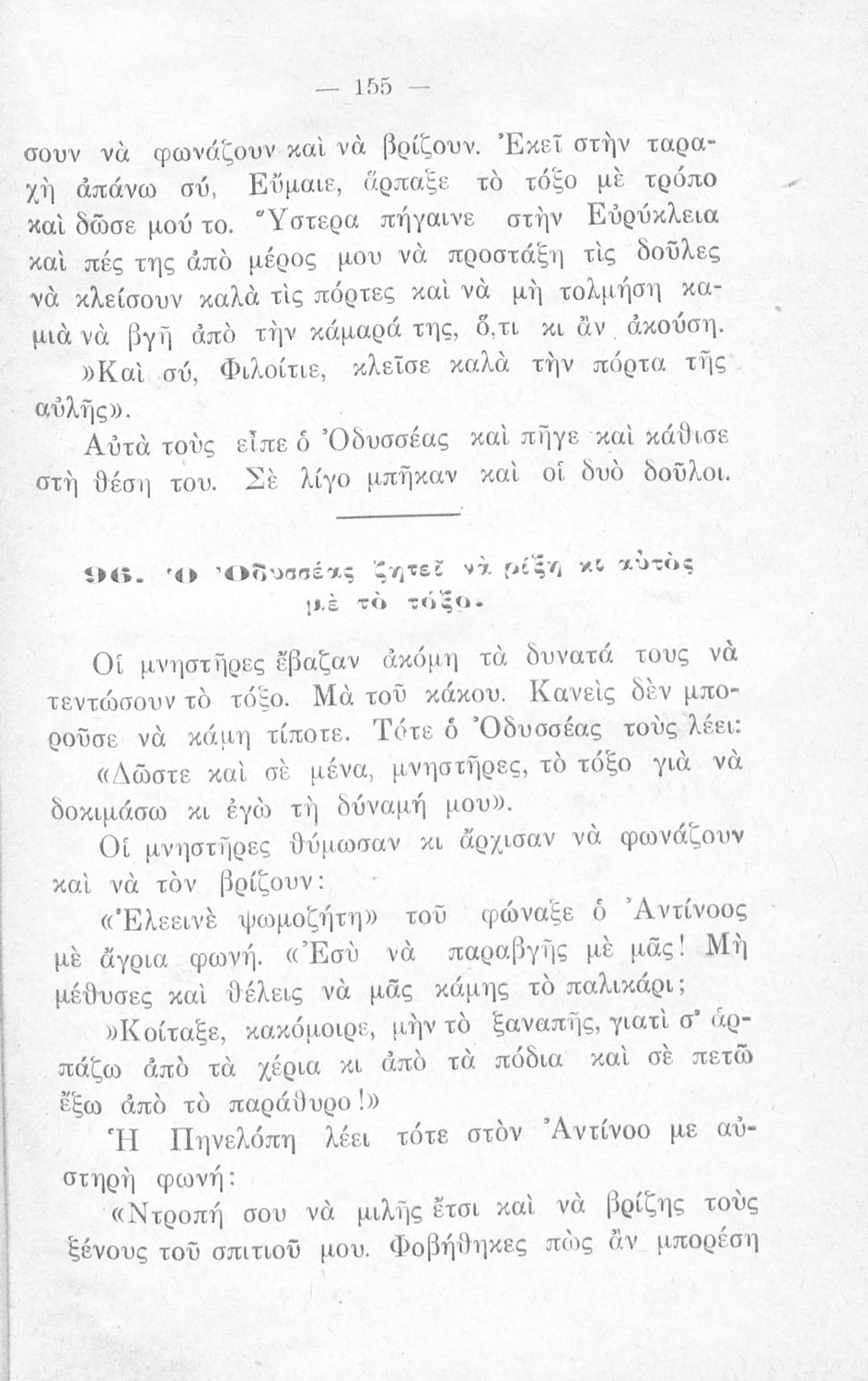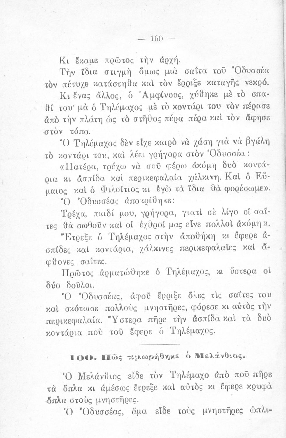 Βαθμίδα εκπαίδευσης: Πρωτοβάθμια Τάξη: Γ' Δημοτικού Μάθημα: Νέα Ελληνικά Γλώσσα: Απλή καθαρεύουσα Παρουσίαση περιεχομένου: Αναγνωστικό Γ' Δημοτικού που εξιστορεί τις περιπέτειες του Οδυσσέα. Περιέχει παράρτημα με ποιήματα εμπνευσμένα από τον εθνικό, θρησκευτικό και κοινωνικό βίο, τα επαγγέλματα και τις καθημερινές ασχολίες, την αγάπη για την φύση και το περιβάλλον. |