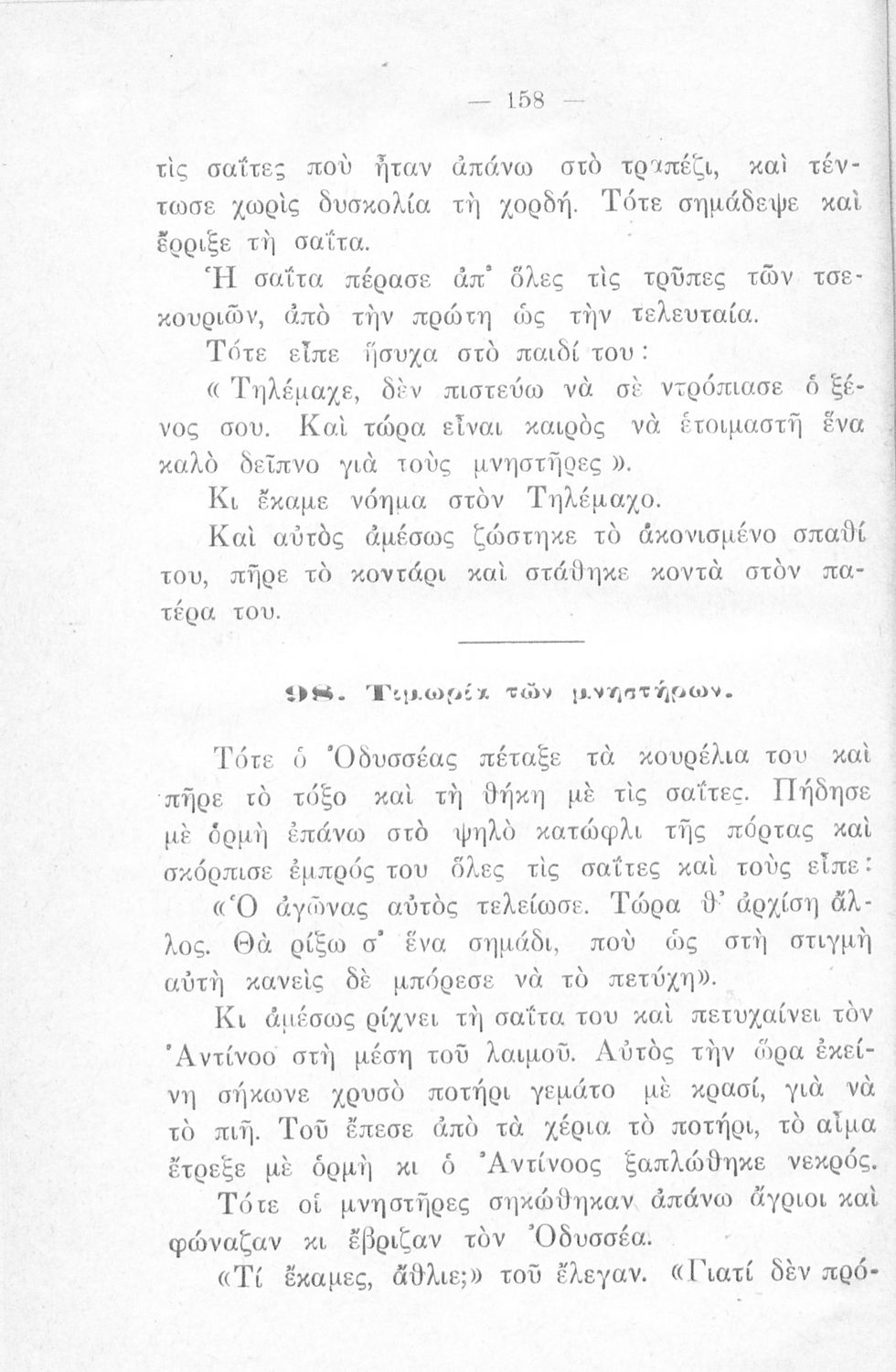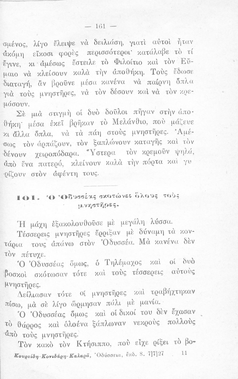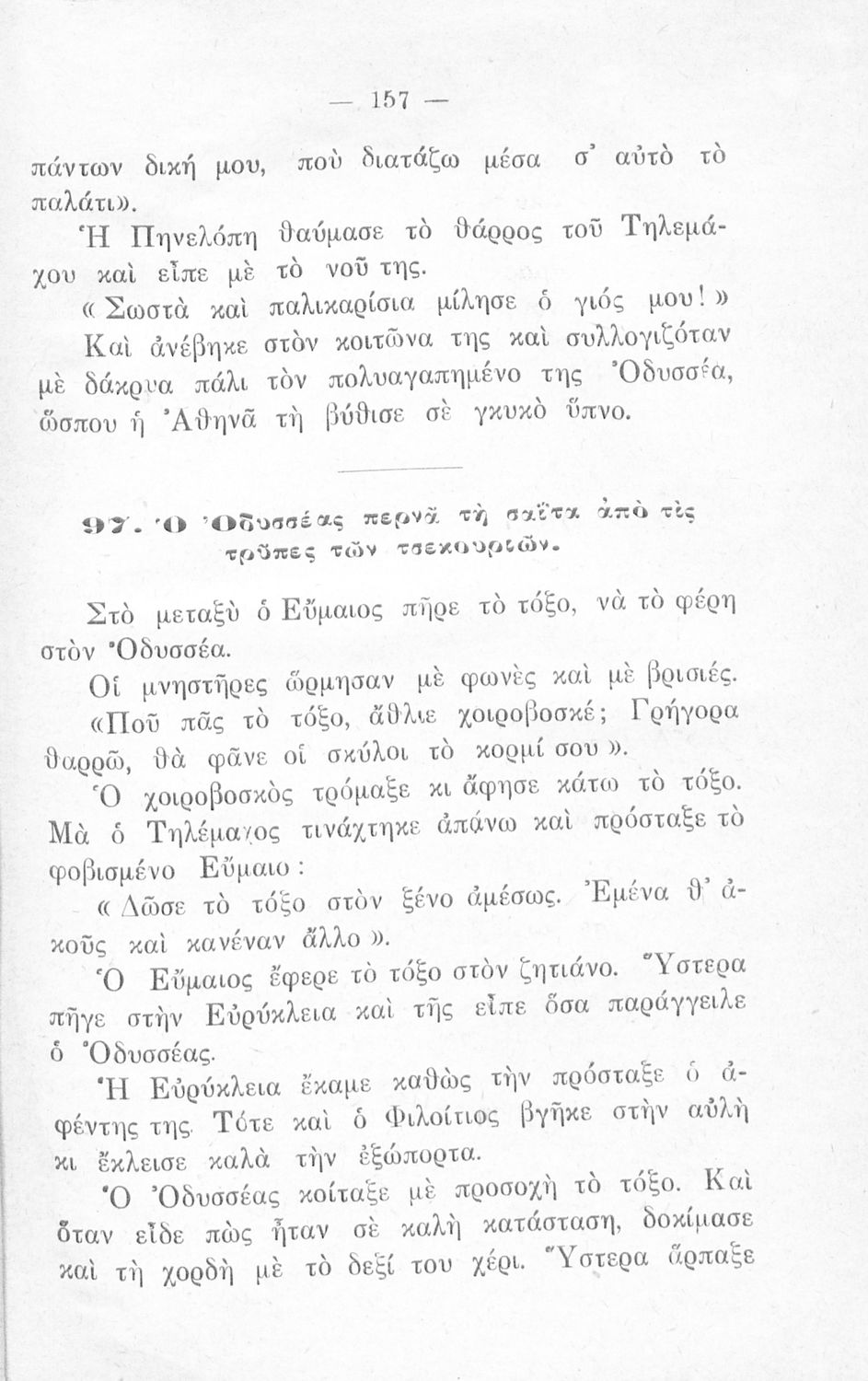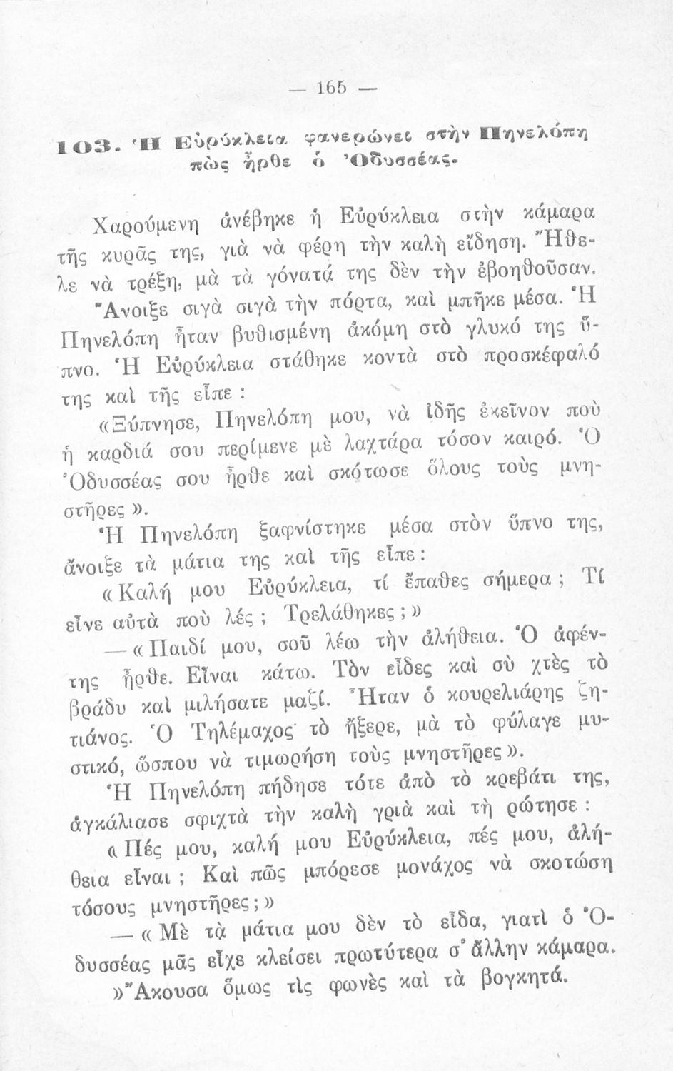 Βαθμίδα εκπαίδευσης: Πρωτοβάθμια Τάξη: Γ' Δημοτικού Μάθημα: Νέα Ελληνικά Γλώσσα: Απλή καθαρεύουσα Παρουσίαση περιεχομένου: Αναγνωστικό Γ' Δημοτικού που εξιστορεί τις περιπέτειες του Οδυσσέα. Περιέχει παράρτημα με ποιήματα εμπνευσμένα από τον εθνικό, θρησκευτικό και κοινωνικό βίο, τα επαγγέλματα και τις καθημερινές ασχολίες, την αγάπη για την φύση και το περιβάλλον. |