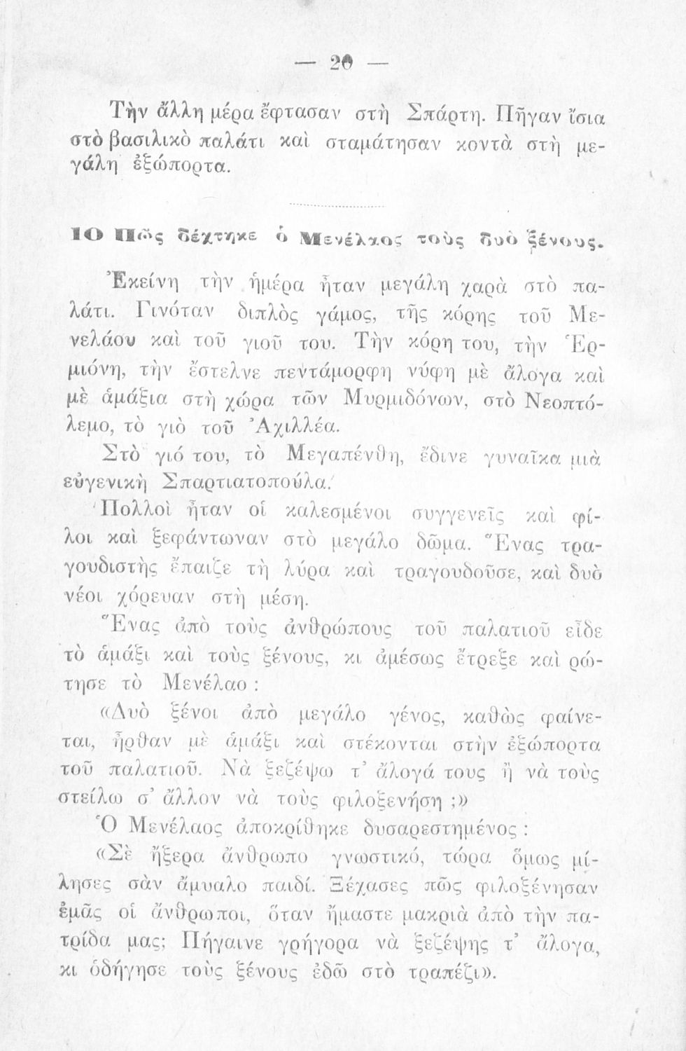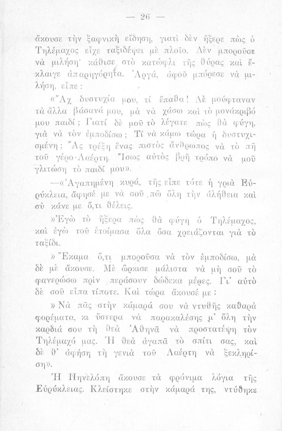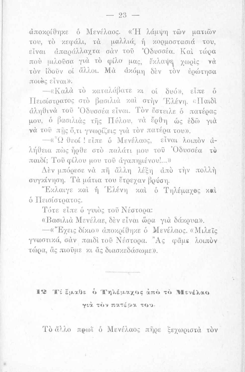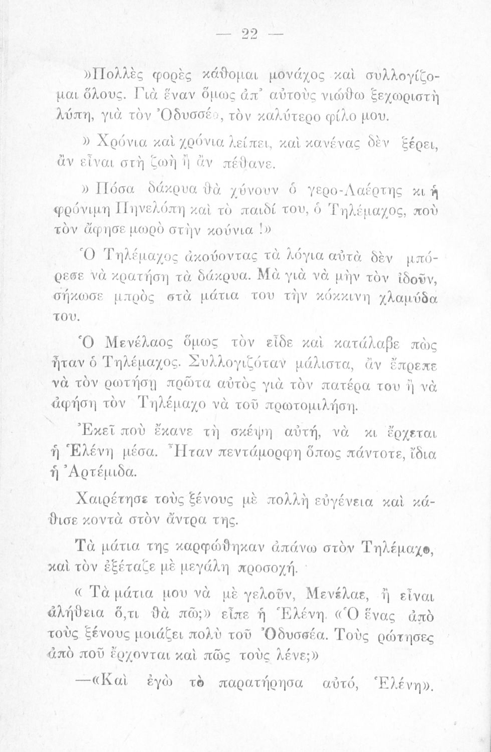 Βαθμίδα εκπαίδευσης: Πρωτοβάθμια Τάξη: Γ' Δημοτικού Μάθημα: Νέα Ελληνικά Γλώσσα: Απλή καθαρεύουσα Παρουσίαση περιεχομένου: Αναγνωστικό Γ' Δημοτικού που εξιστορεί τις περιπέτειες του Οδυσσέα. Περιέχει παράρτημα με ποιήματα εμπνευσμένα από τον εθνικό, θρησκευτικό και κοινωνικό βίο, τα επαγγέλματα και τις καθημερινές ασχολίες, την αγάπη για την φύση και το περιβάλλον. |