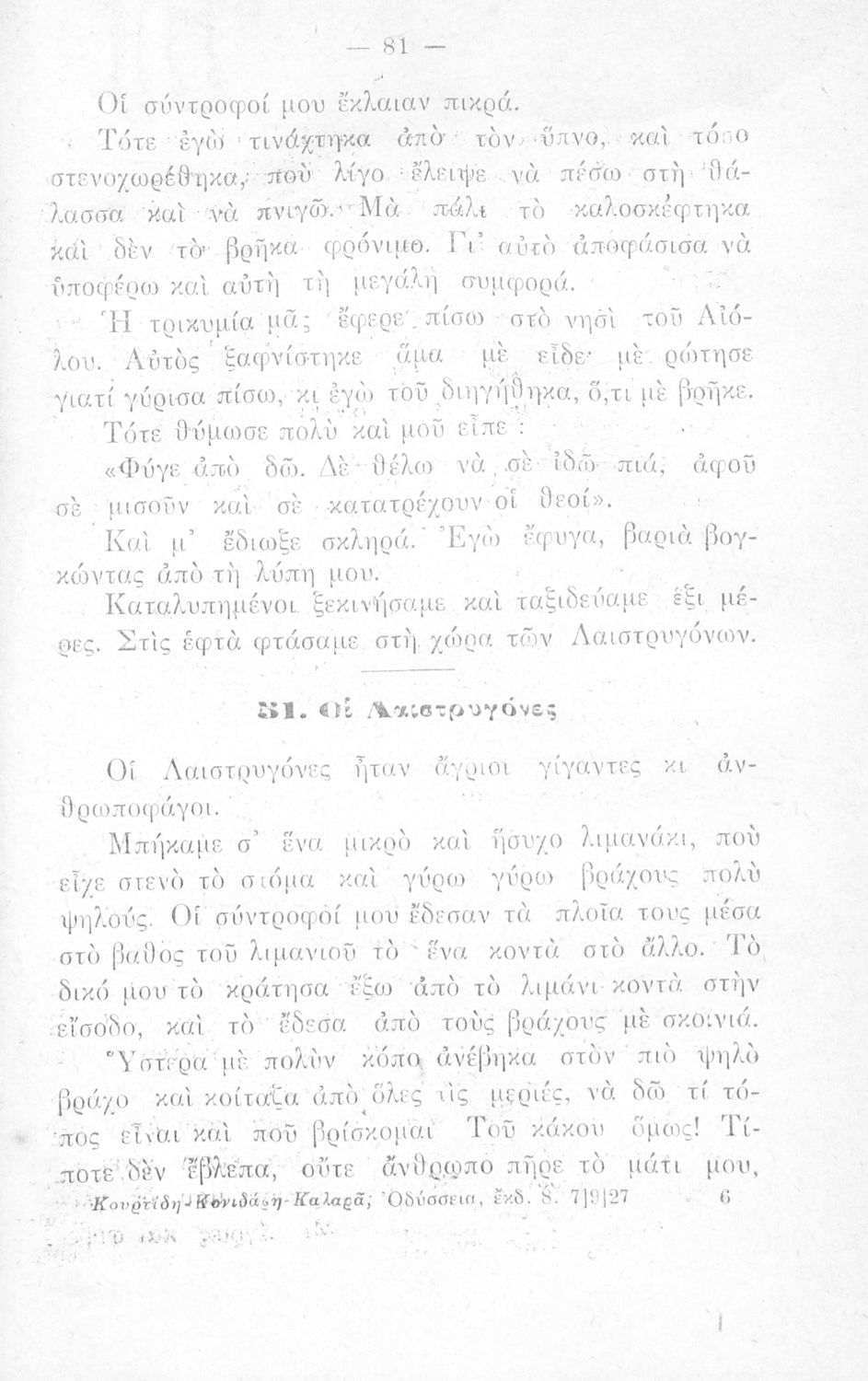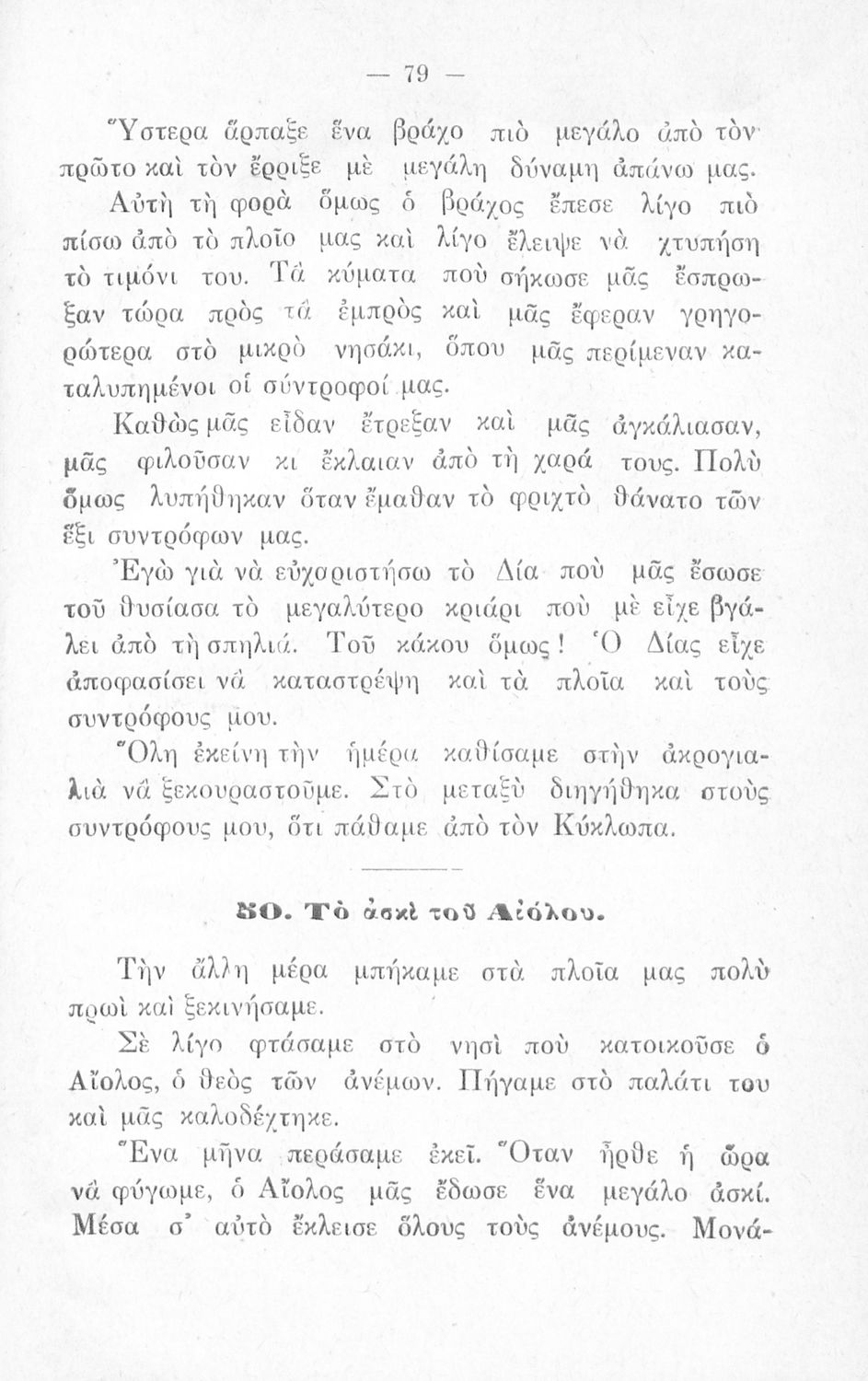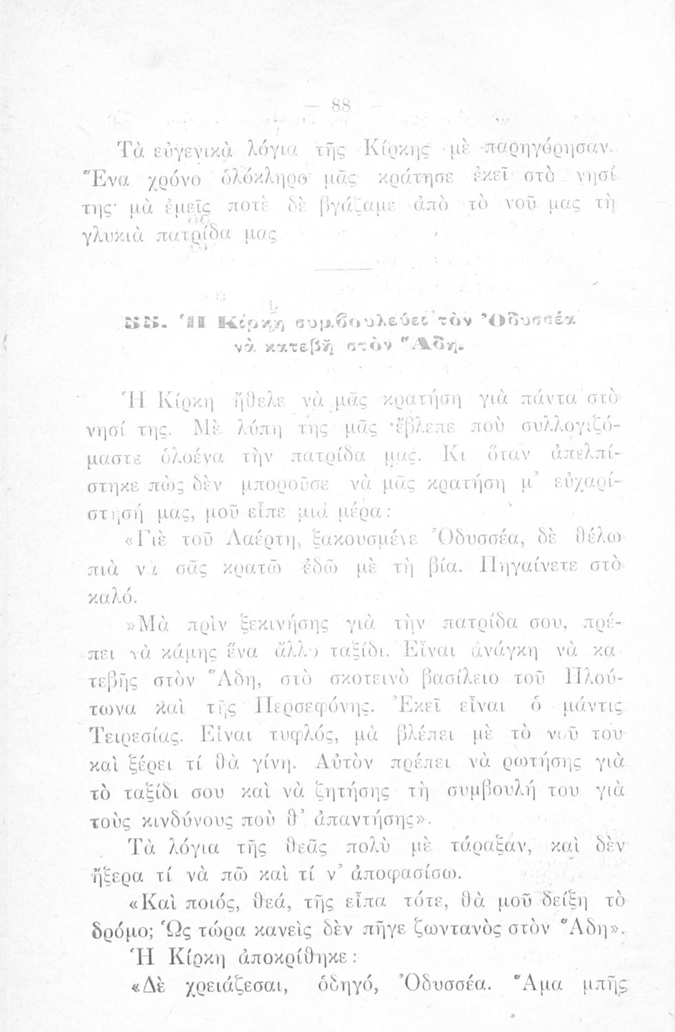 Αναγνωστικό Γ' Δημοτικού που εξιστορεί τις περιπέτειες του Οδυσσέα. Περιέχει παράρτημα με ποιήματα εμπνευσμένα από τον εθνικό, θρησκευτικό και κοινωνικό βίο, τα επαγγέλματα και τις καθημερινές ασχολίες, την αγάπη για την φύση και το περιβάλλον.
