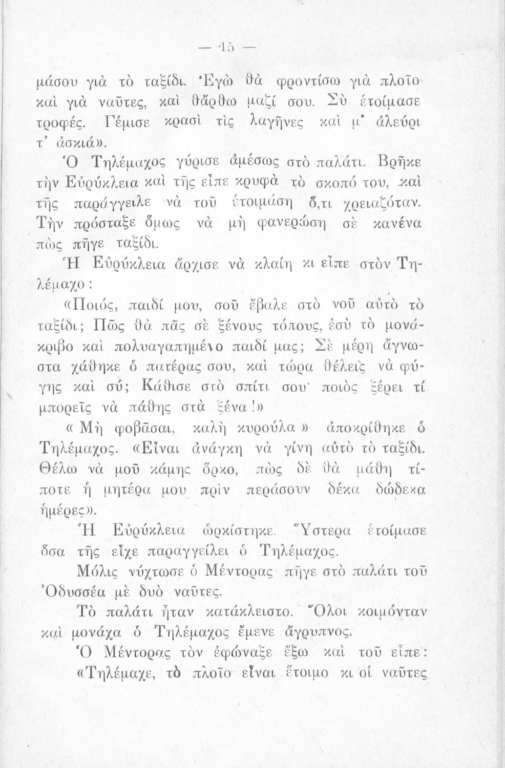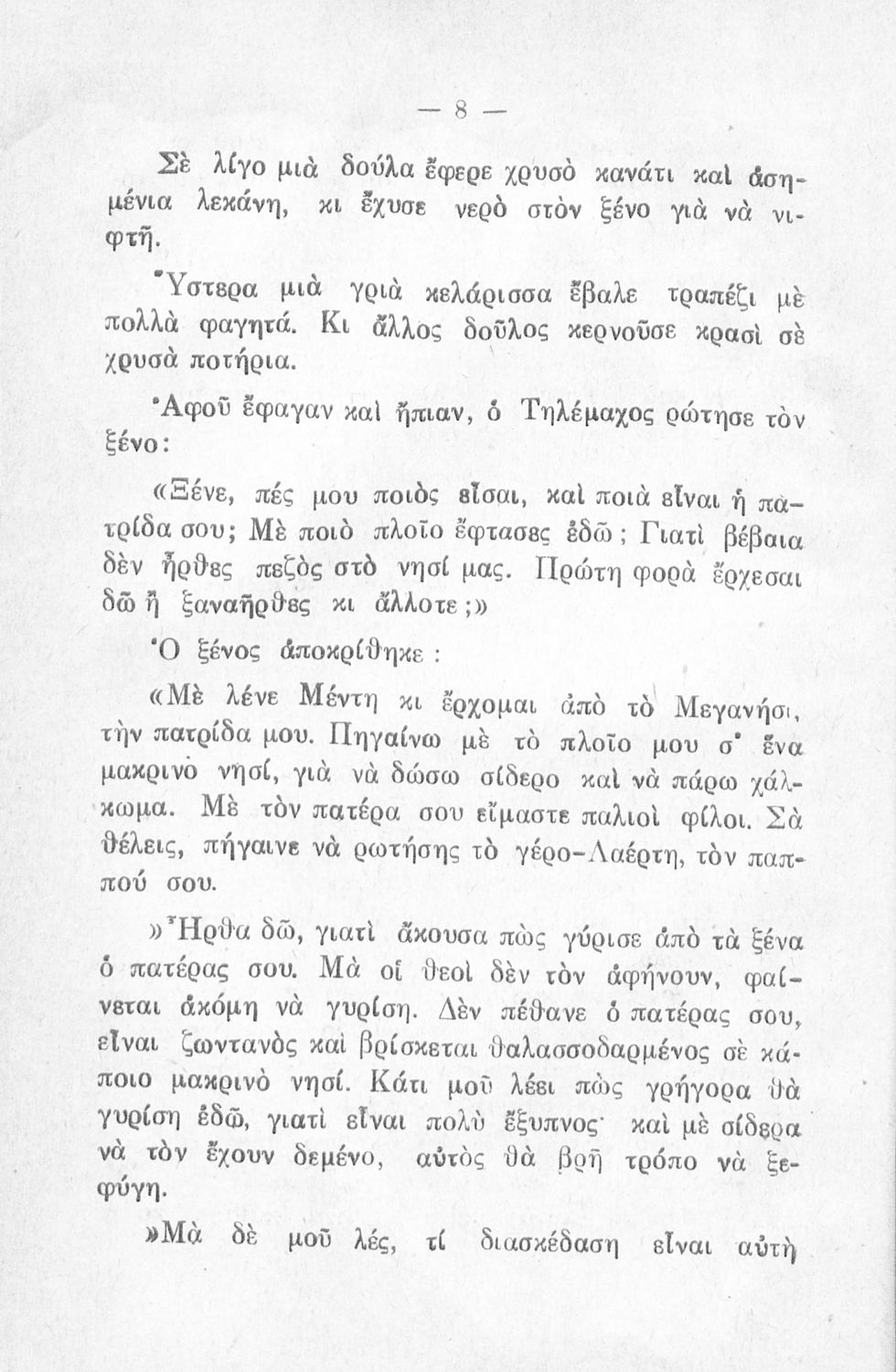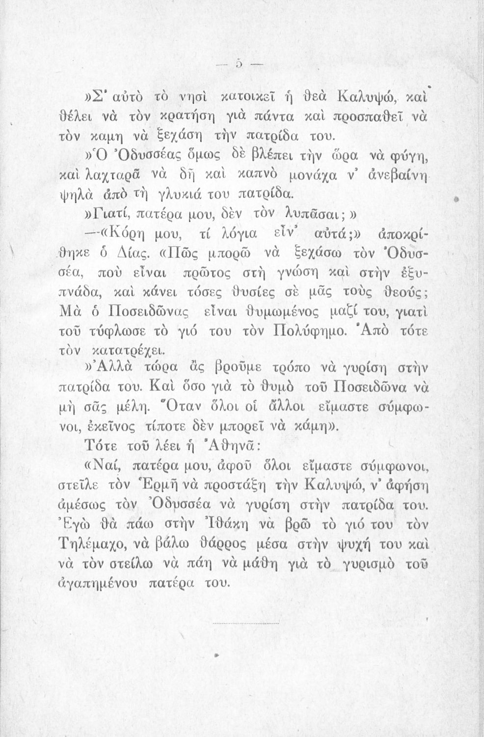 Αναγνωστικό Γ' Δημοτικού που εξιστορεί τις περιπέτειες του Οδυσσέα. Περιέχει παράρτημα με ποιήματα εμπνευσμένα από τον εθνικό, θρησκευτικό και κοινωνικό βίο, τα επαγγέλματα και τις καθημερινές ασχολίες, την αγάπη για την φύση και το περιβάλλον.