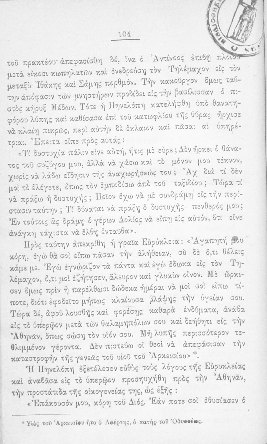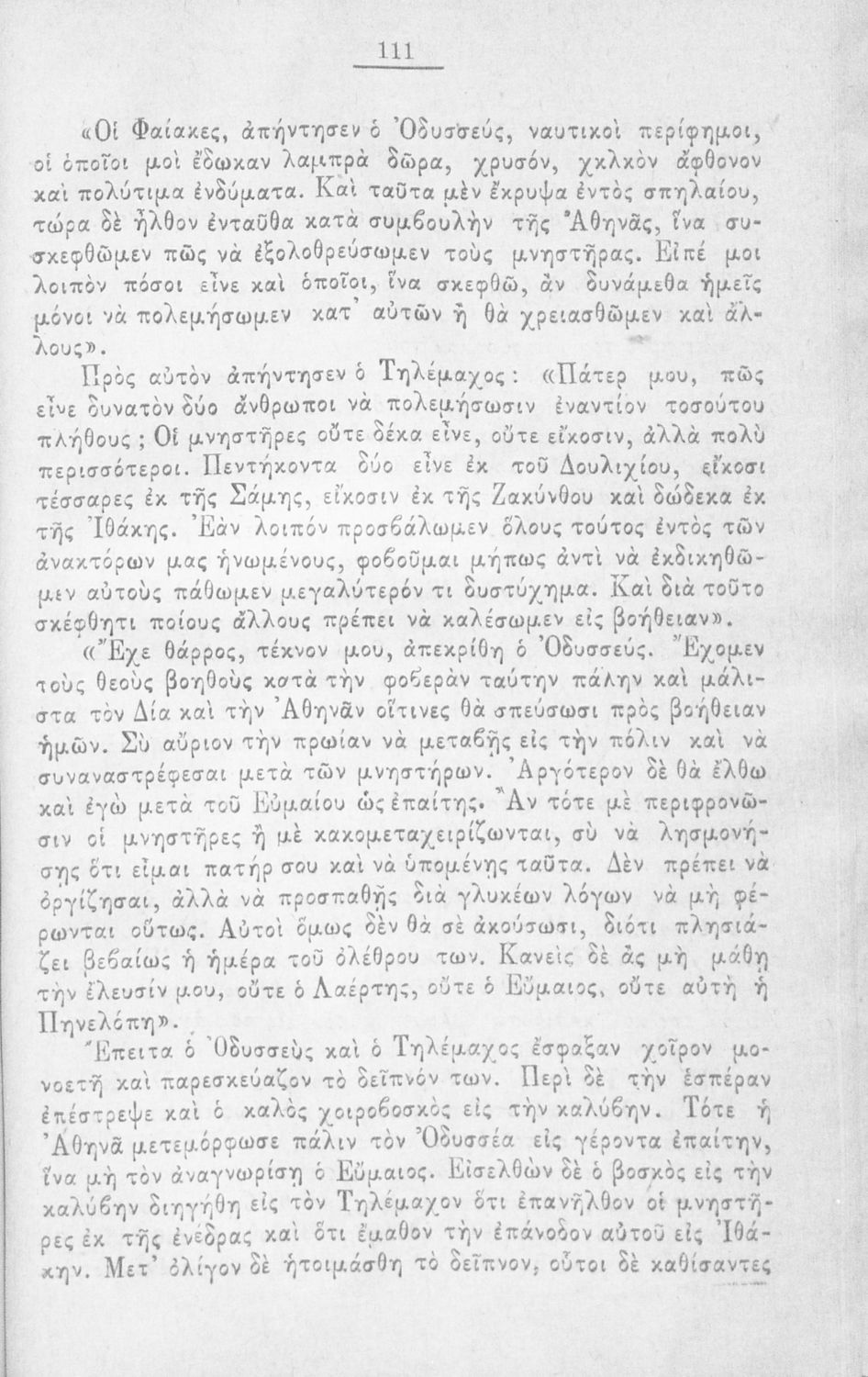 Σχολικό εγχειρίδιο για την Γ' Τάξη Δημοτικού για το μάθημα των Αρχαίων Ελληνικών. Περιλαμβάνει ραψωδίες της Οδύσσειας σε απόδοση των συγγραφέων.