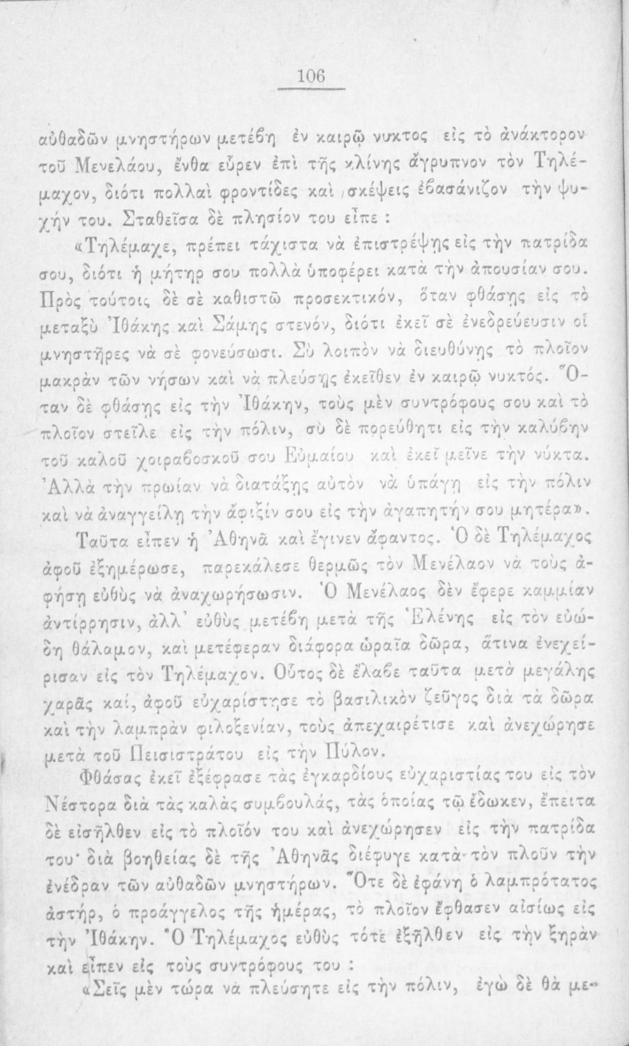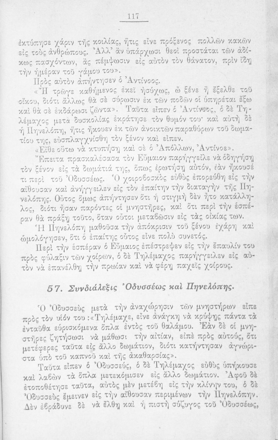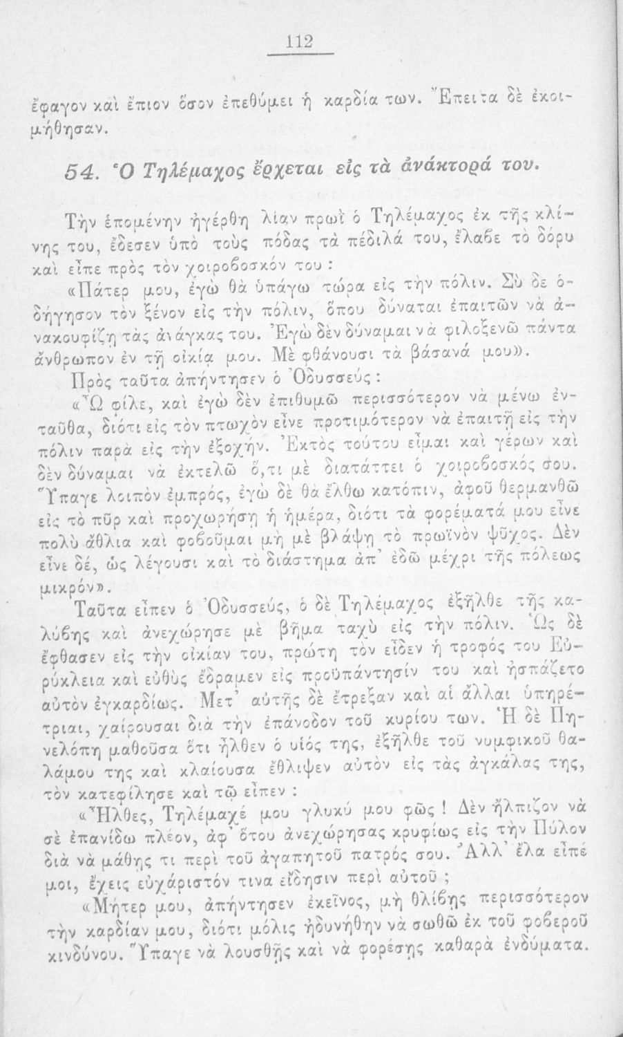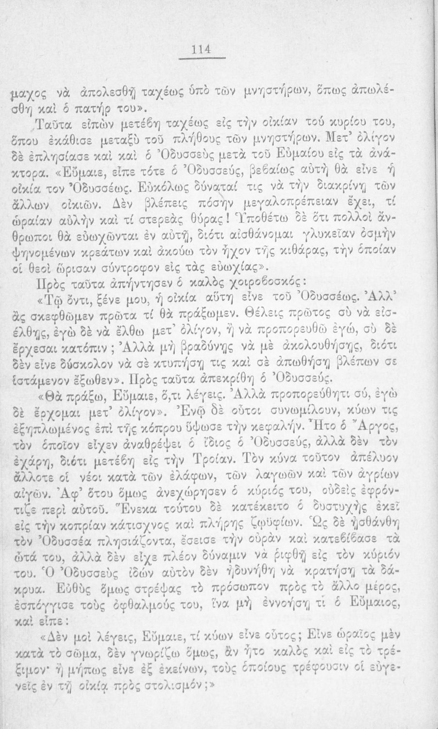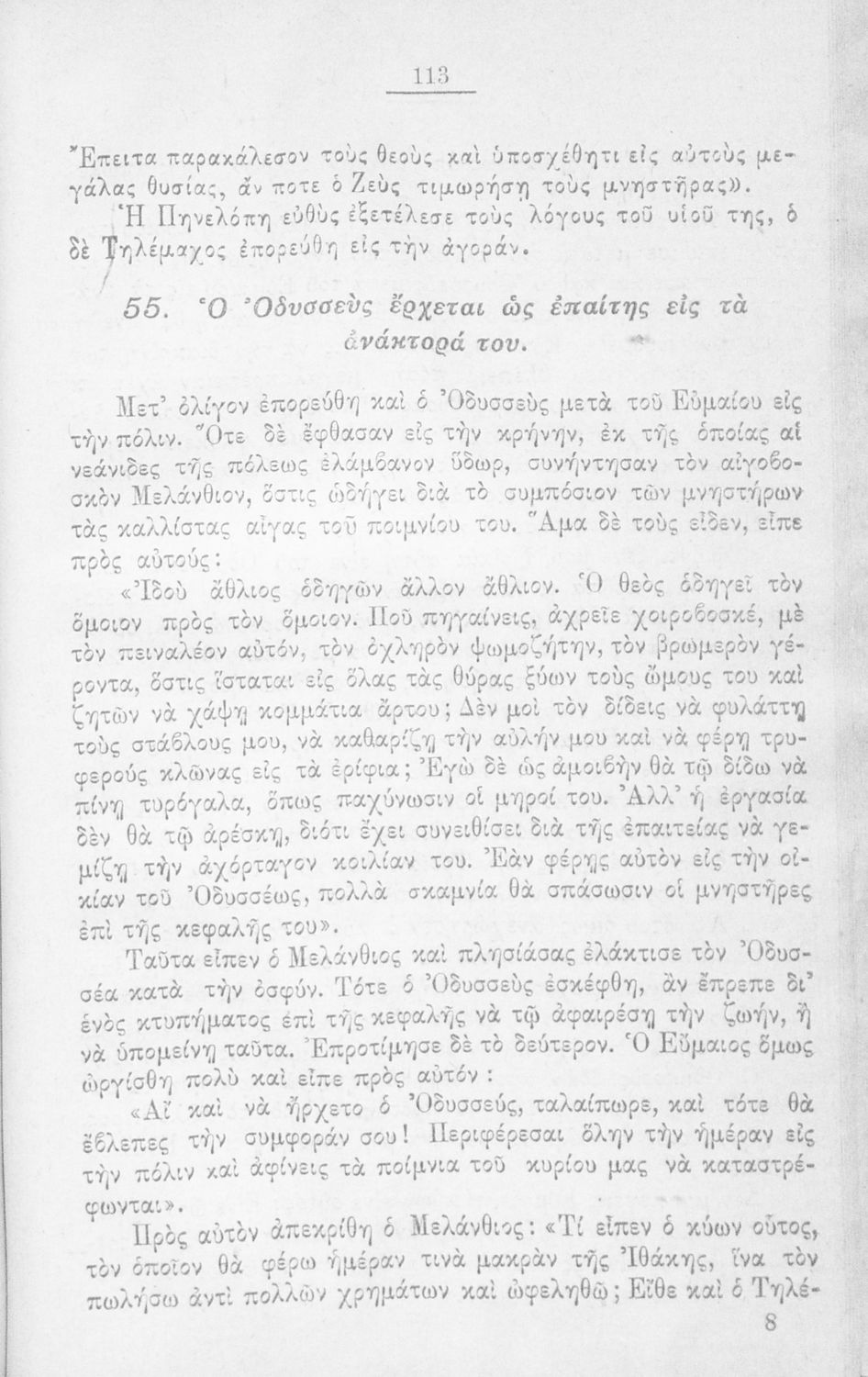 Σχολικό εγχειρίδιο της Α΄, Β΄, Γ΄ Γυμνασίου για το μάθημα των Αρχαίων Ελληνικών. Περιέχει τις ραψωδίες της Οδύσσειας, μετάφραση, ερμηνευτικά και πραγματολογικά σχόλια, καθώς και γραμματικές παρατηρήσεις.