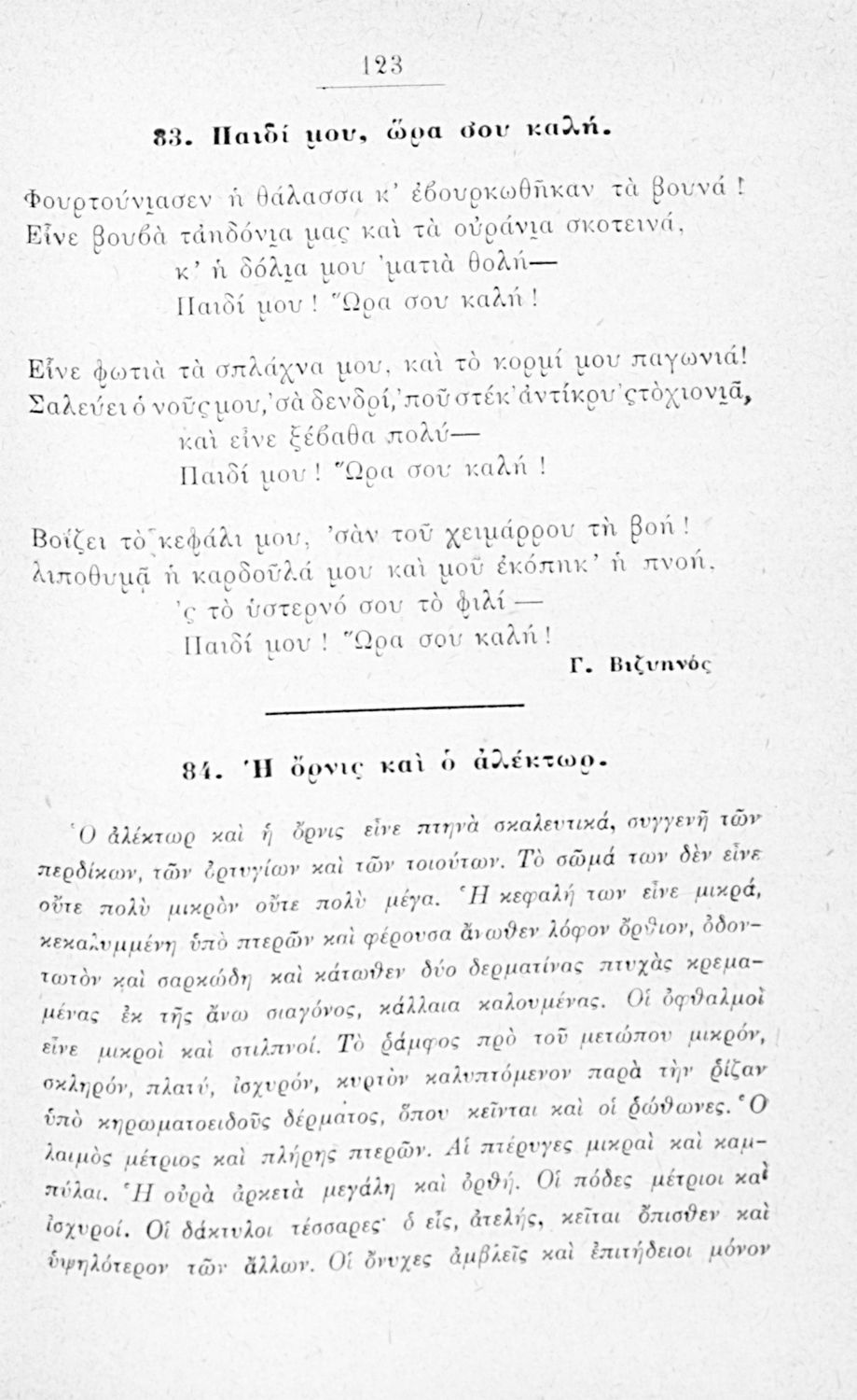 Σχολικό εγχειρίδιο Νέων Ελληνικών Γ΄ Γυμνασίου που περιλαμβάνει ποιήματα και πεζά Ελλήνων συγγραφέων και δημοτικά τραγούδια εμπνευσμένα από την ελληνική φύση και τη ζωή στην ύπαιθρο, την οικογενειακή και ...