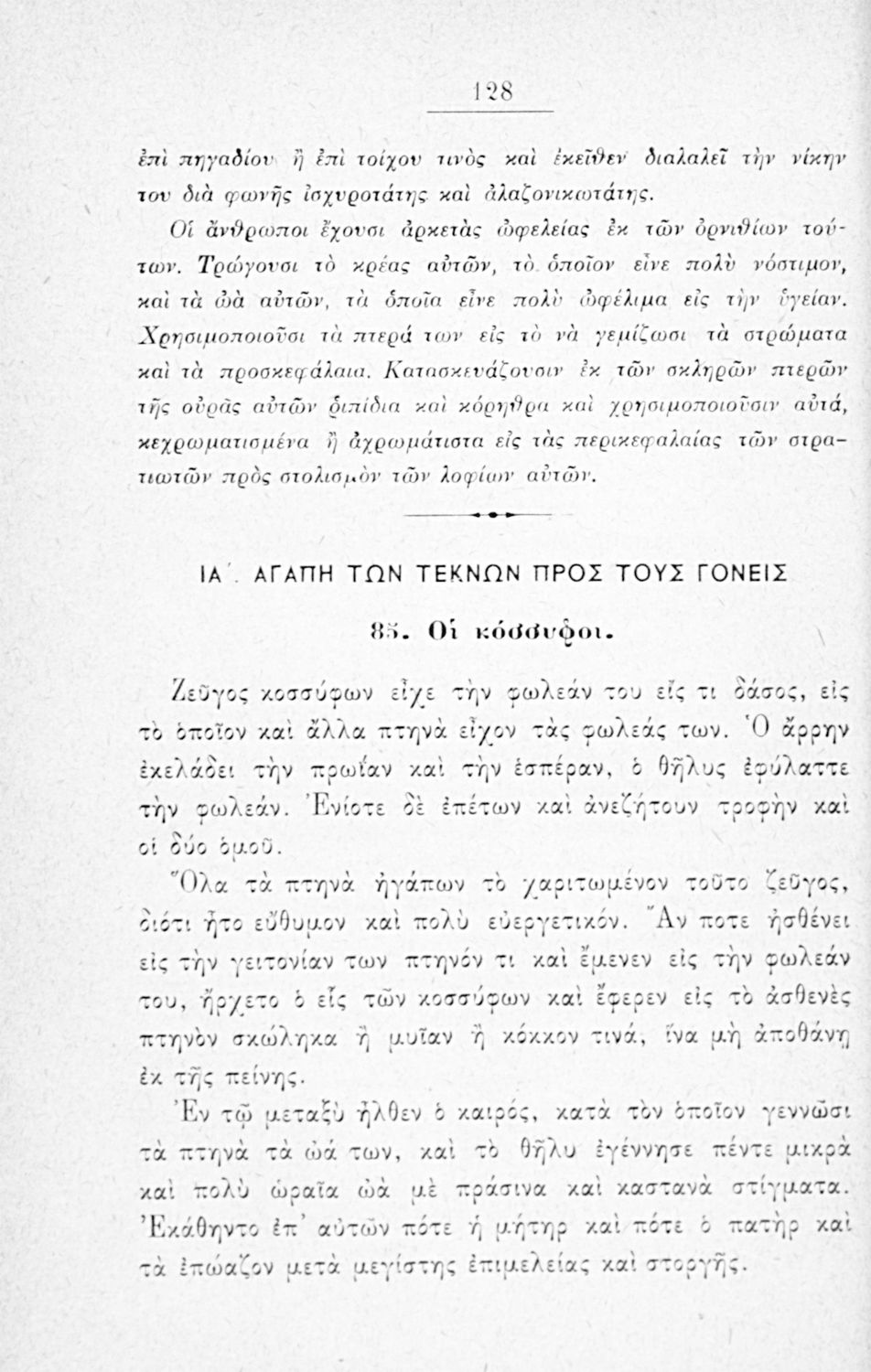 Αναγνωστικό Β' Δημοτικού που περιλαμβάνει πεζά και ποιήματα, ηθικοπλαστικού περιεχομένου, και προβάλει αξίες και αρετές όπως η τιμιότητα, η ευσπλαχνία, η γενναιότητα, η αγάπη, η φιλοπατρία, κι η ευγνωμοσύνη.