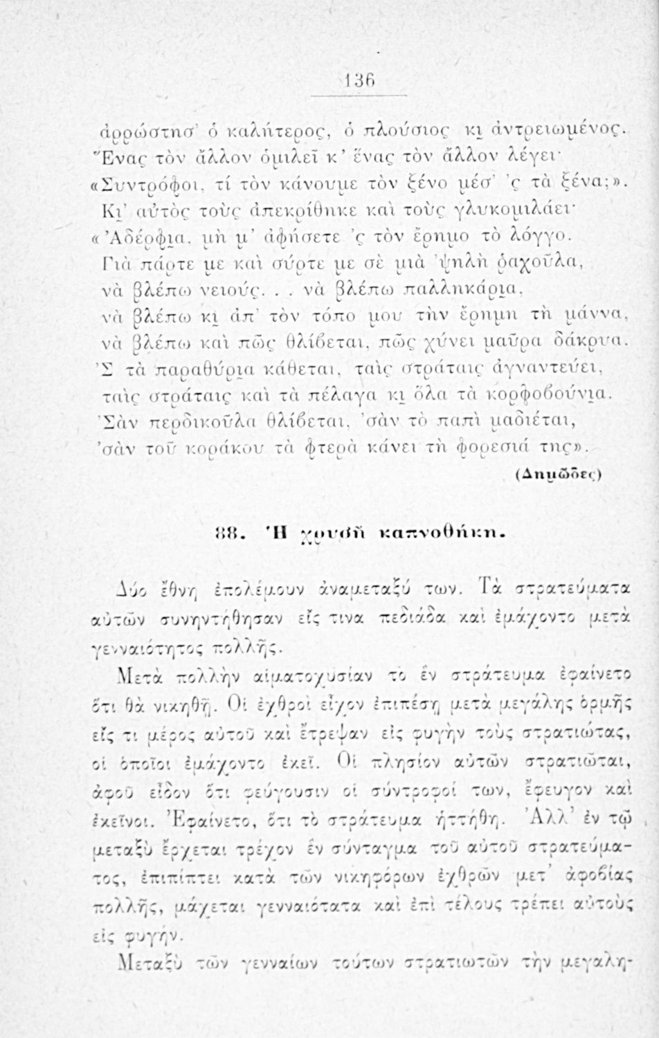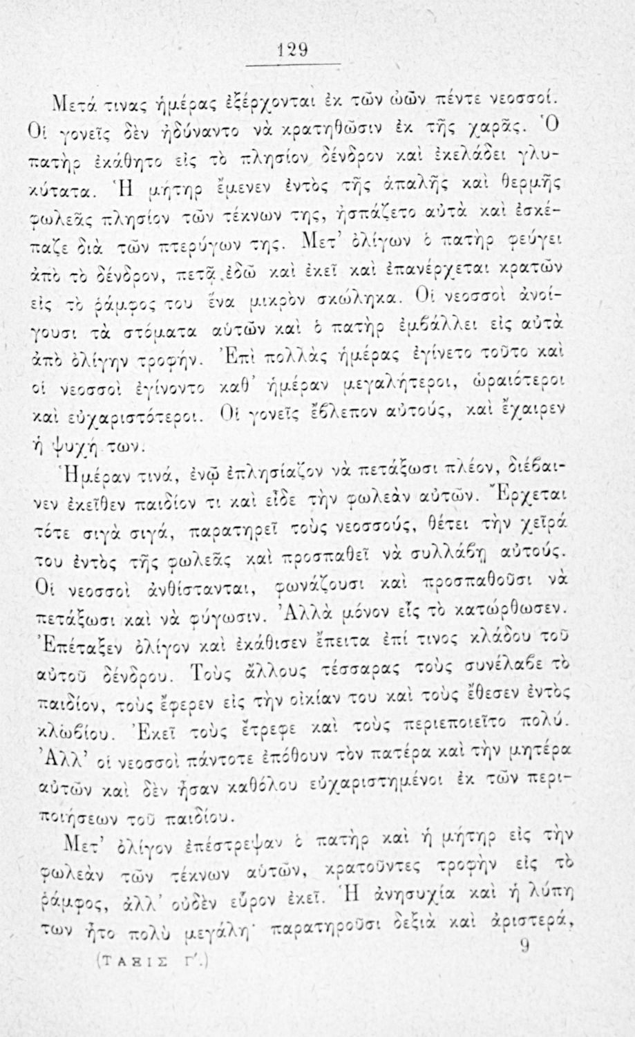 Αναγνωστικό Γ΄ Δημοτικού που περιλαμβάνει ποιήματα και πεζά με θέματα όπως η καλή και κακή συναναστροφή, η φρόνηση, η οκνηρία, η φιλανθρωπία και η πίστη στο Θεό