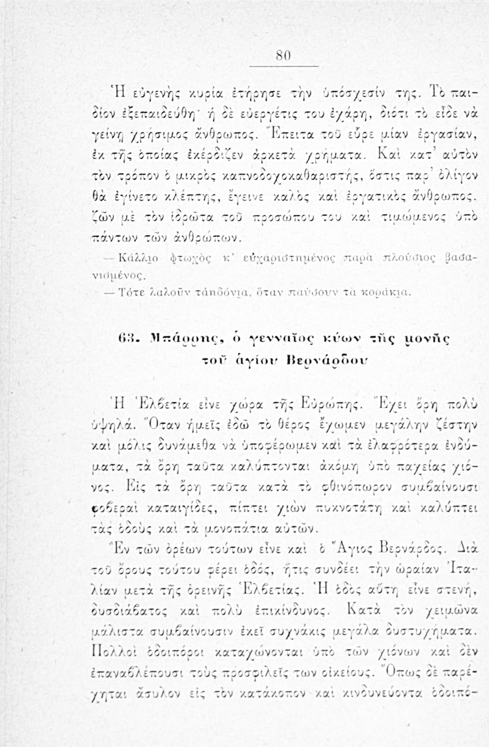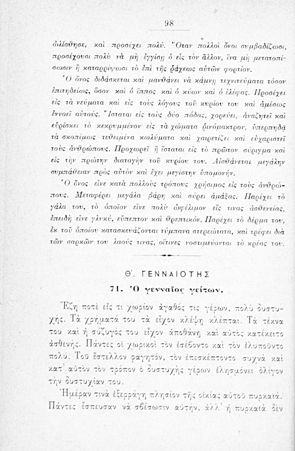 Βαθμίδα εκπαίδευσης: Πρωτοβάθμια Τάξη: Γ' Δημοτικού Μάθημα: Νέα Ελληνικά Γλώσσα: Απλή καθαρεύουσα Παρουσίαση περιεχομένου: Αναγνωστικό για τους μαθητές της Γ΄ Δημοτικού που περιλαμβάνει ποιήματα και πεζά ηθοποιητικού περιεχομένου. |