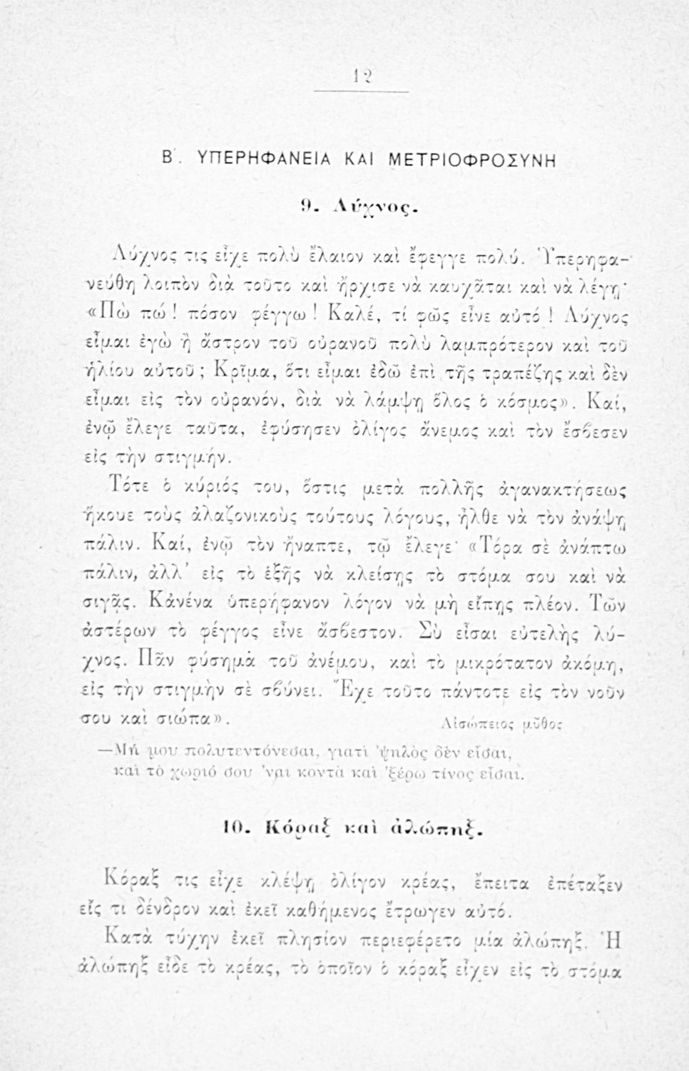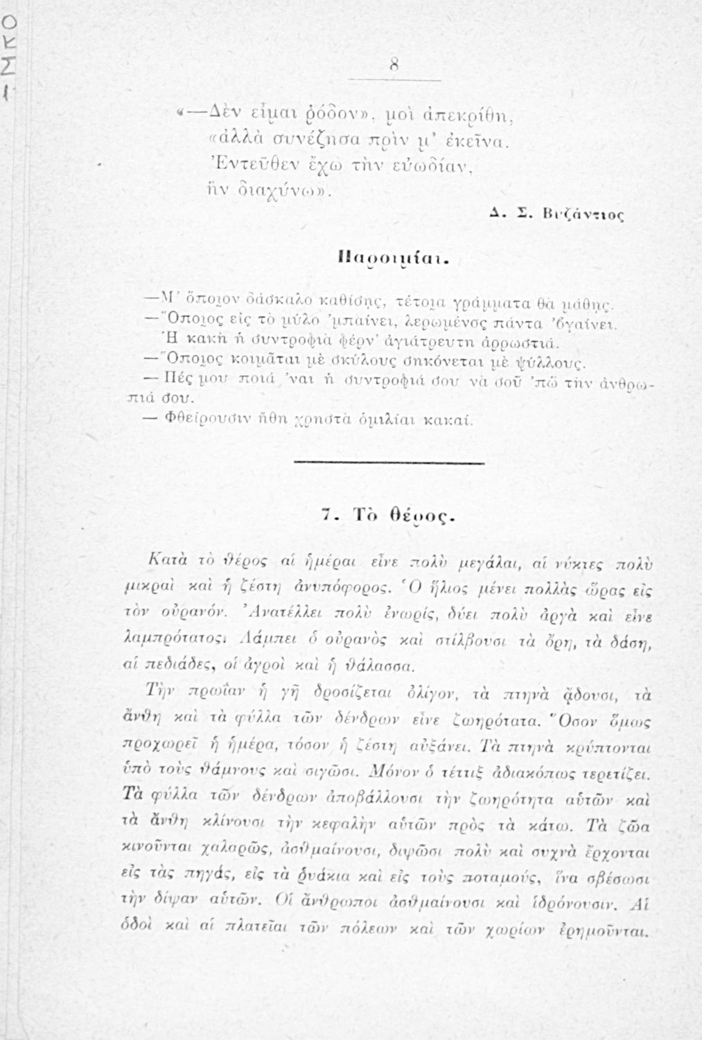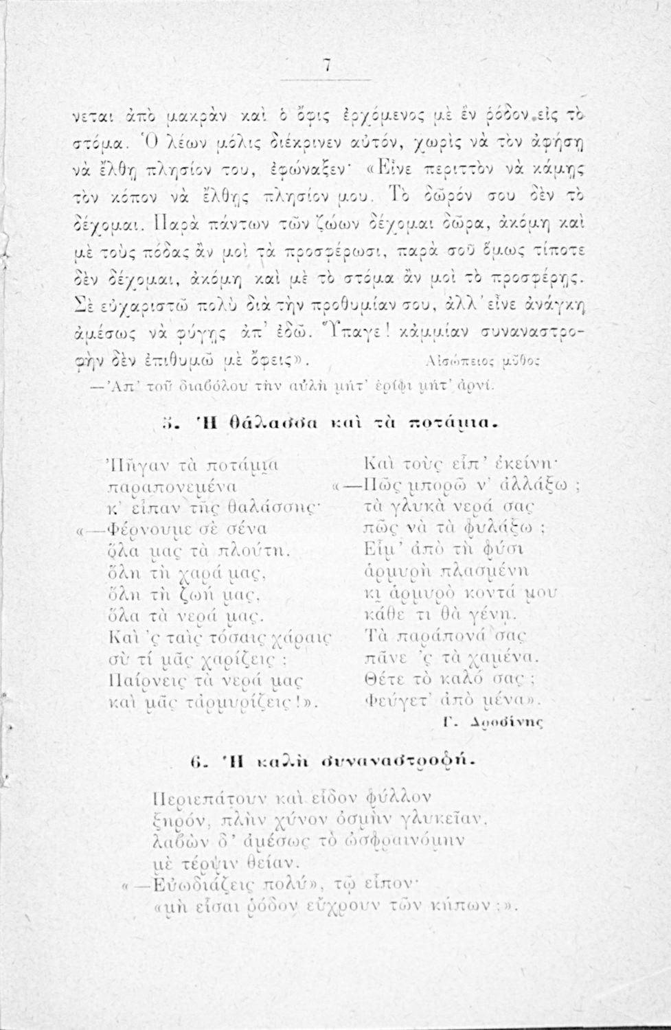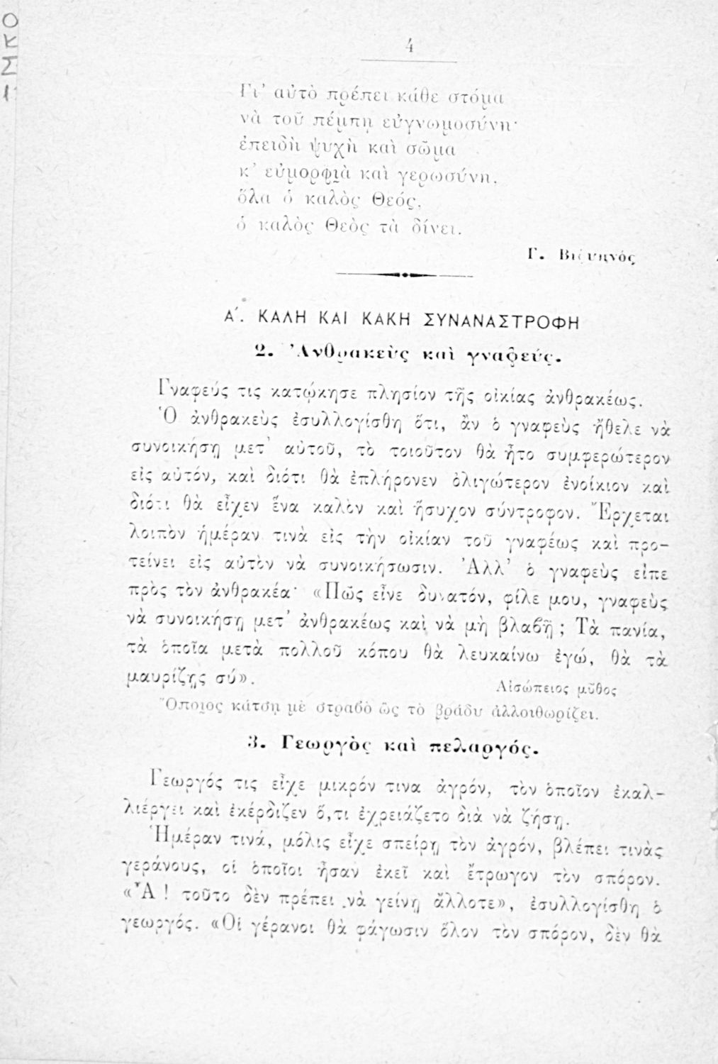 Αναγνωστικό Γ΄ Δημοτικού που περιλαμβάνει ποιήματα και πεζά με θέματα όπως η καλή και κακή συναναστροφή, η φρόνηση, η οκνηρία, η φιλανθρωπία και η πίστη στο Θεό