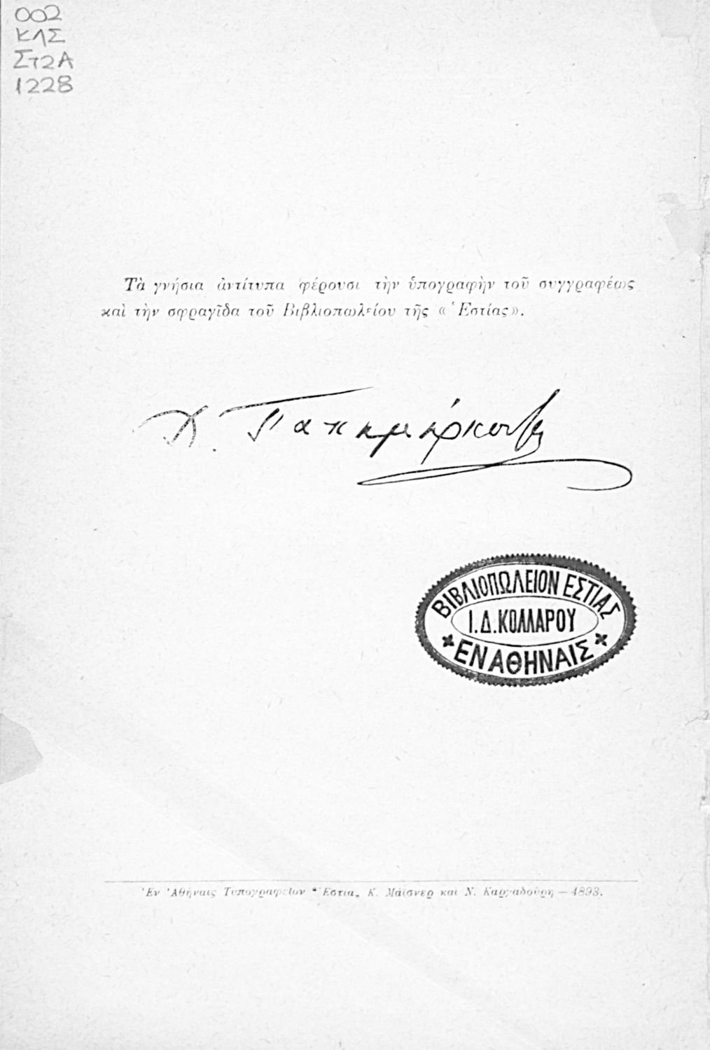 Εντοπισμός πρωτοτύπου: Βιβλιοθήκη της Βουλής των Ελλήνων