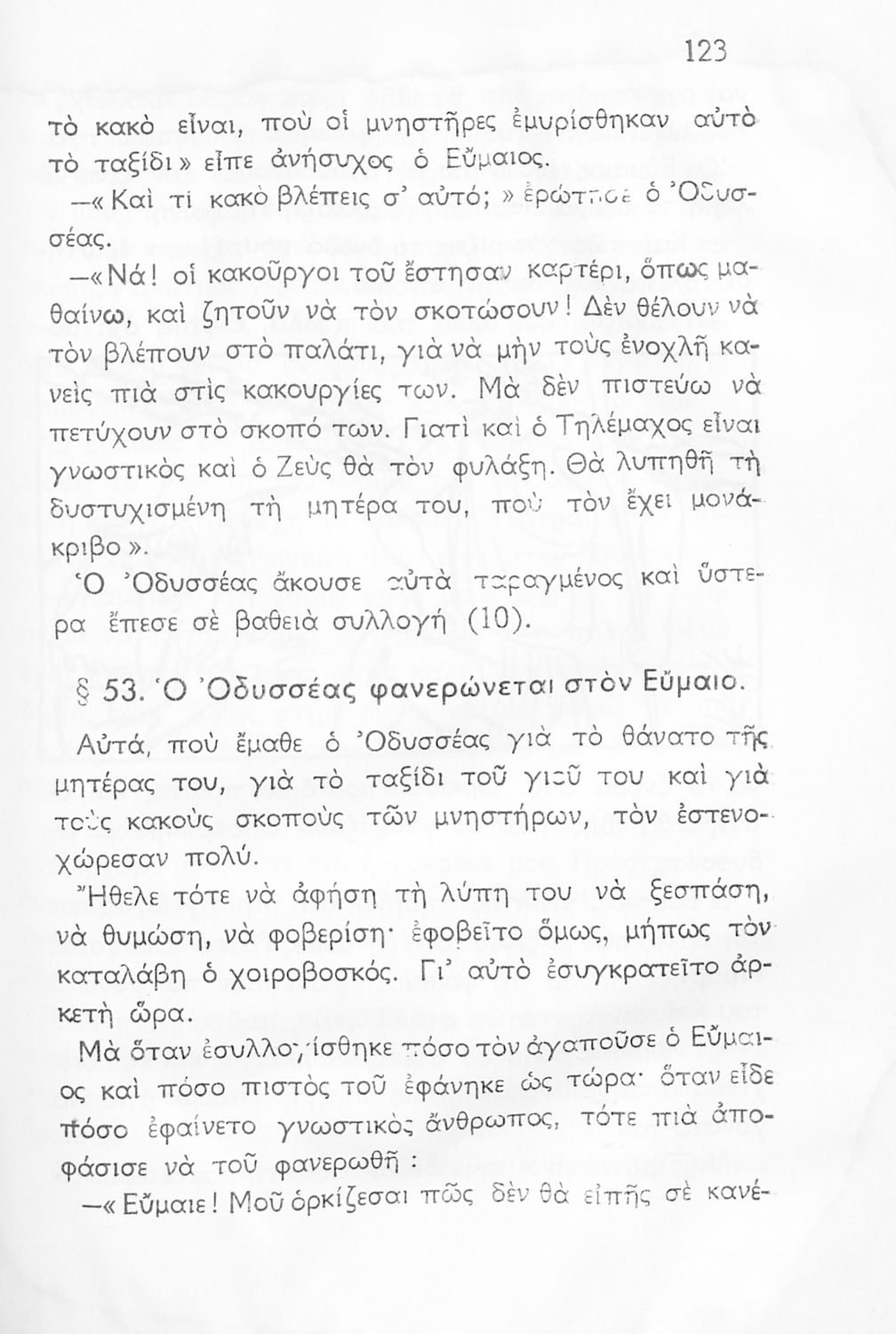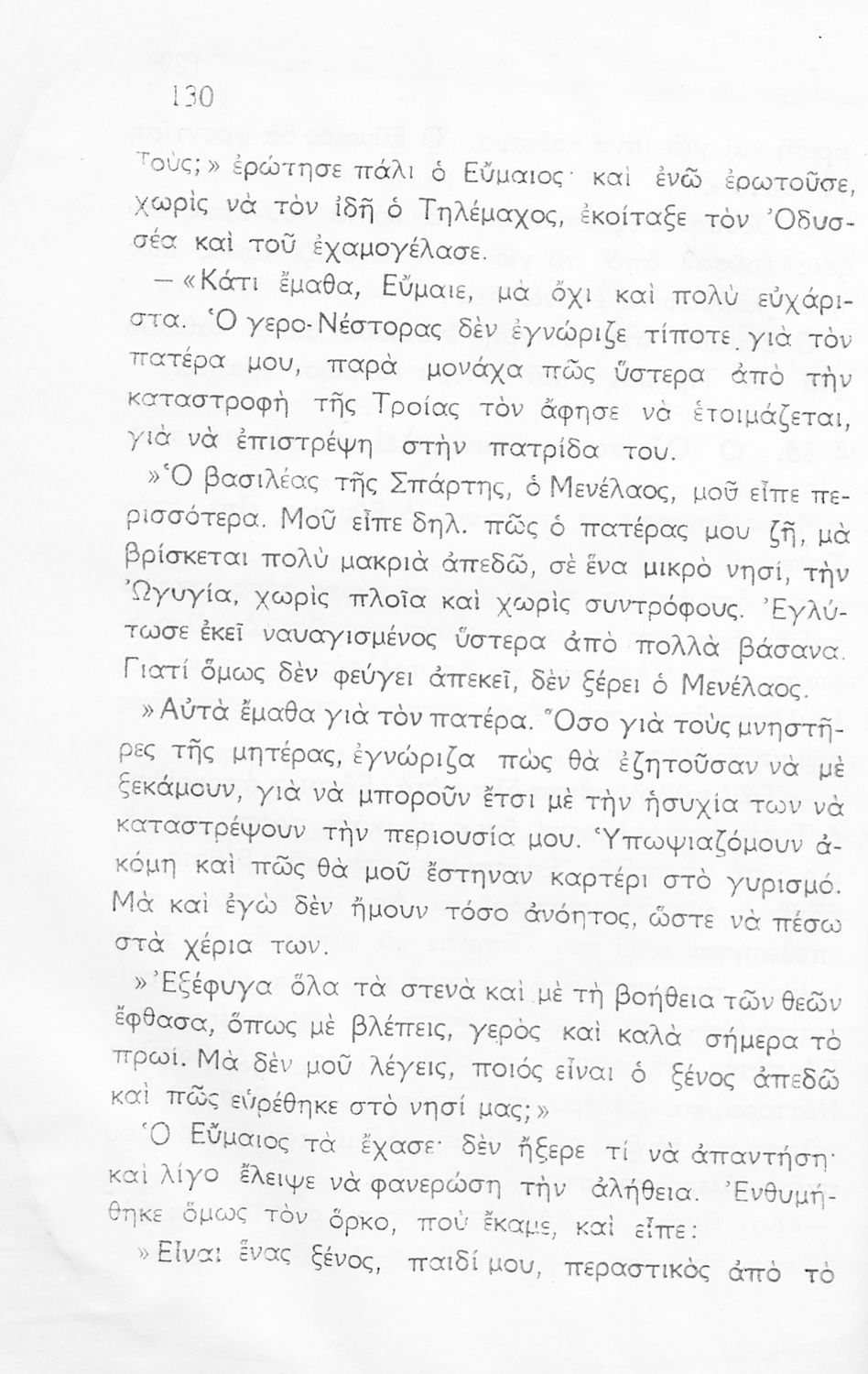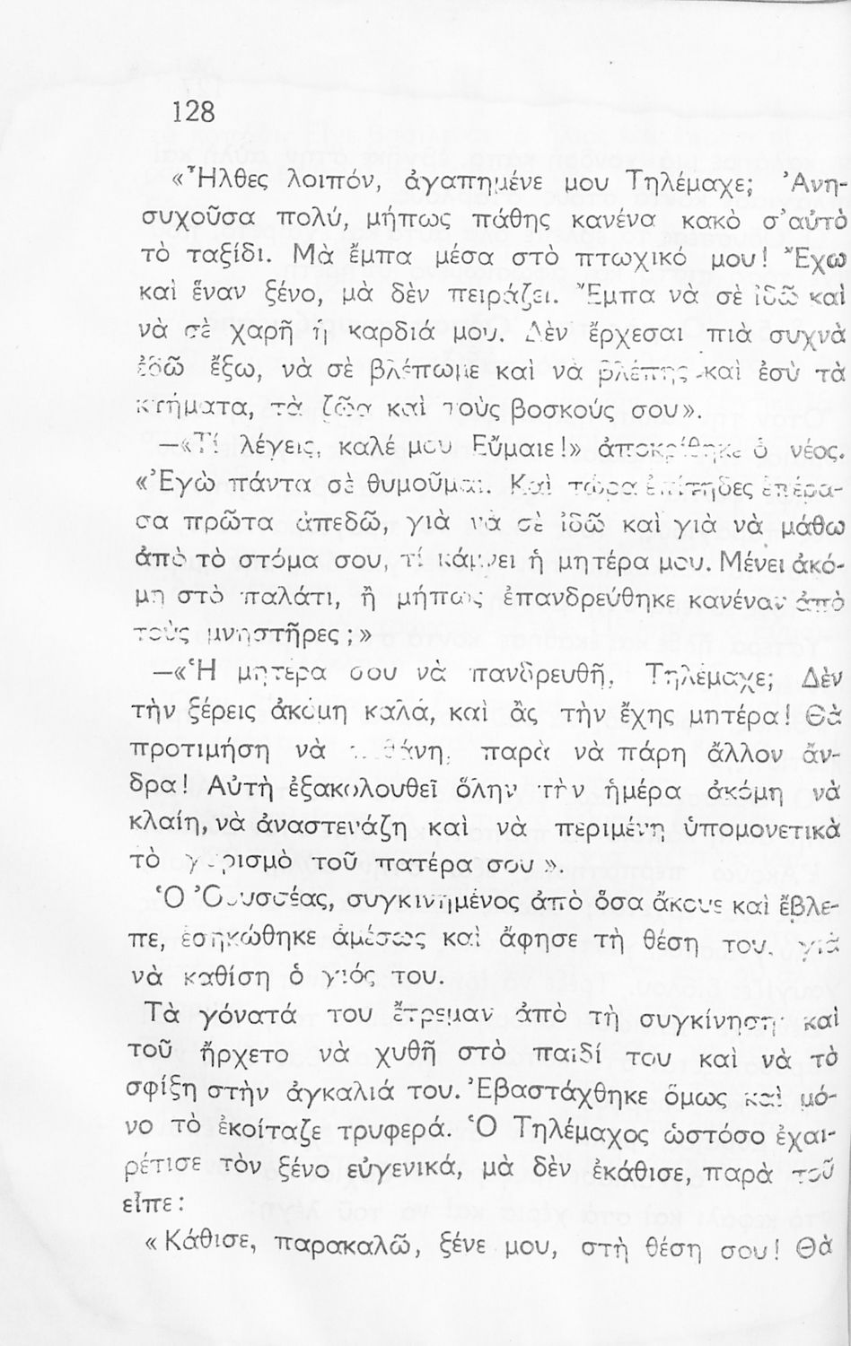 Βαθμίδα εκπαίδευσης: Πρωτοβάθμια Τάξη: Γ' Δημοτικού Μάθημα: Νέα Ελληνικά Γλώσσα: Δημοτική με στοιχεία καθαρεύουσας Παρουσίαση περιεχομένου: Αναγνωστικό Γ ' Δημοτικού το οποίο παρουσιάζει το ταξίδι του Οδυσσέα προς την Ιθάκη. Στο τέλος το βιβλίο περιλαμβάνει σειρά από δημοτικά ποιήματα τα οποία εκπέμπουν μηνύματα γυρισμού και ξενιτιάς. |