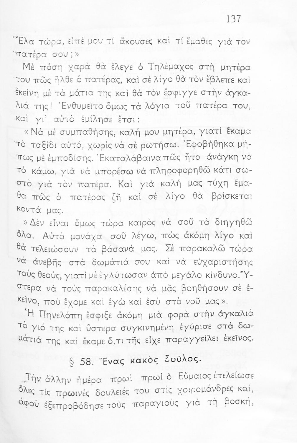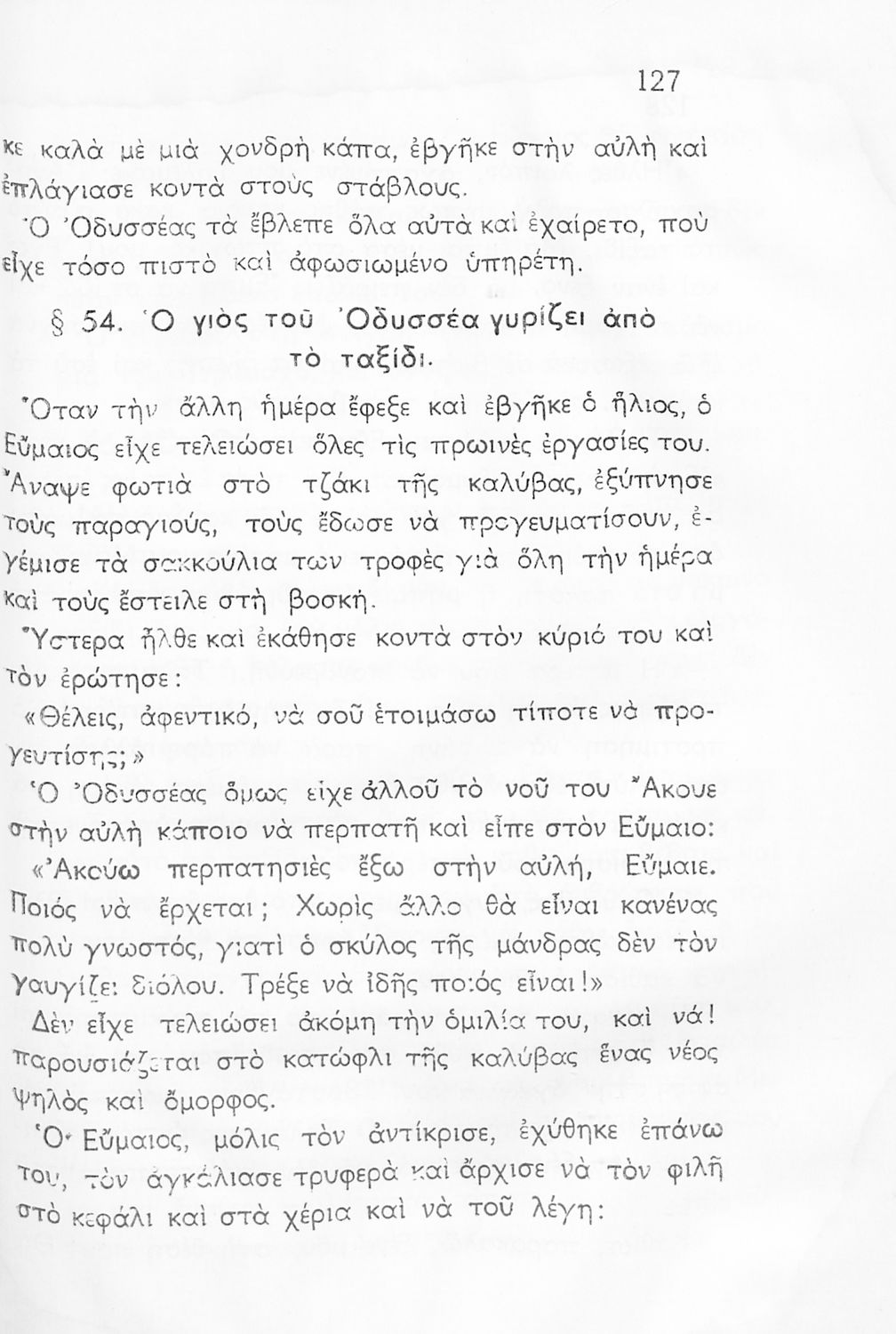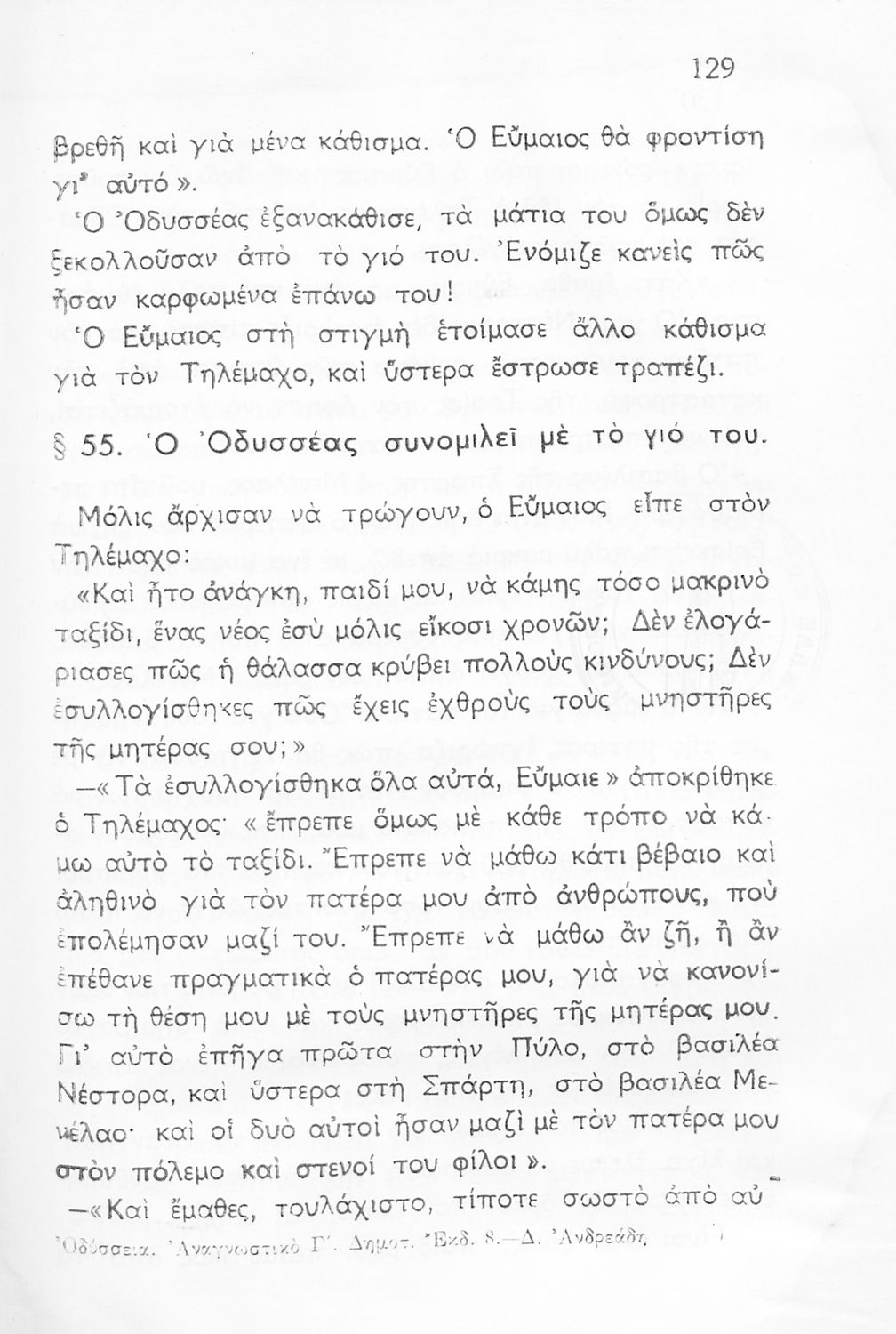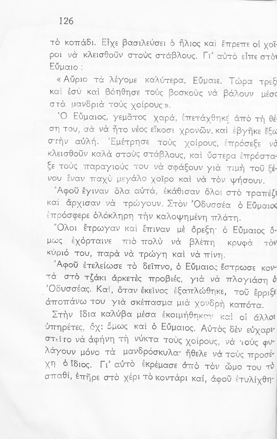 Βαθμίδα εκπαίδευσης: Πρωτοβάθμια Τάξη: Γ' Δημοτικού Μάθημα: Νέα Ελληνικά Γλώσσα: Δημοτική με στοιχεία καθαρεύουσας Παρουσίαση περιεχομένου: Αναγνωστικό Γ ' Δημοτικού το οποίο παρουσιάζει το ταξίδι του Οδυσσέα προς την Ιθάκη. Στο τέλος το βιβλίο περιλαμβάνει σειρά από δημοτικά ποιήματα τα οποία εκπέμπουν μηνύματα γυρισμού και ξενιτιάς. |