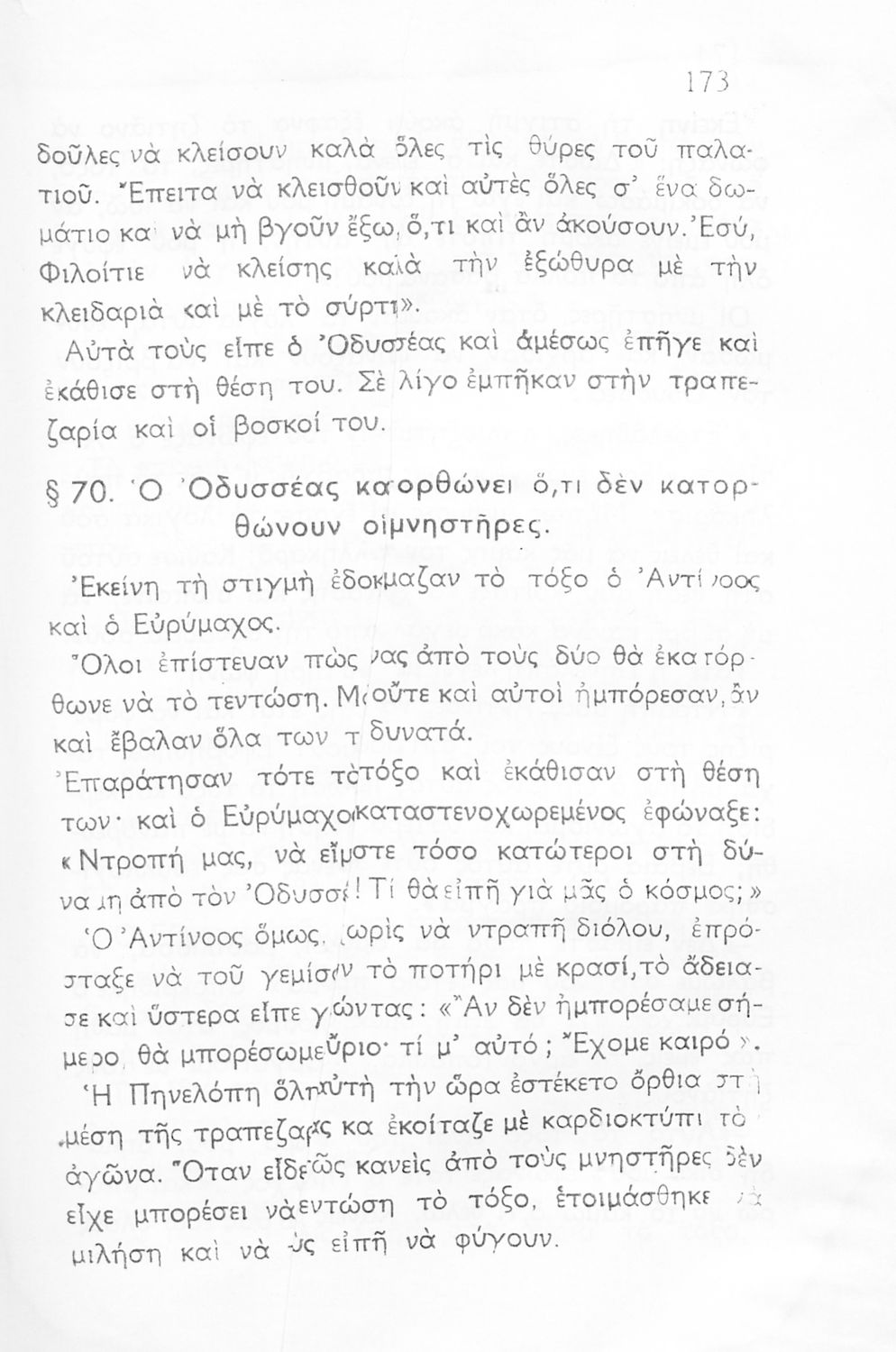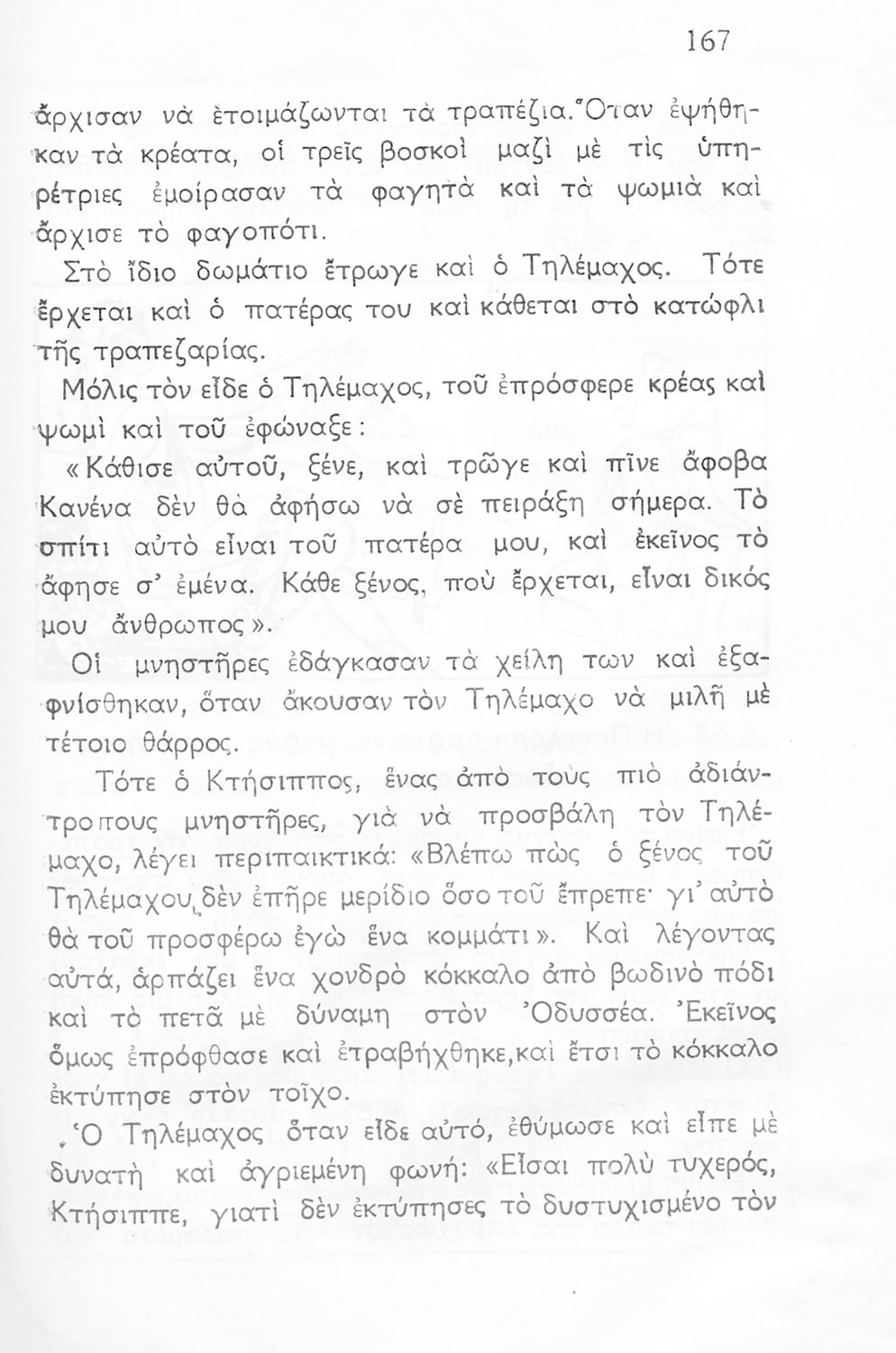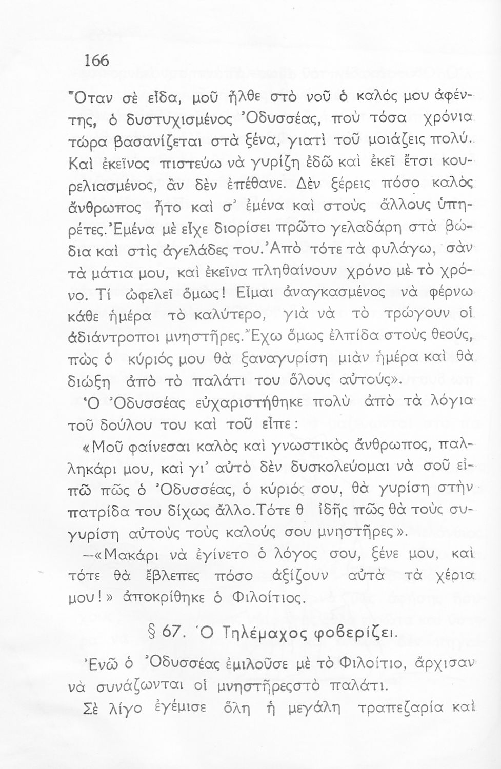 Βαθμίδα εκπαίδευσης: Πρωτοβάθμια Τάξη: Γ' Δημοτικού Μάθημα: Νέα Ελληνικά Γλώσσα: Δημοτική με στοιχεία καθαρεύουσας Παρουσίαση περιεχομένου: Αναγνωστικό Γ ' Δημοτικού το οποίο παρουσιάζει το ταξίδι του Οδυσσέα προς την Ιθάκη. Στο τέλος το βιβλίο περιλαμβάνει σειρά από δημοτικά ποιήματα τα οποία εκπέμπουν μηνύματα γυρισμού και ξενιτιάς. |