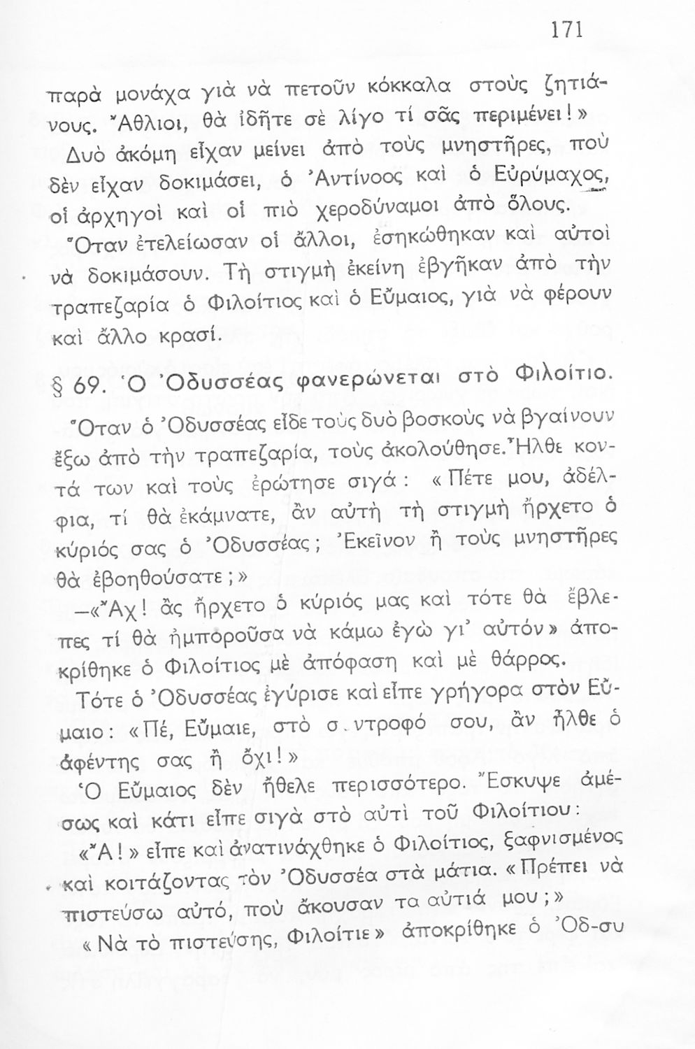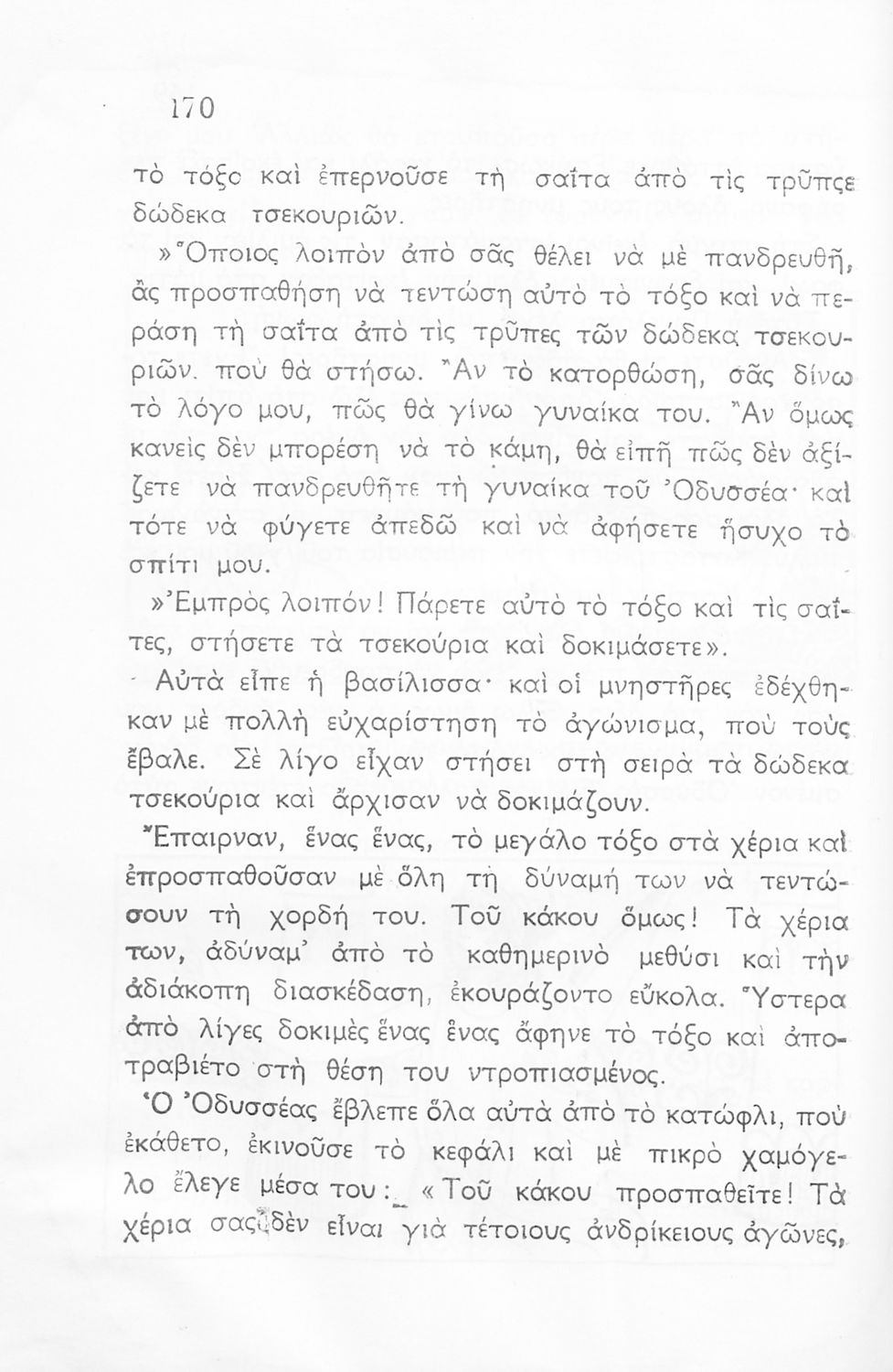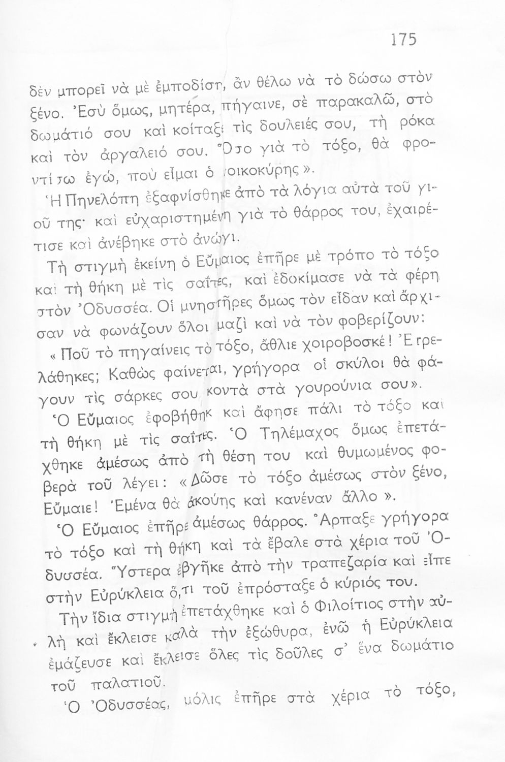Βαθμίδα εκπαίδευσης: Πρωτοβάθμια Τάξη: Γ' Δημοτικού Μάθημα: Νέα Ελληνικά Γλώσσα: Δημοτική με στοιχεία καθαρεύουσας Παρουσίαση περιεχομένου: Αναγνωστικό Γ ' Δημοτικού το οποίο παρουσιάζει το ταξίδι του Οδυσσέα προς την Ιθάκη. Στο τέλος το βιβλίο περιλαμβάνει σειρά από δημοτικά ποιήματα τα οποία εκπέμπουν μηνύματα γυρισμού και ξενιτιάς. |